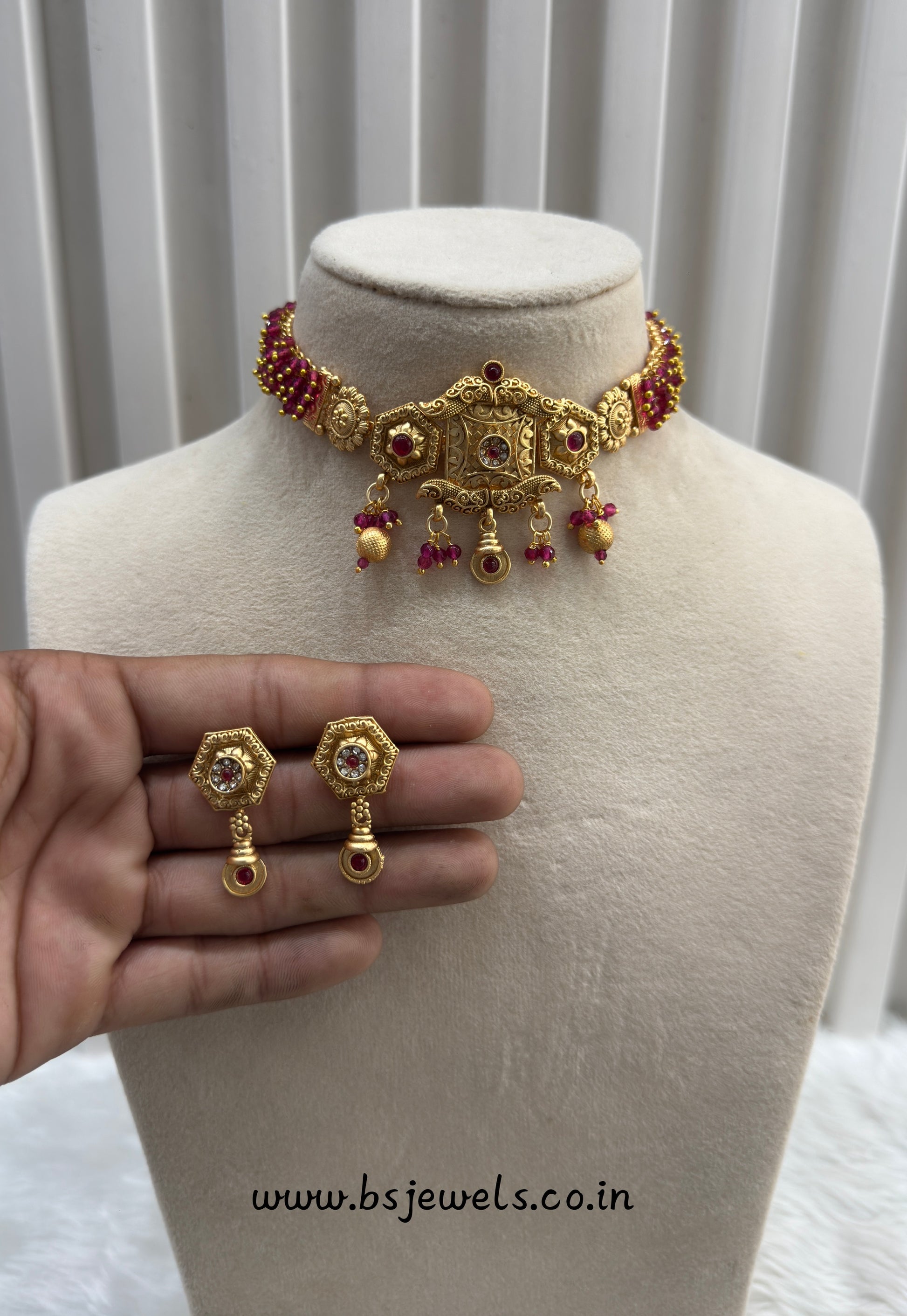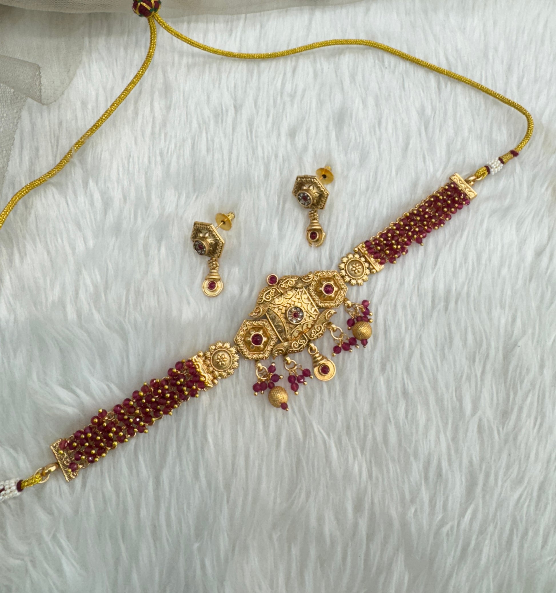 Ruby Gold Polki Choker Jewellery Bobo Set
