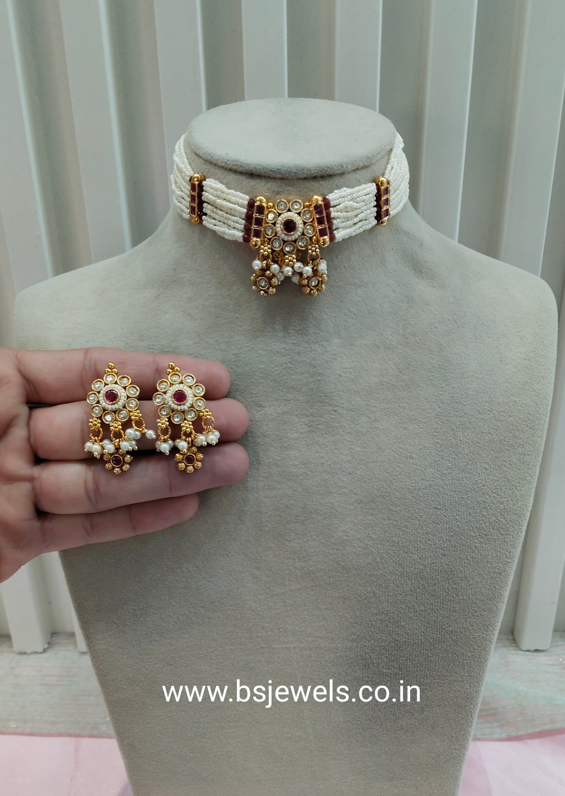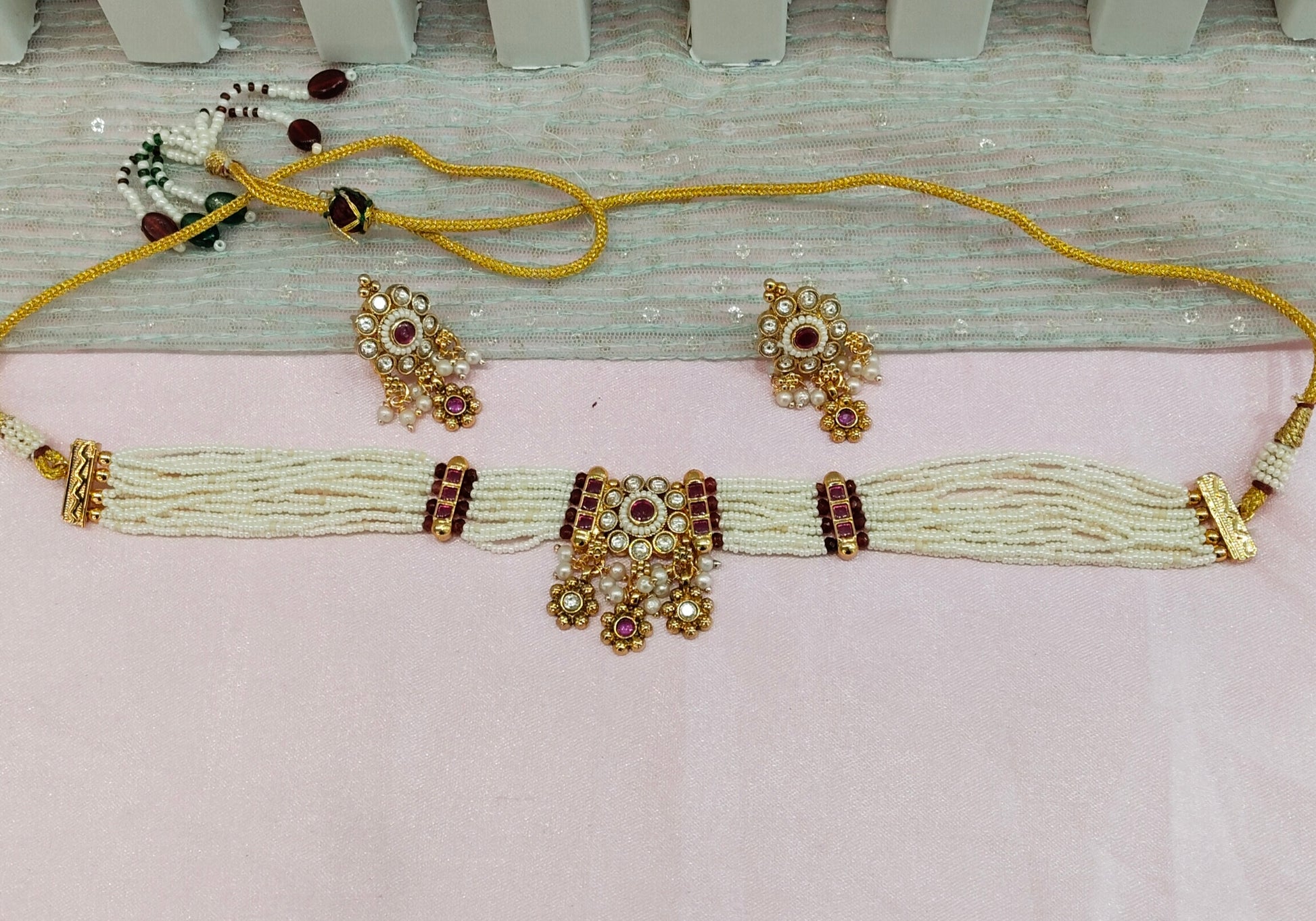 Ruby Gold Polki Kundan Choker Jewellery Jennet Set