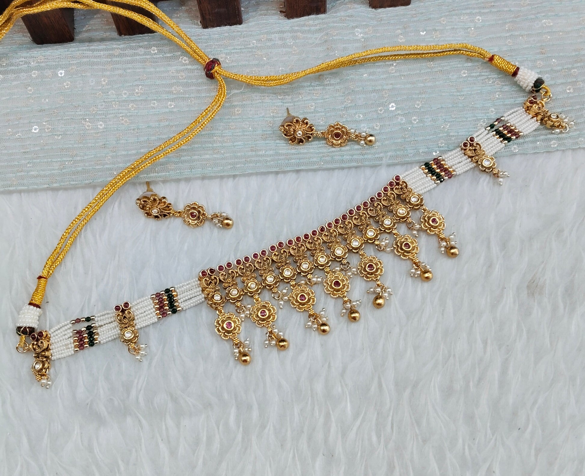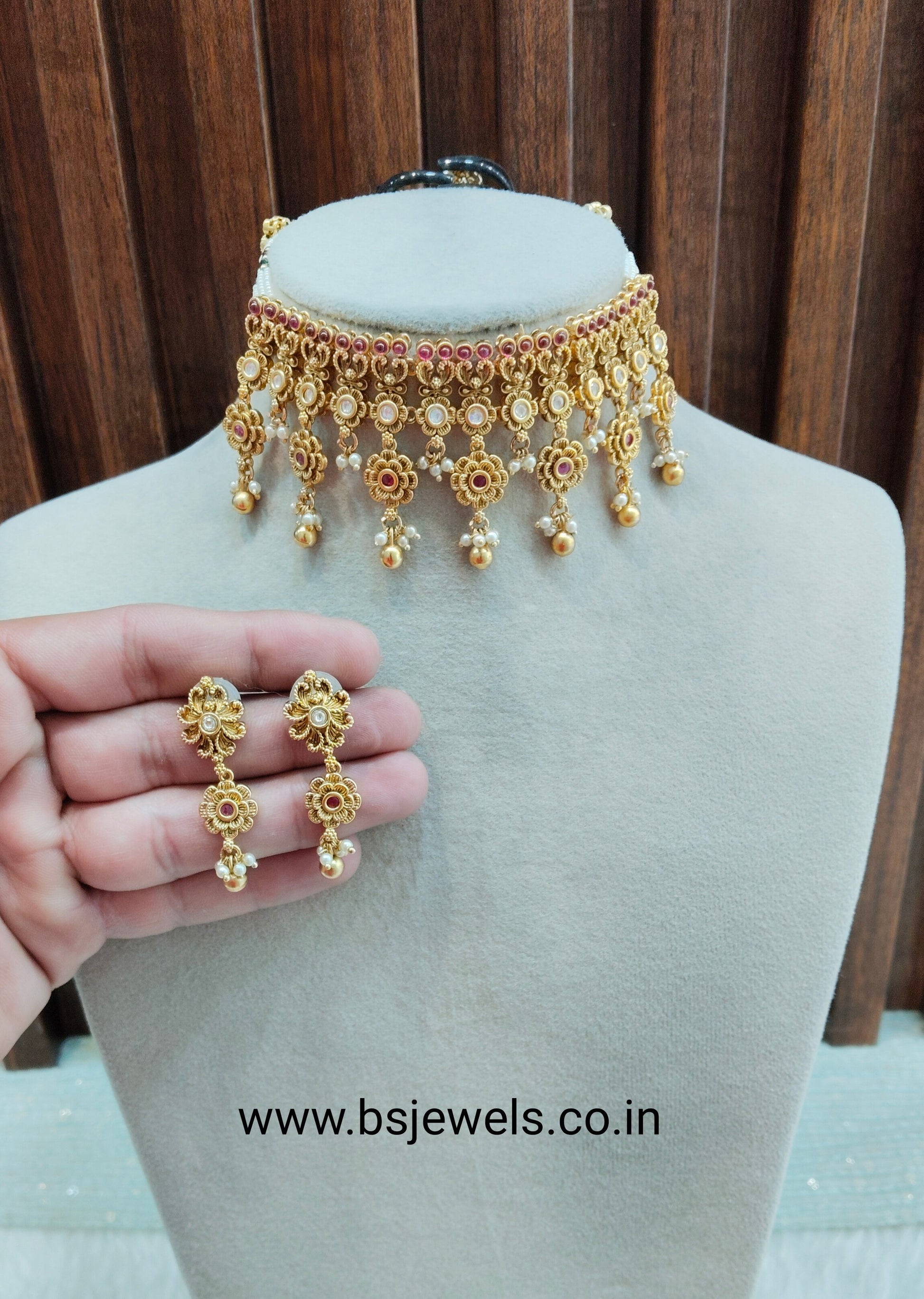 * Gold Finish Polki Choker Set with earrings as shown in the pic.