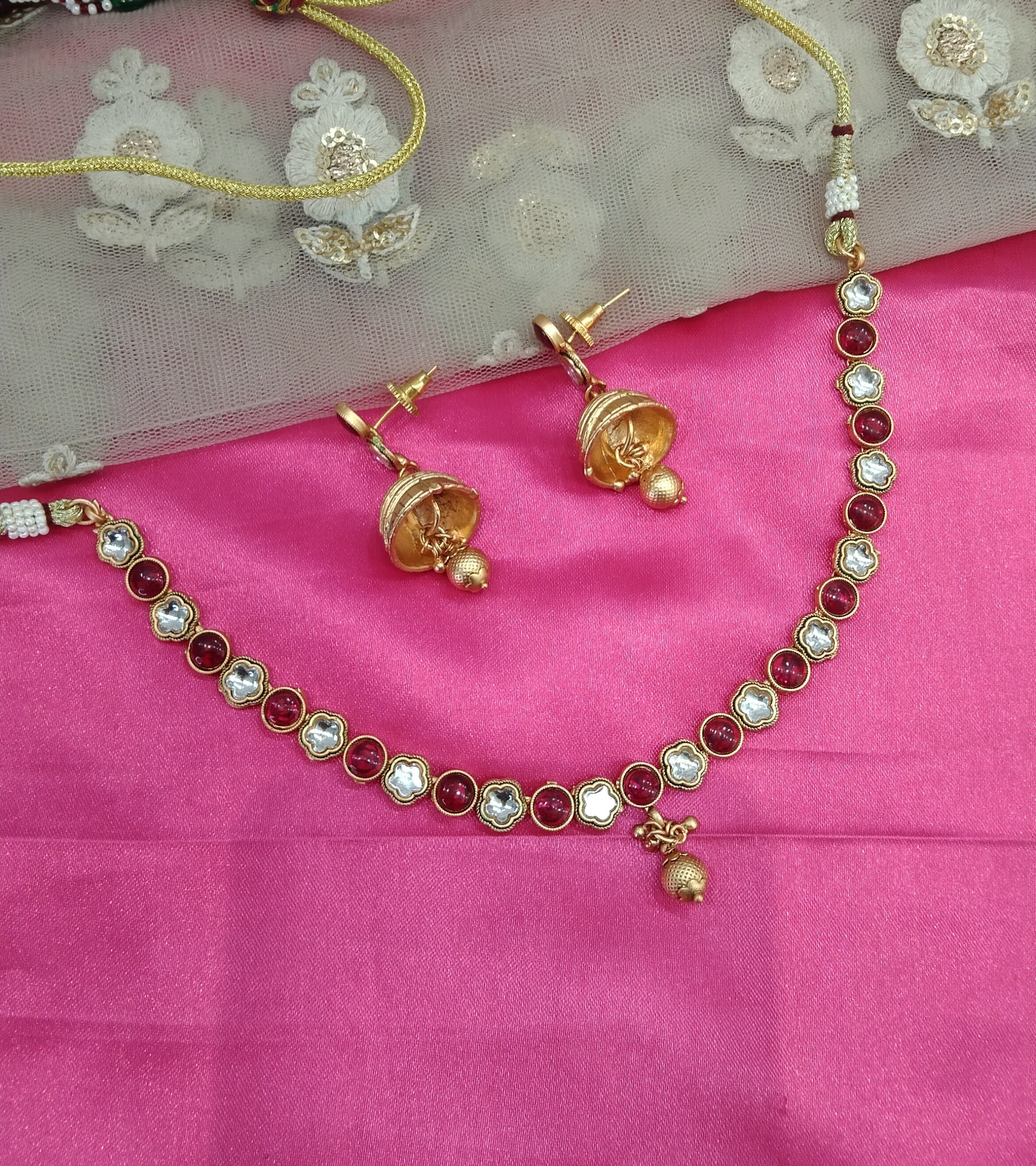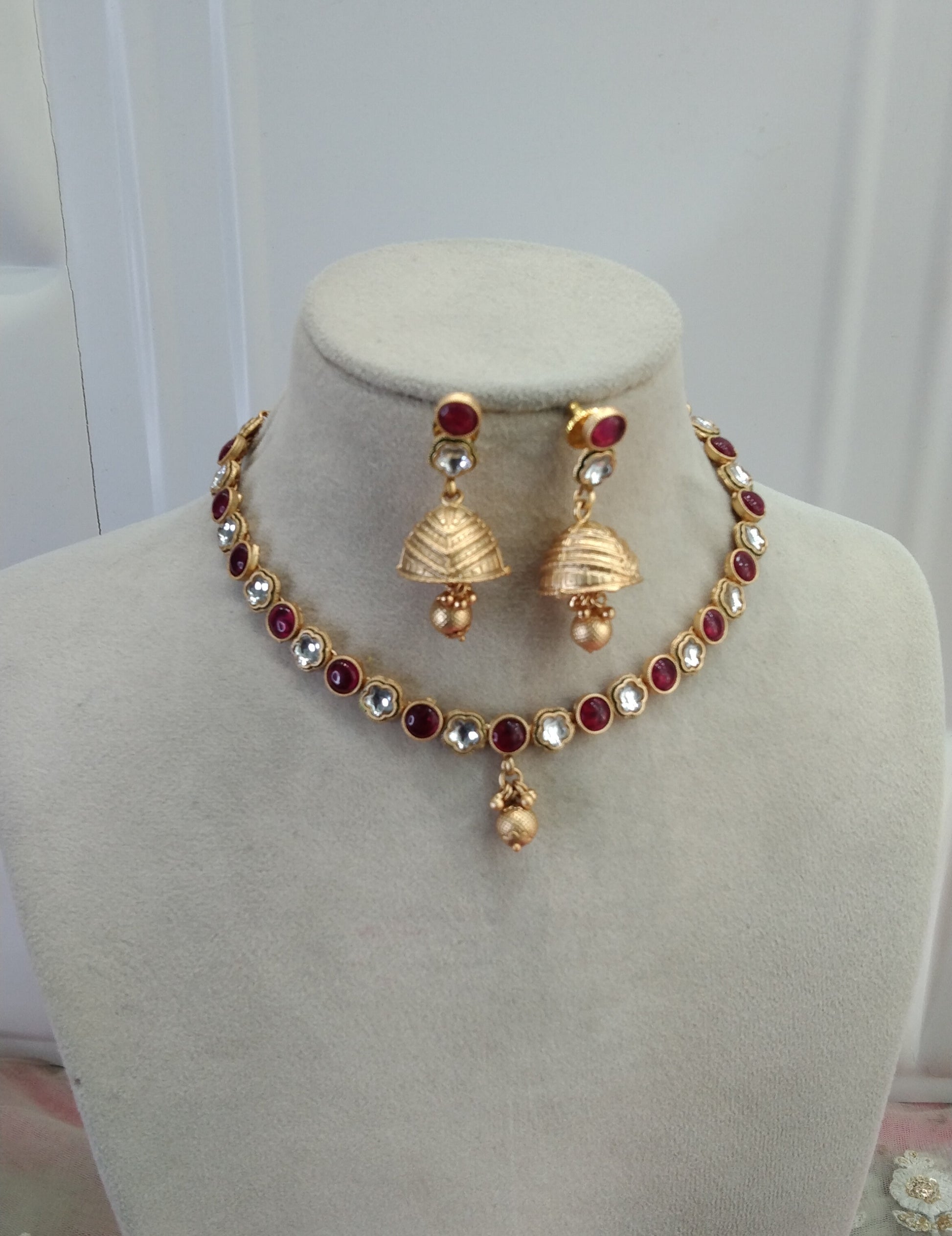 Ruby Gold Polki Jhumki Kundan Necklace Jewelry Siva Set