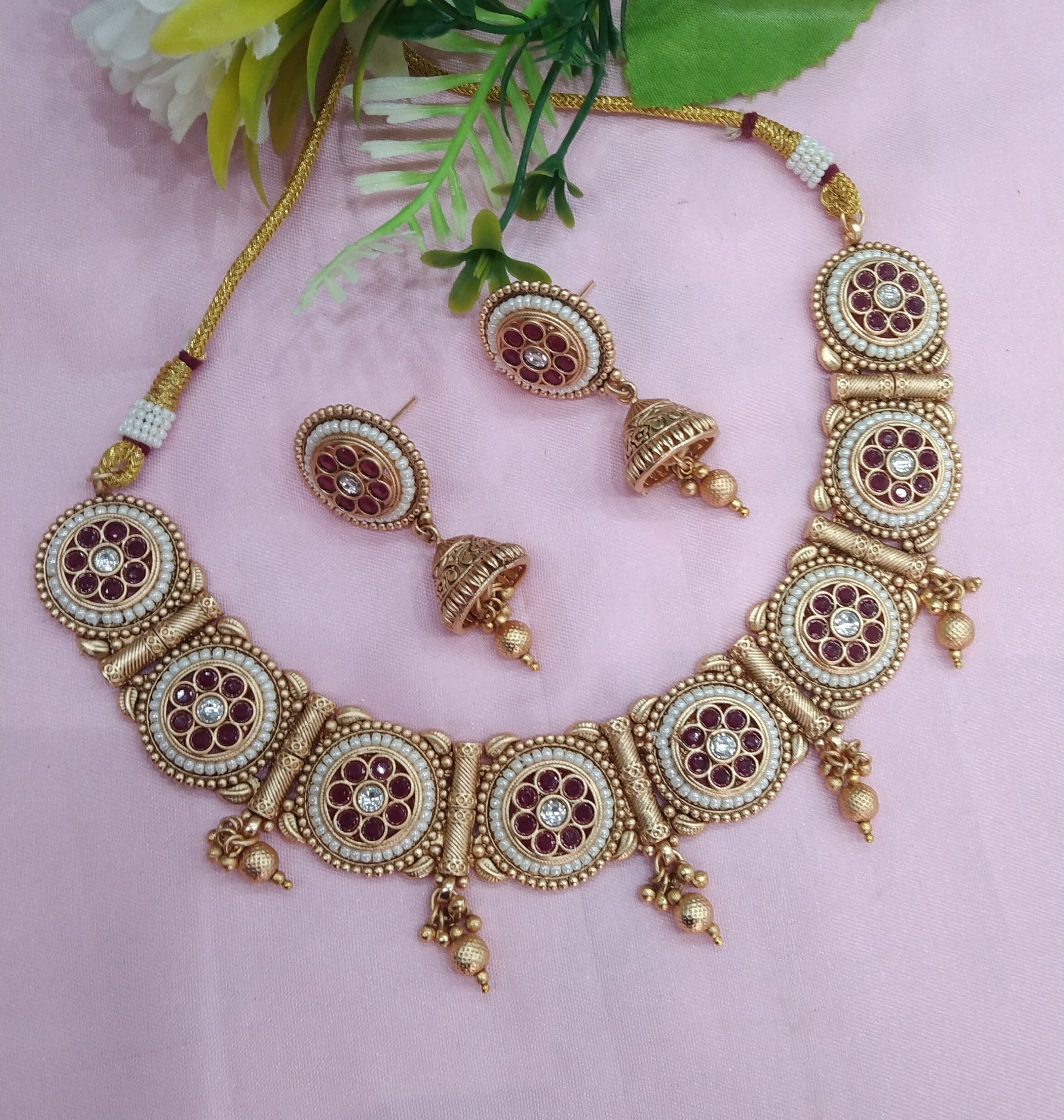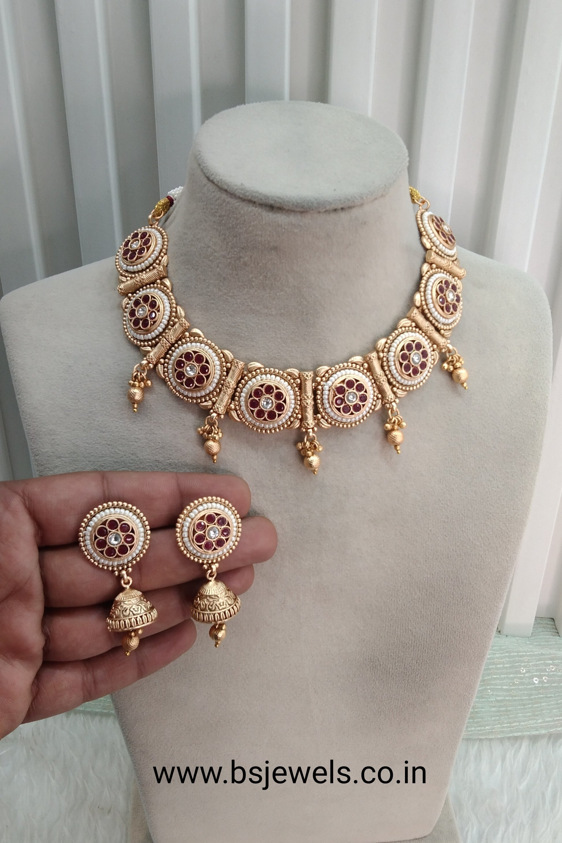 Ruby Gold Polki Necklace Jewellery Hanita Set