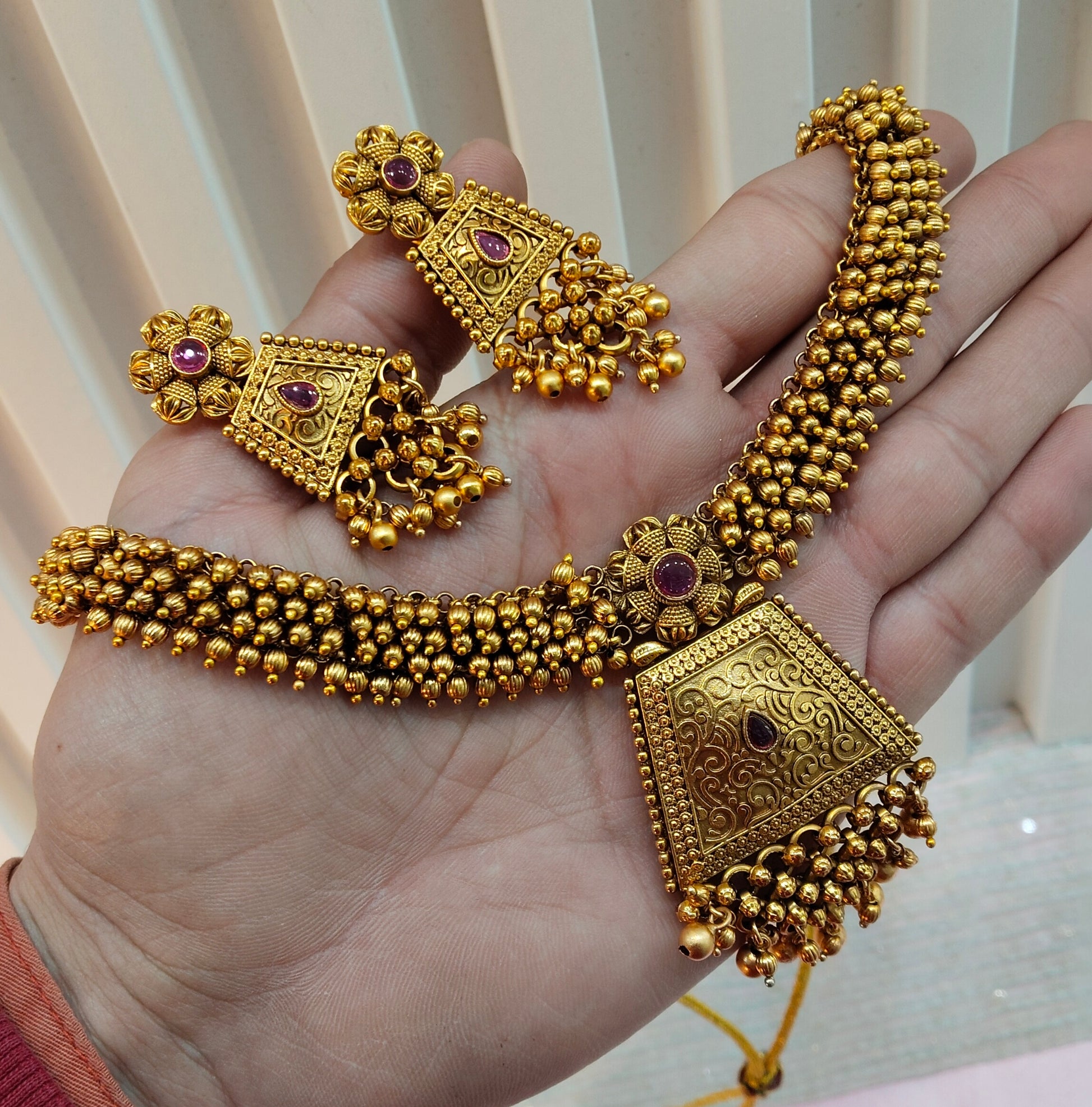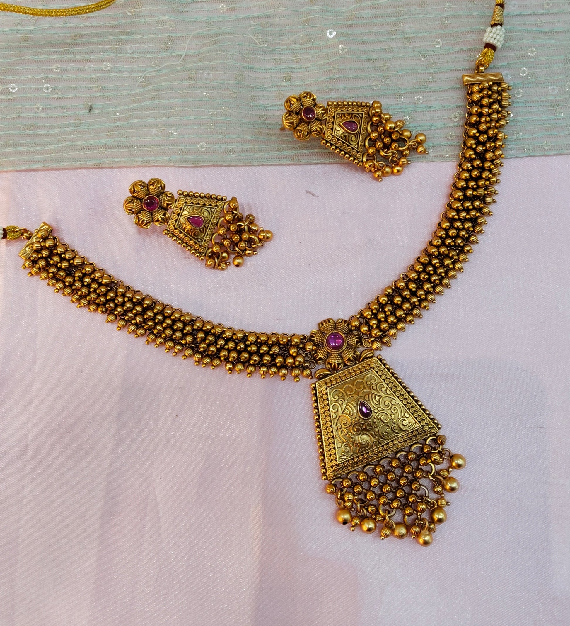 Ruby Gold Polki Necklace Jewellery Harf Set