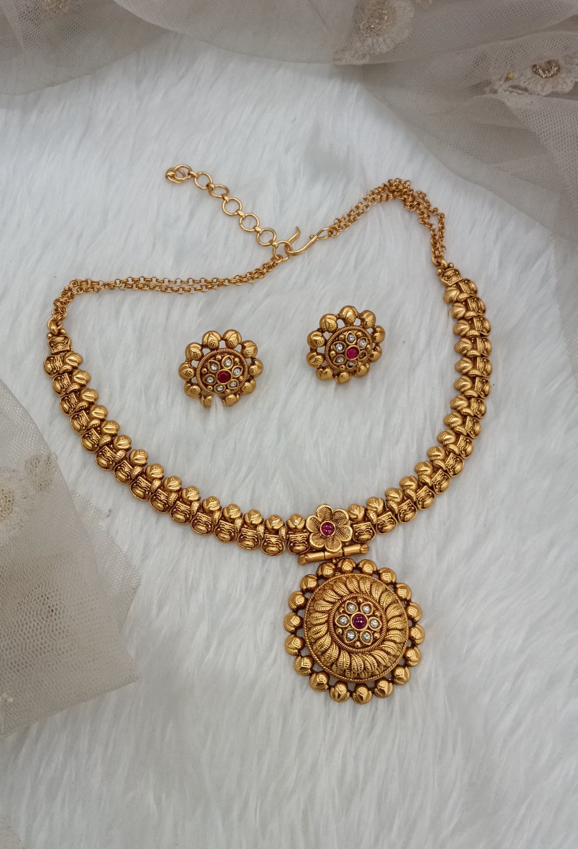 Ruby Gold Polki Necklace Jewellery Harf Set