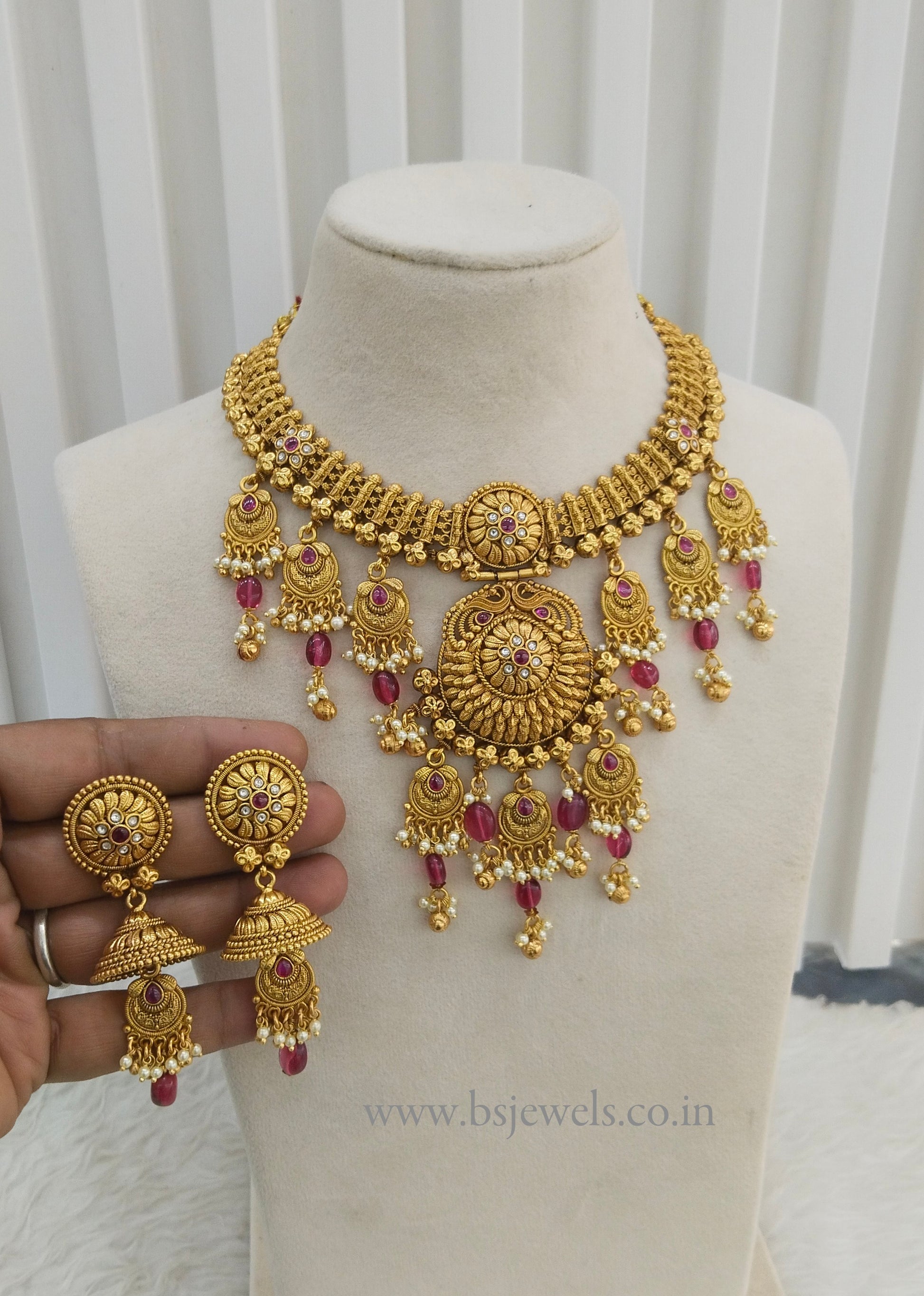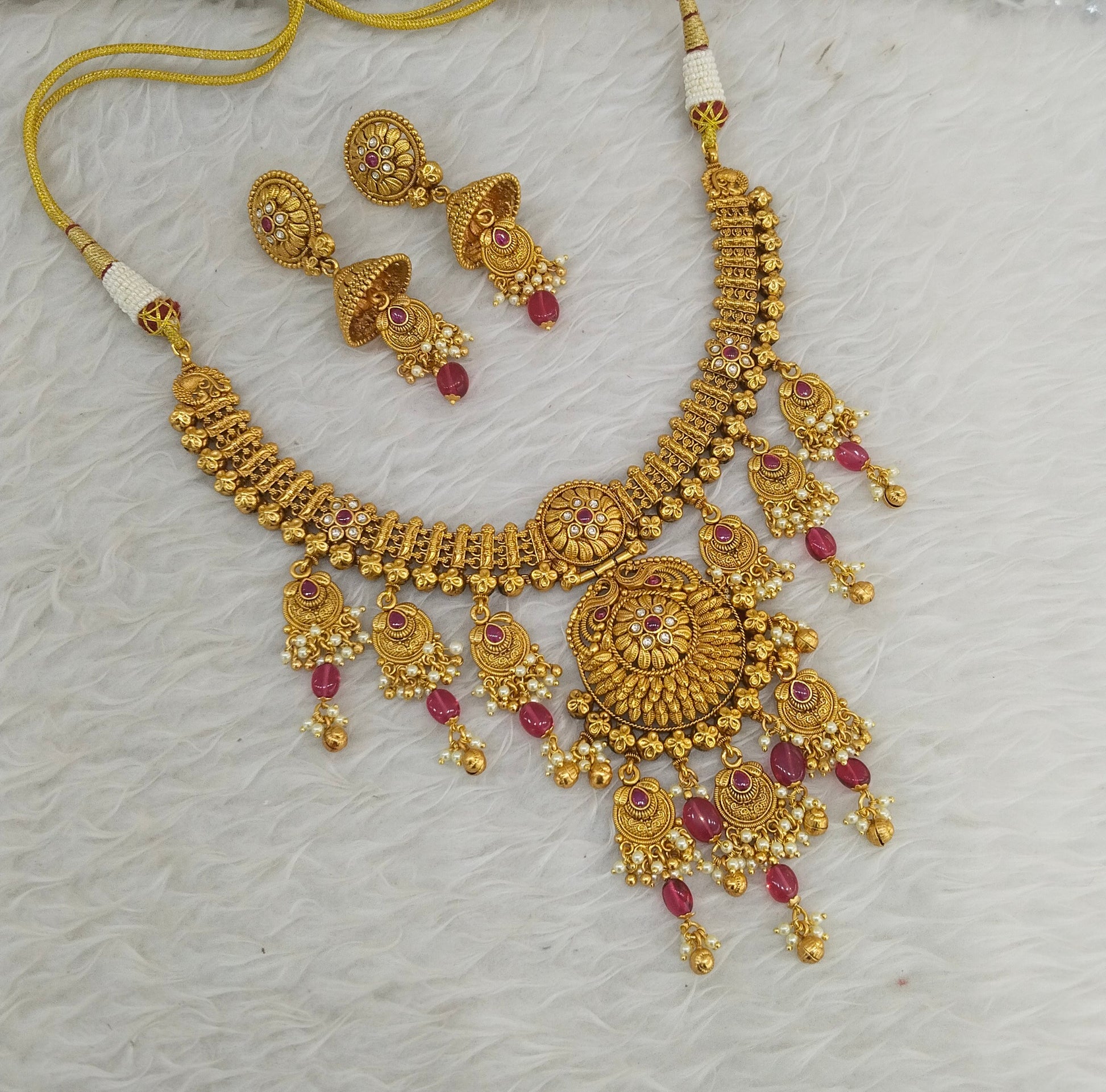 Ruby Gold Polki Necklace Jewellery Harf Set