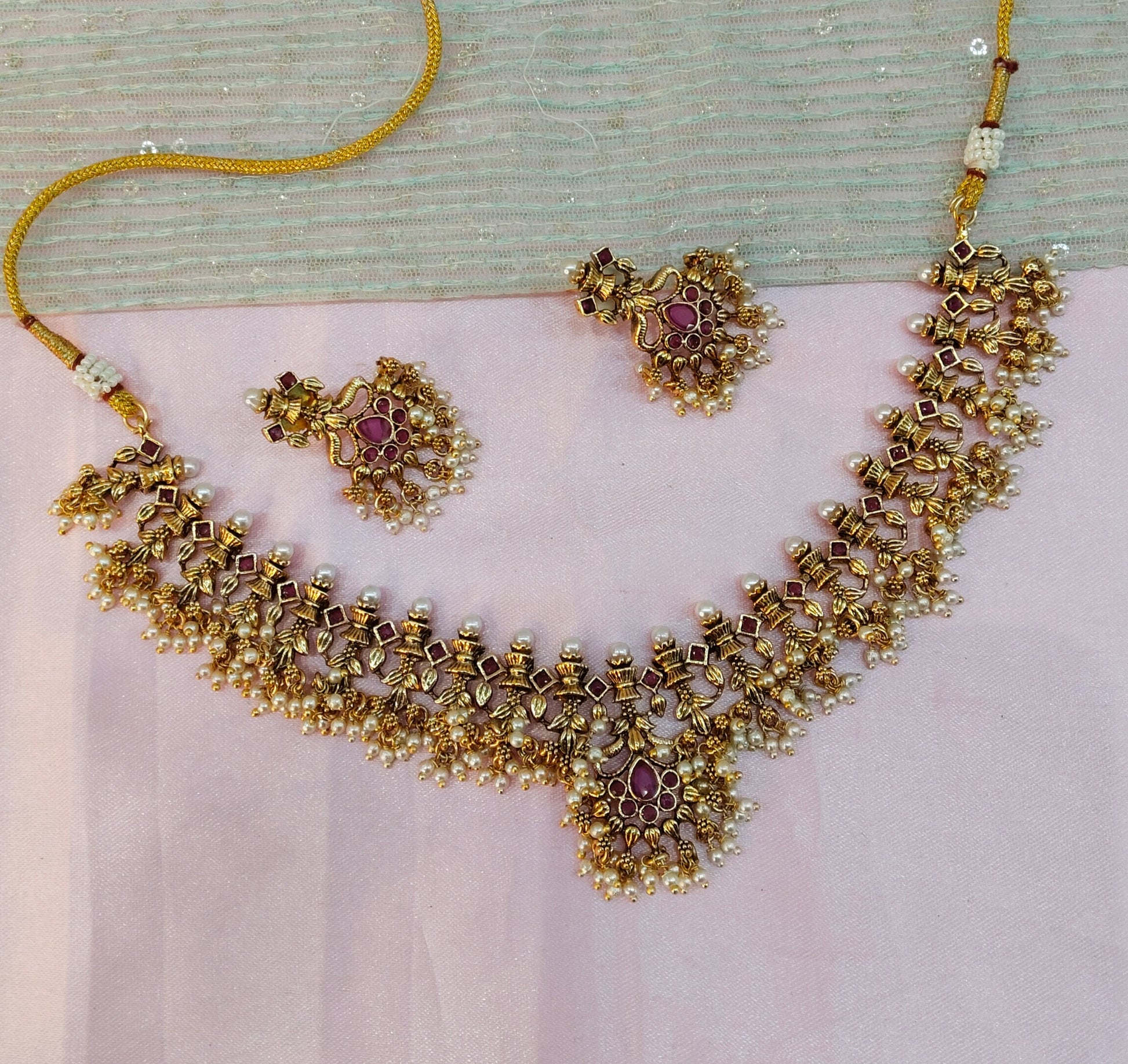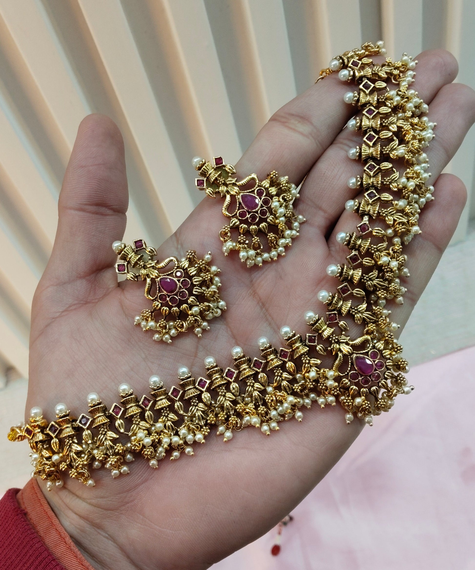 Ruby Gold Polki Necklace Jewellery Harf Set