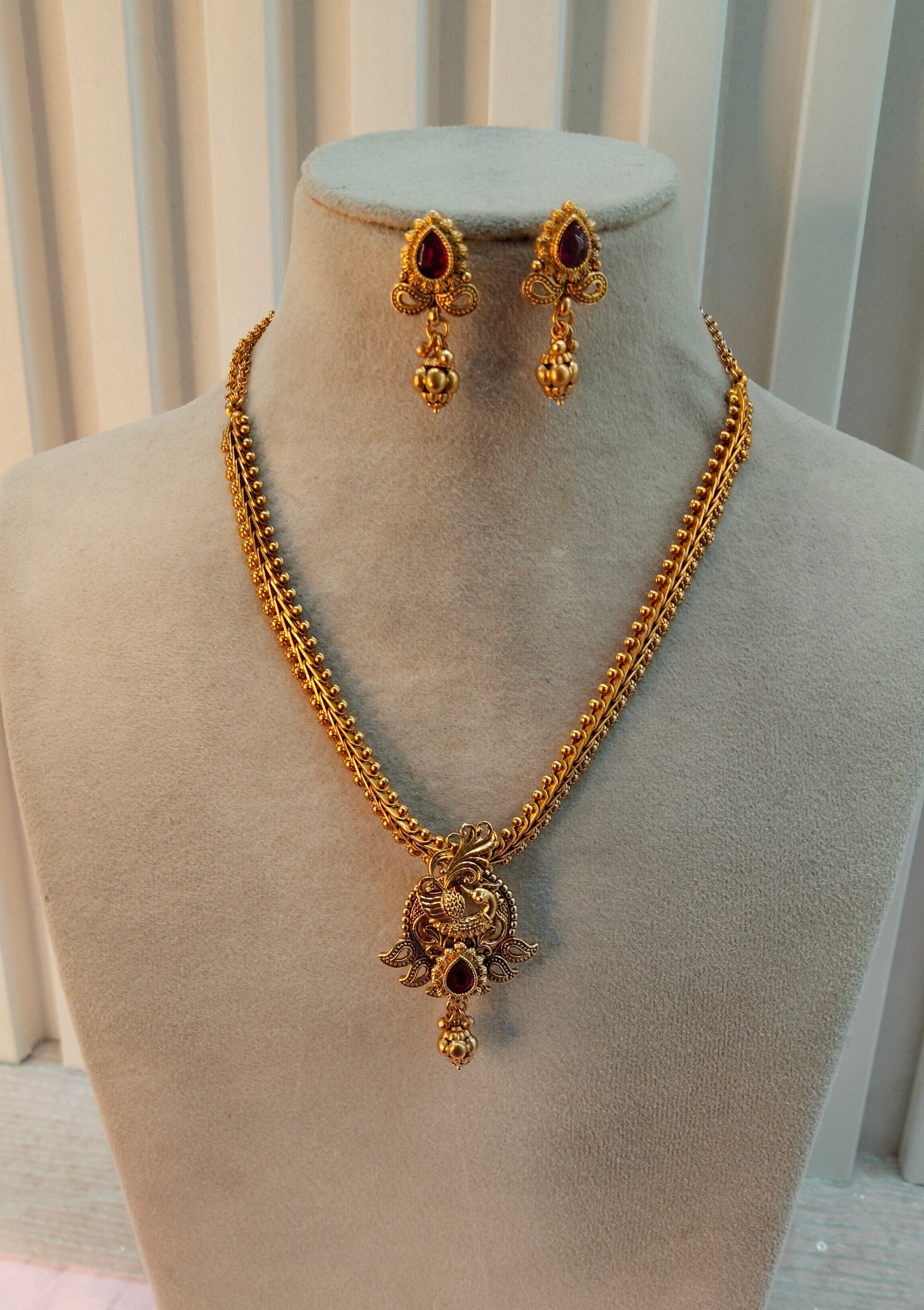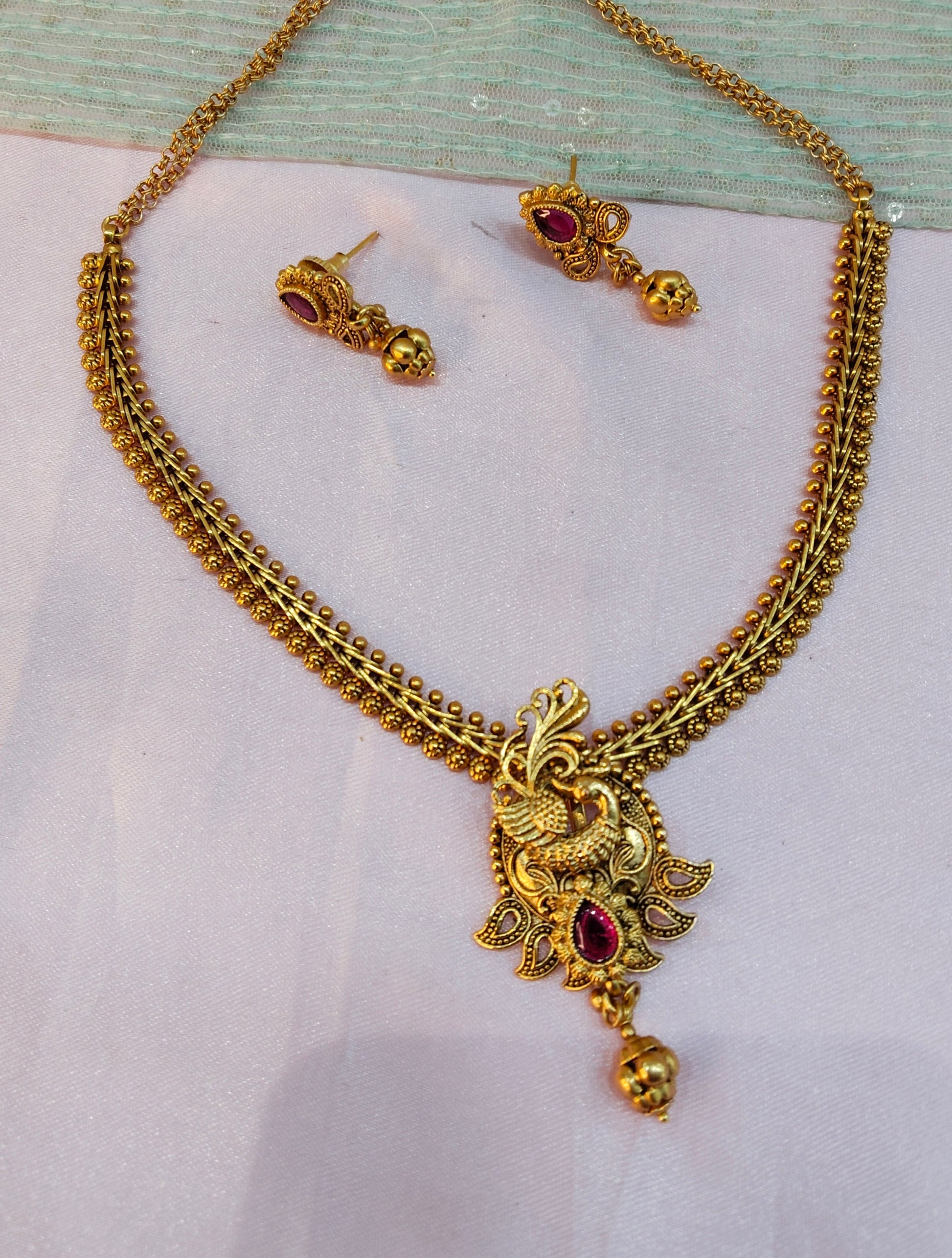 Ruby Gold Polki Necklace Jewellery Harf Set