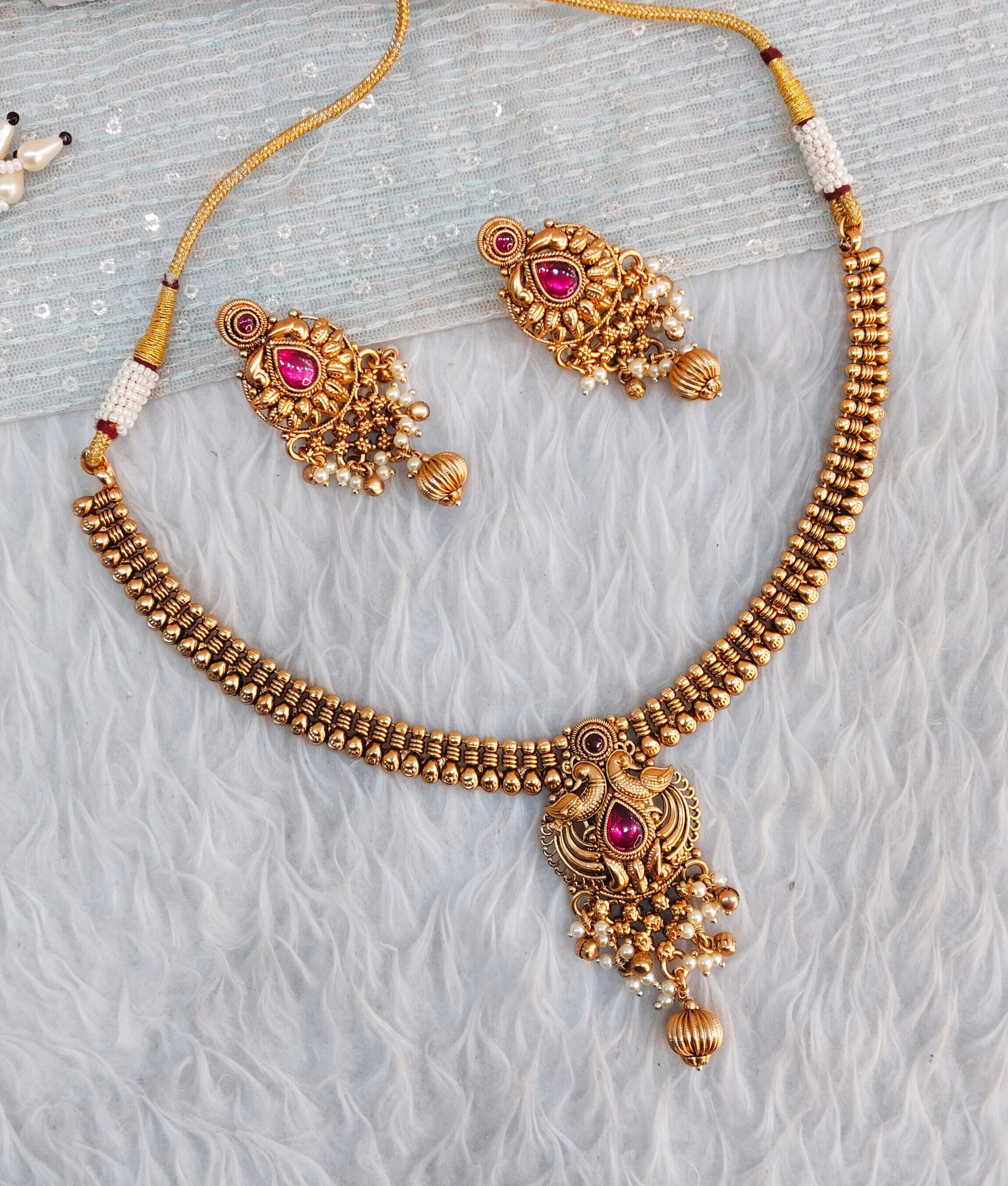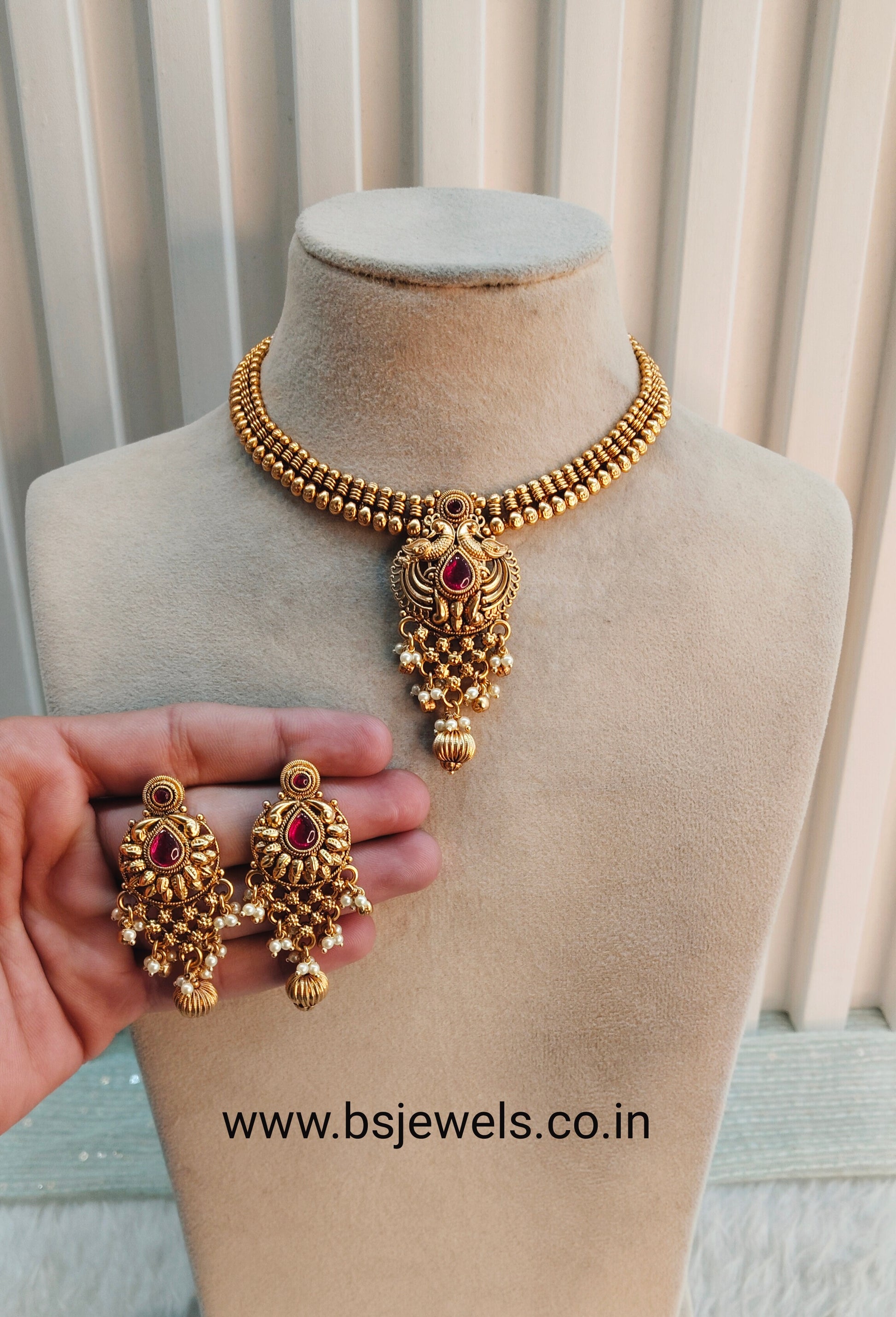 Ruby Gold Polki Necklace Jewellery Harf Set