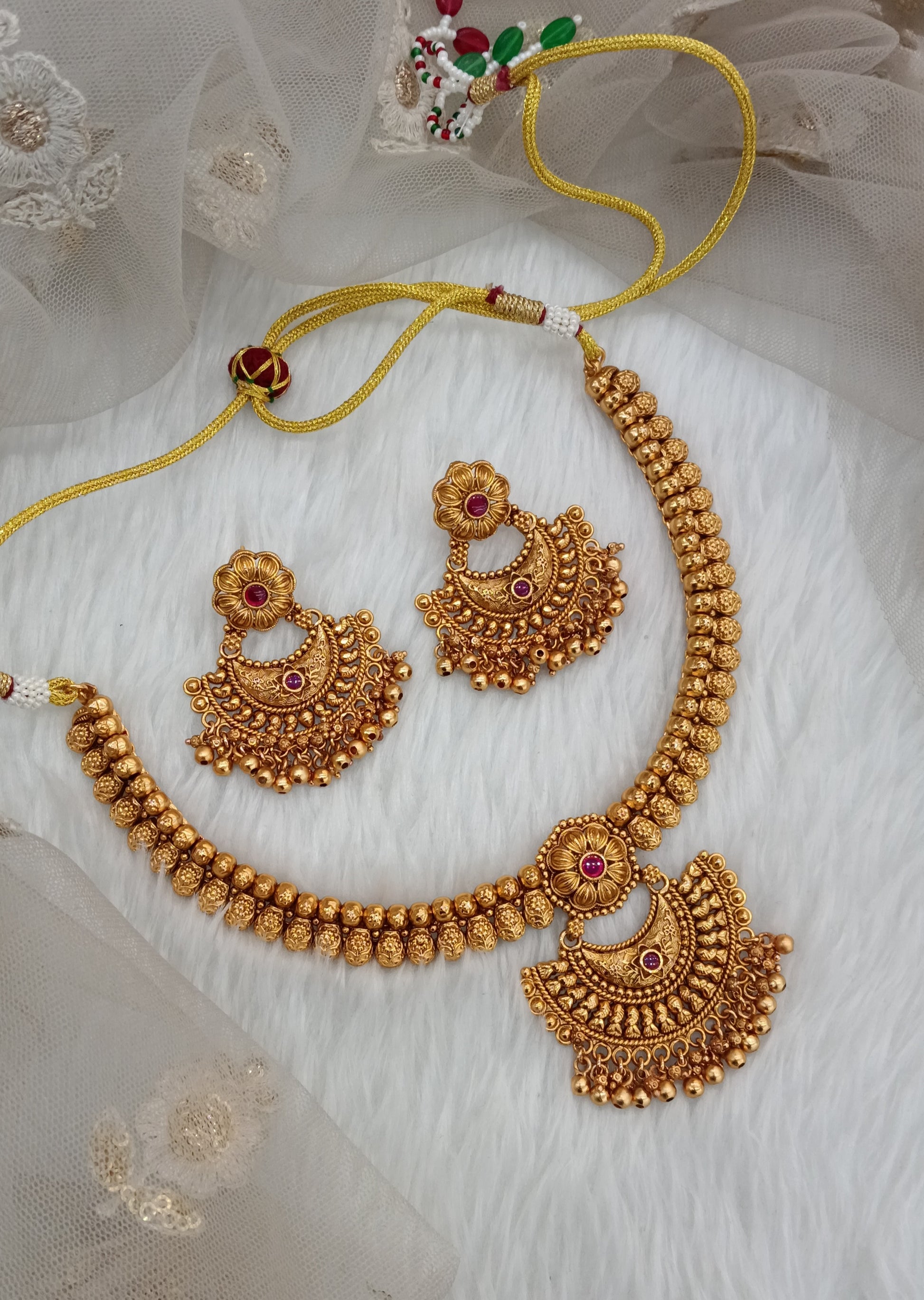 Ruby Gold Polki Necklace Jewellery Harf Set