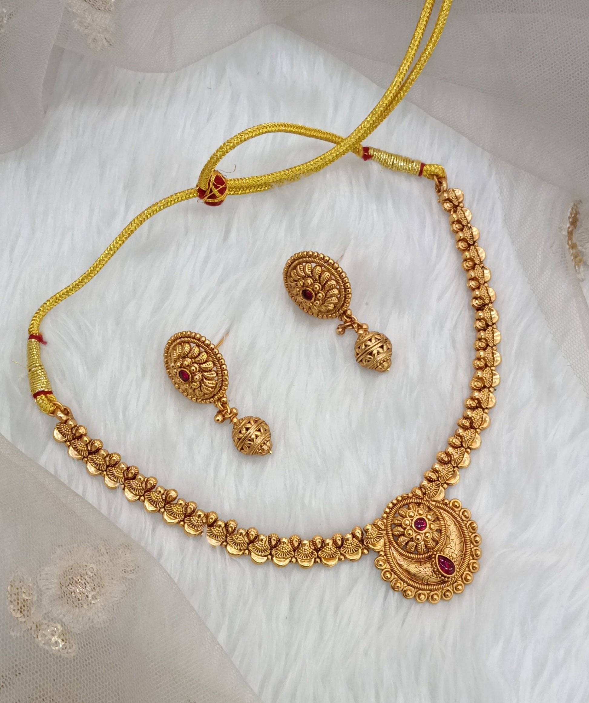 Ruby Gold Polki Necklace Jewellery Harf Set