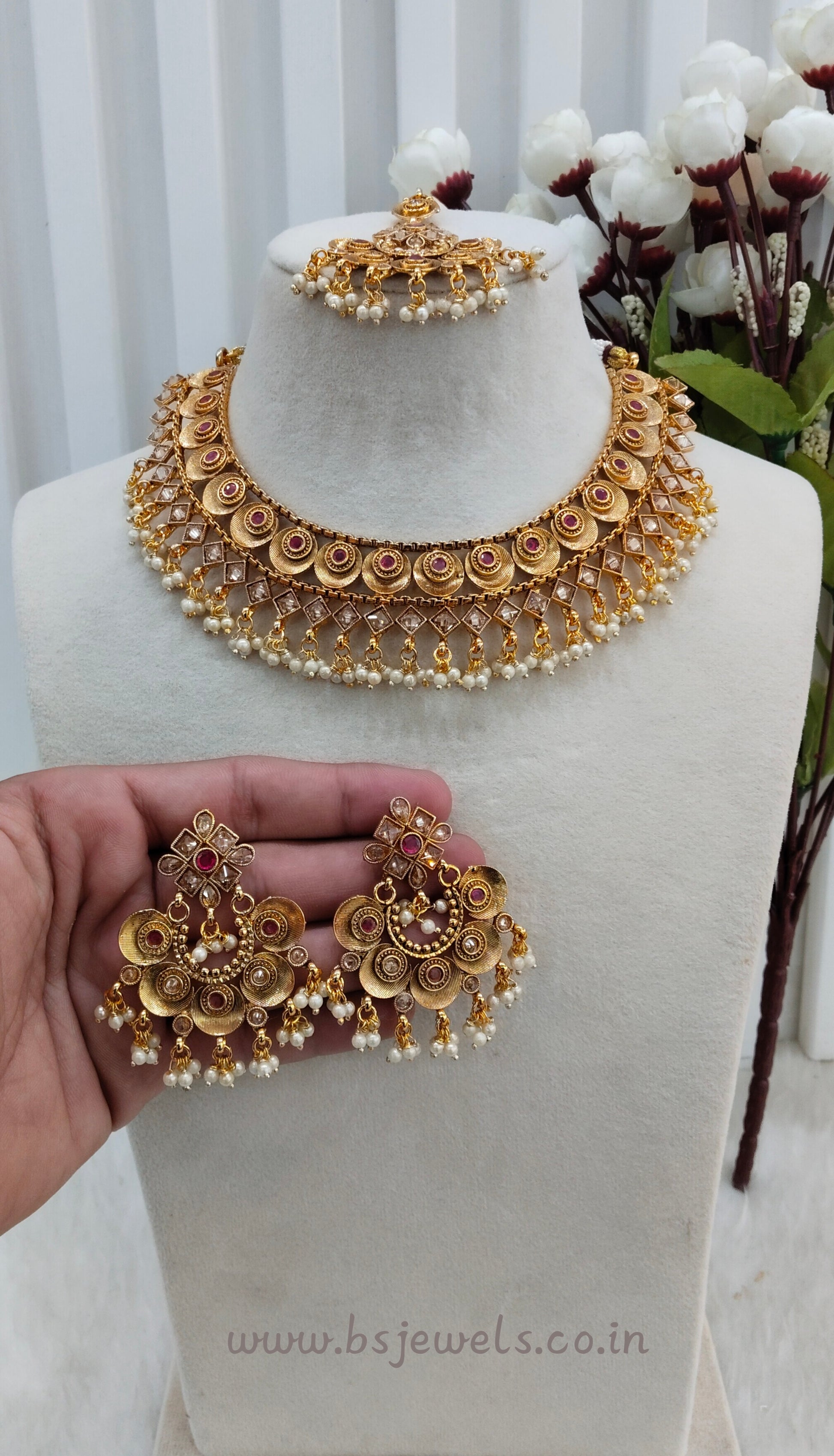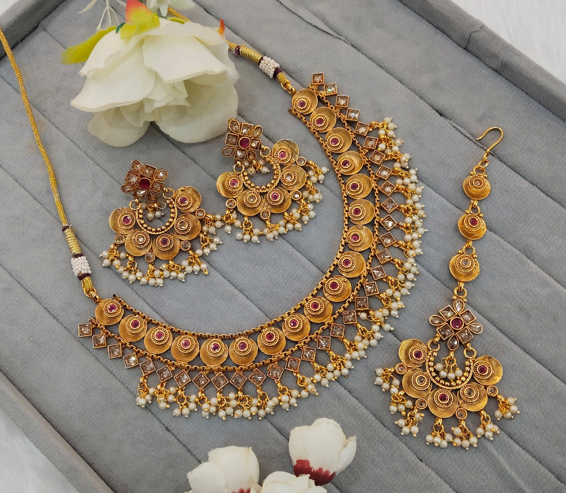 Ruby Gold Polki Necklace Jewellery Kuwar Set