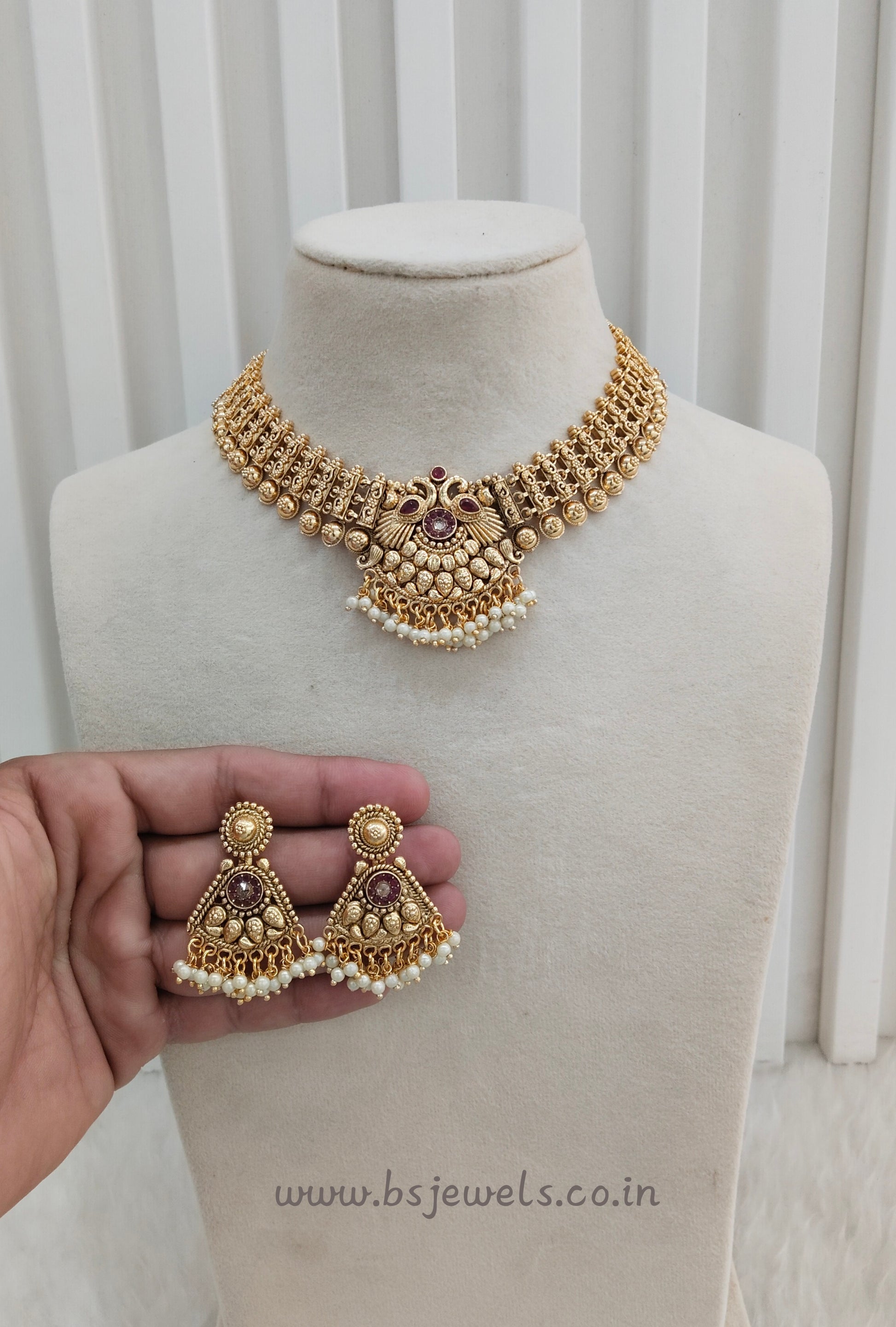 * Gold Finish Polki Necklace Set with earrings as shown in the pic.