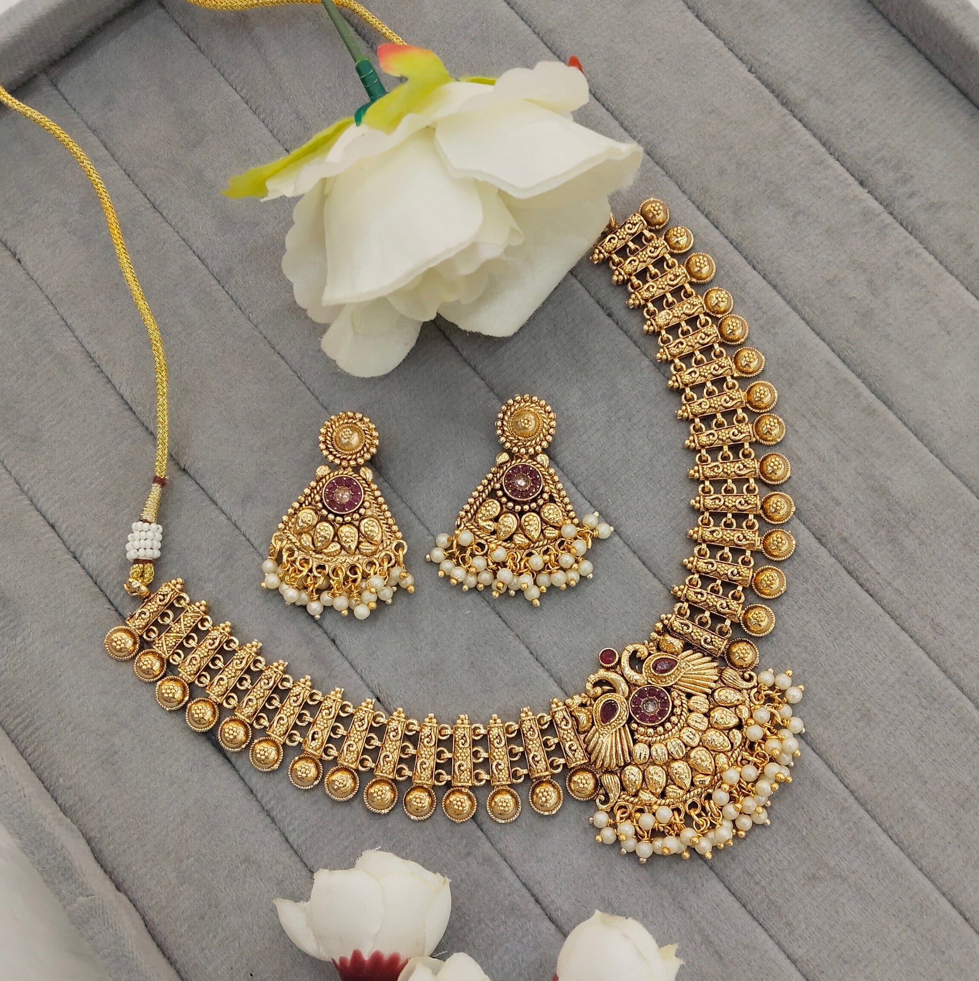 Ruby Gold Polki Necklace Jewellery Kuwar Set