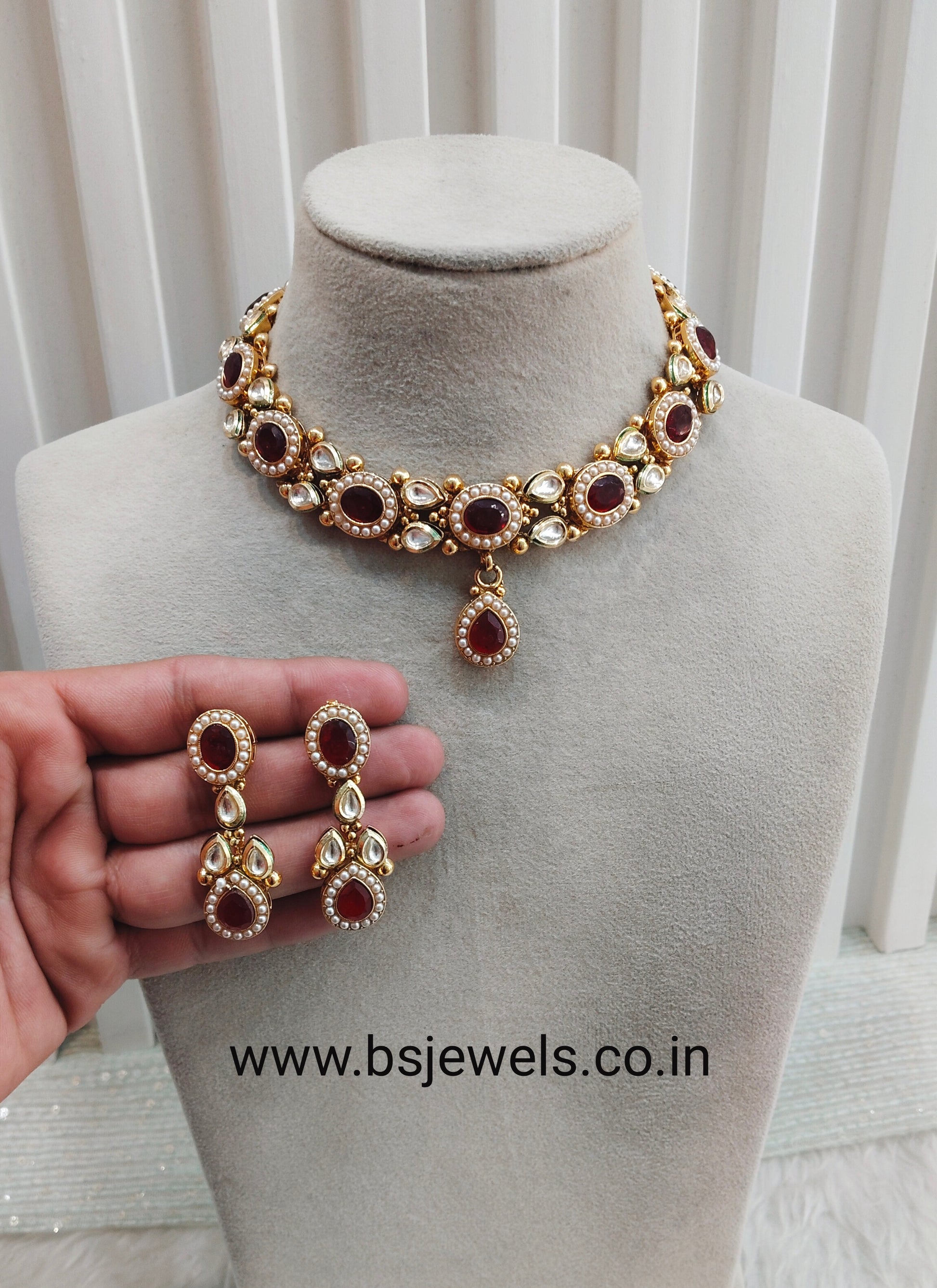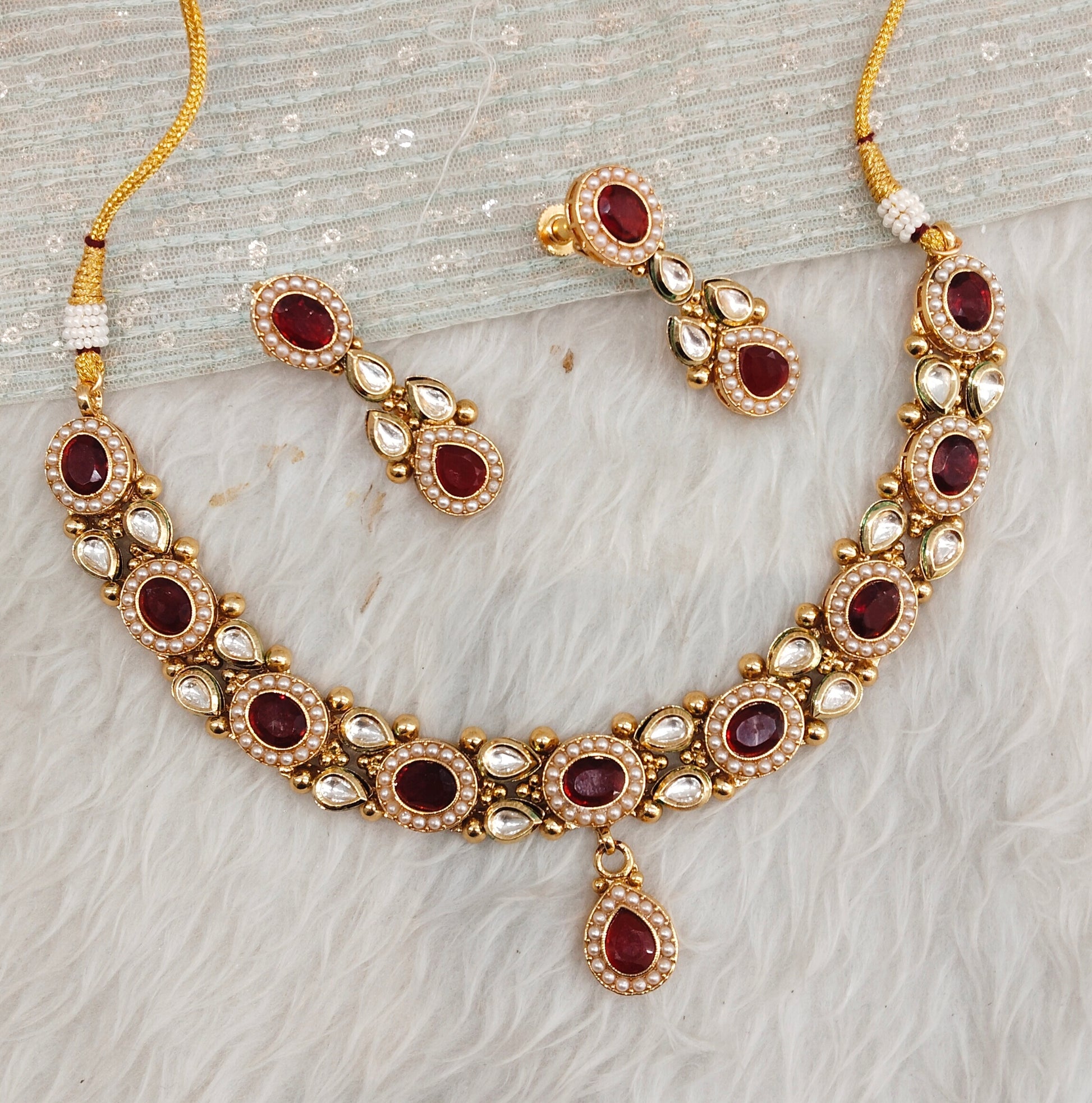 Ruby Gold Polki Necklace Jewellery Maxwel Set