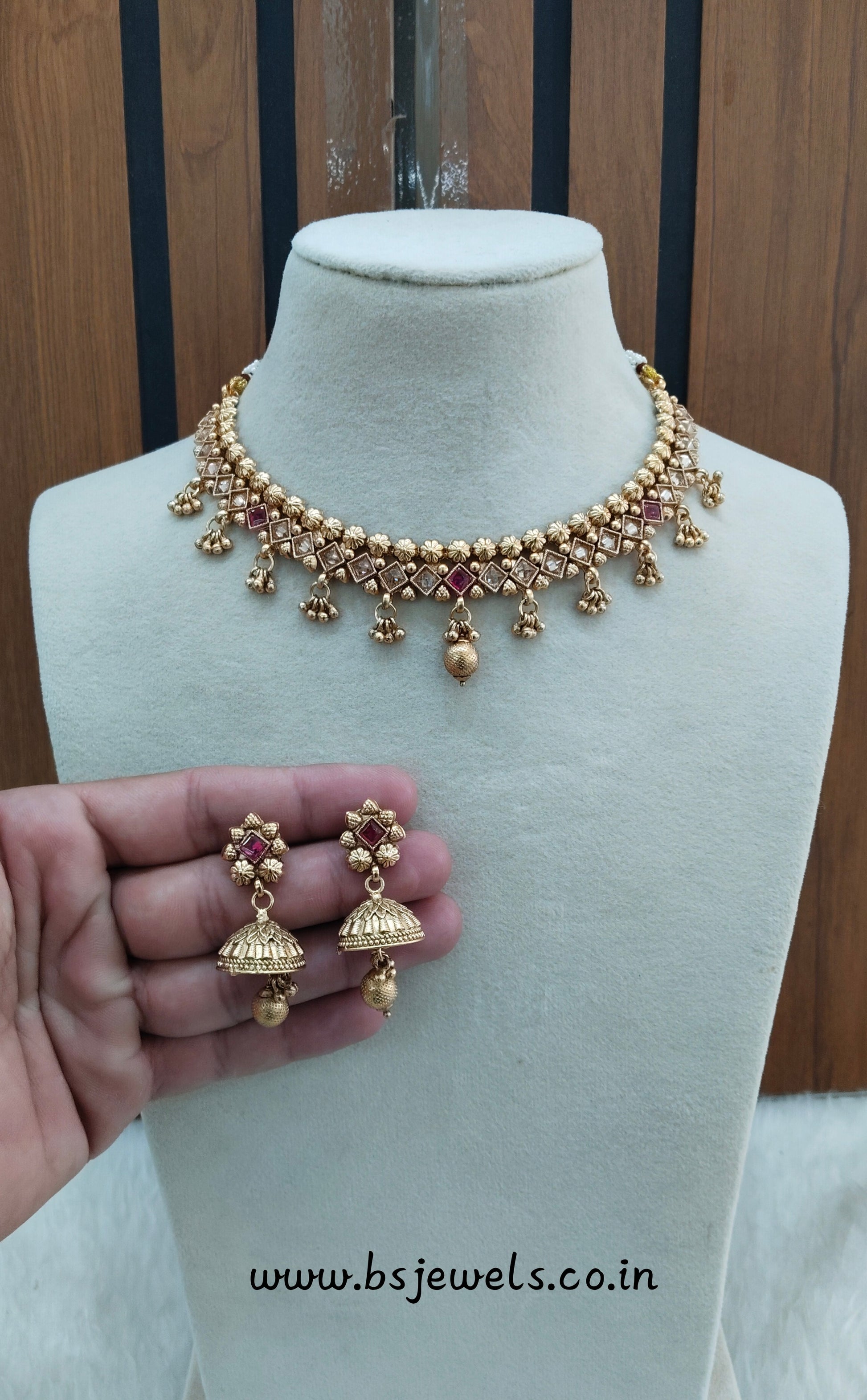 Ruby Gold Polki Necklace Jewellery Pawan Set