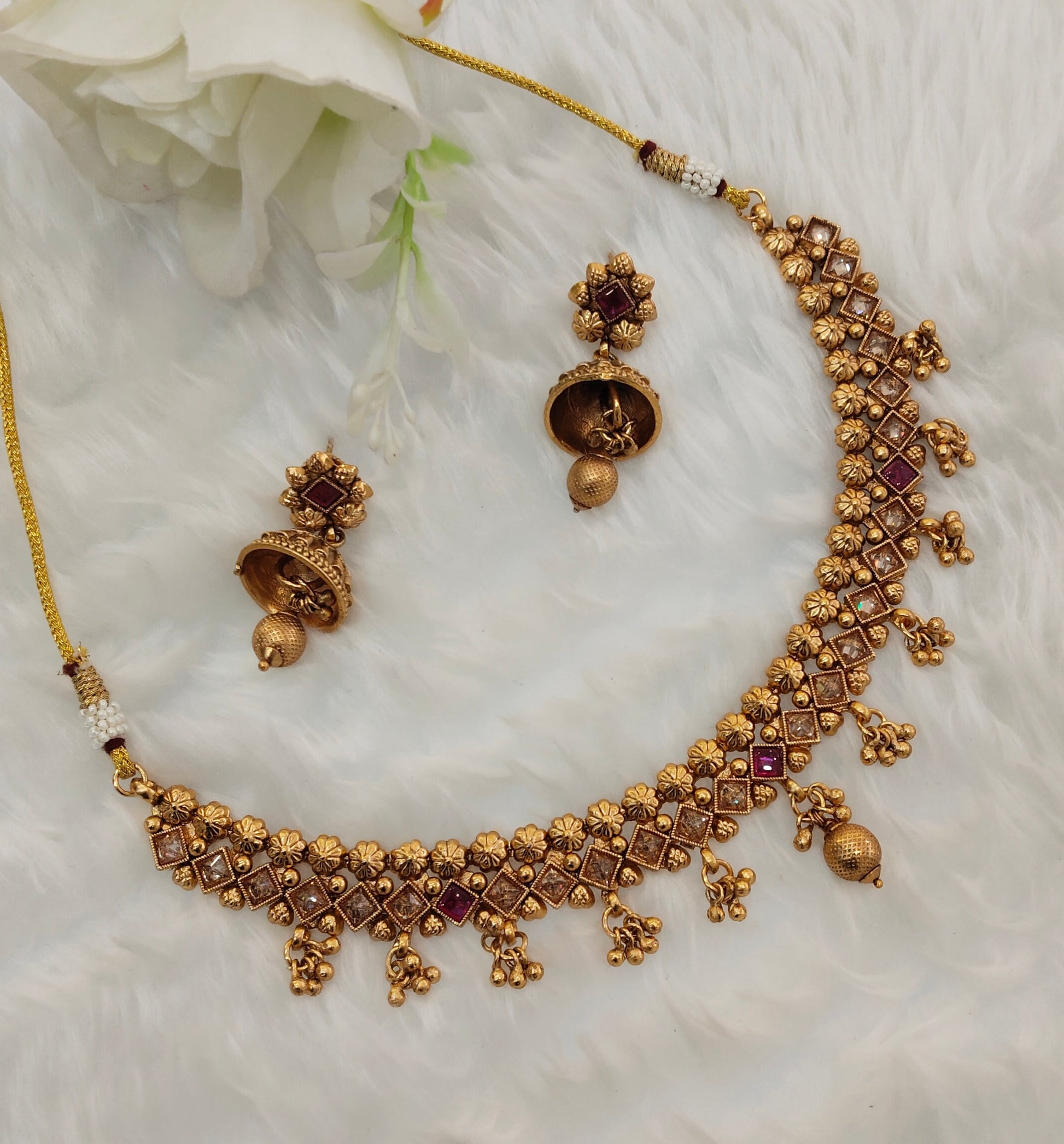 *Gold Polki Necklace set with earrings