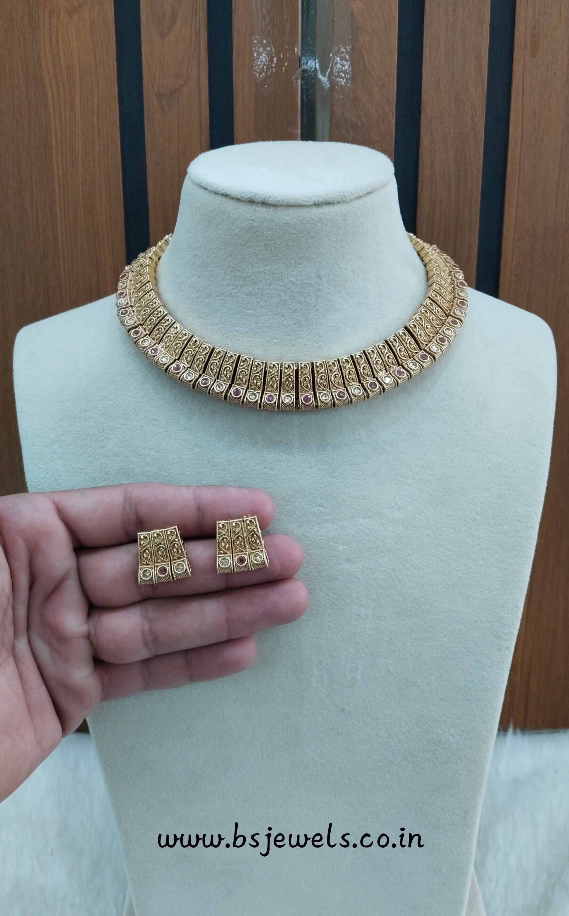 *Gold Polki Necklace set with earrings