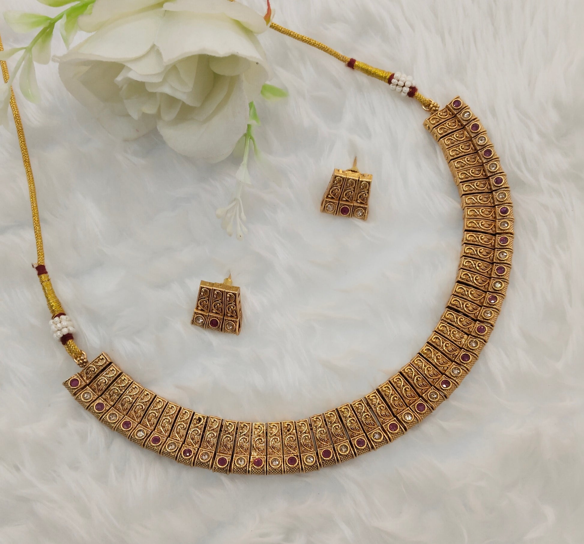 Ruby Gold Polki Necklace Jewellery Pawan Set