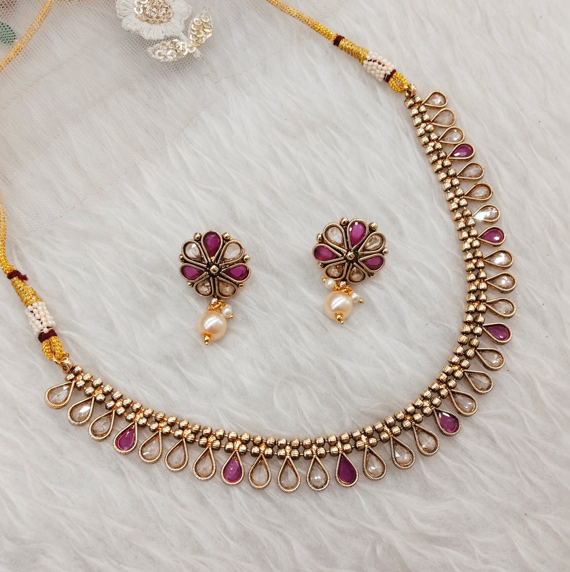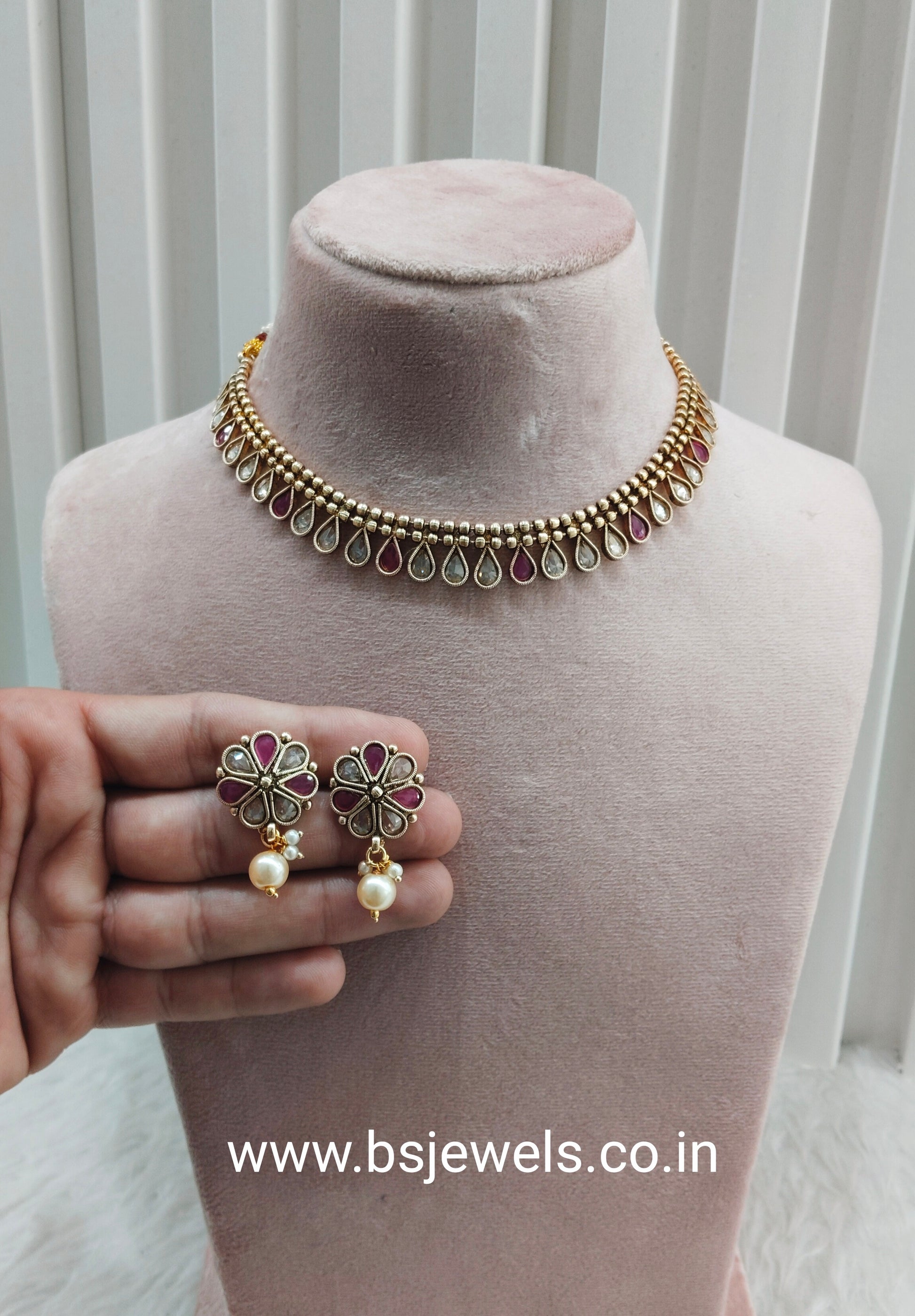 * Gold Finish Polki Necklace Set with earrings as shown in the pic.