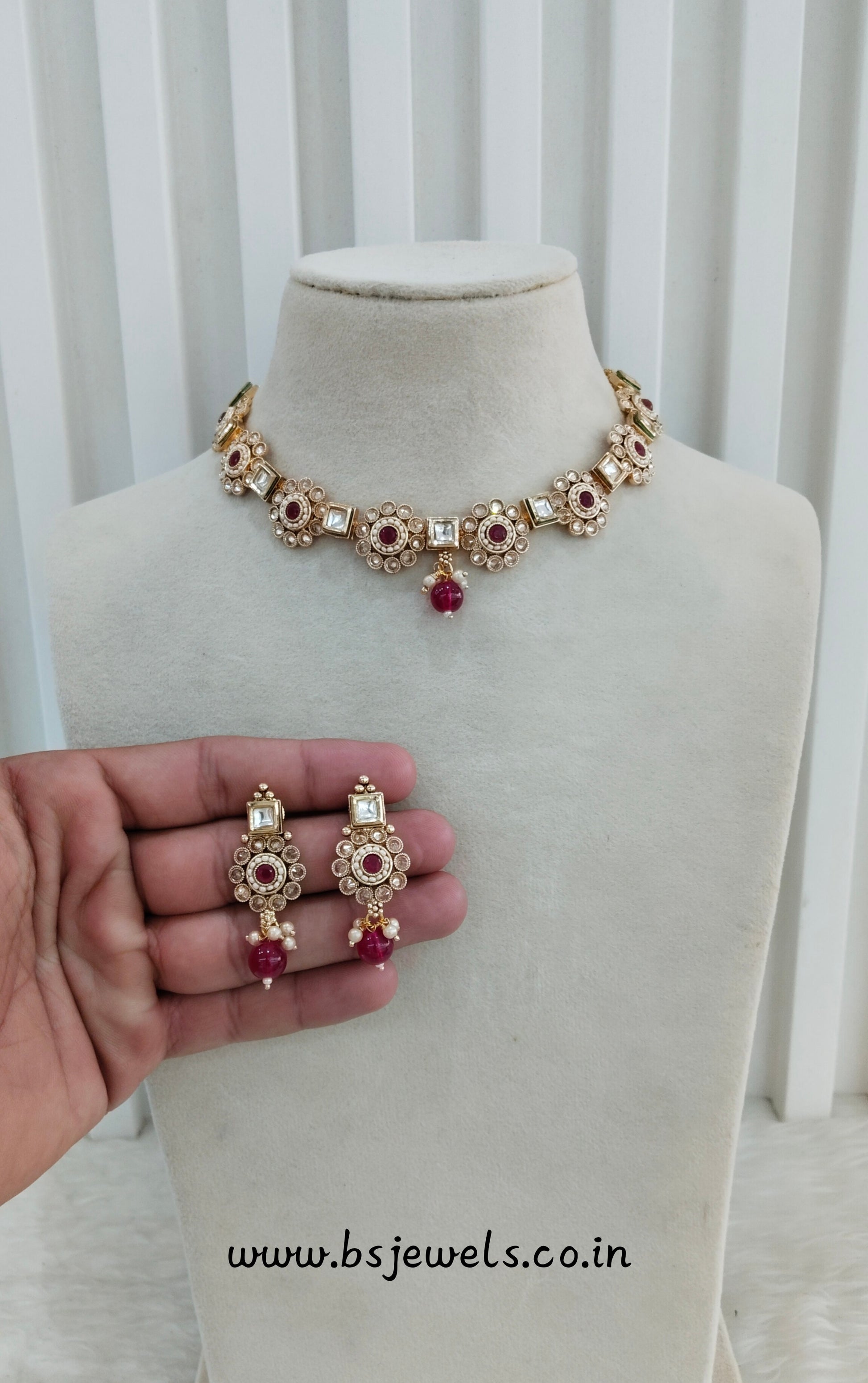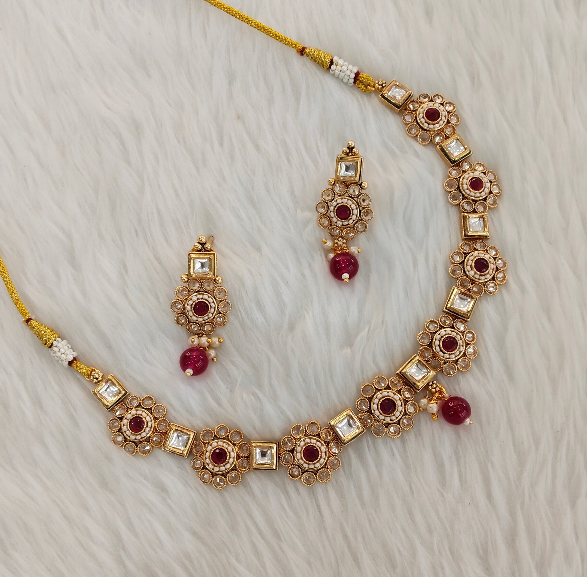 Ruby Gold Polki Necklace Jewelry Siva Set