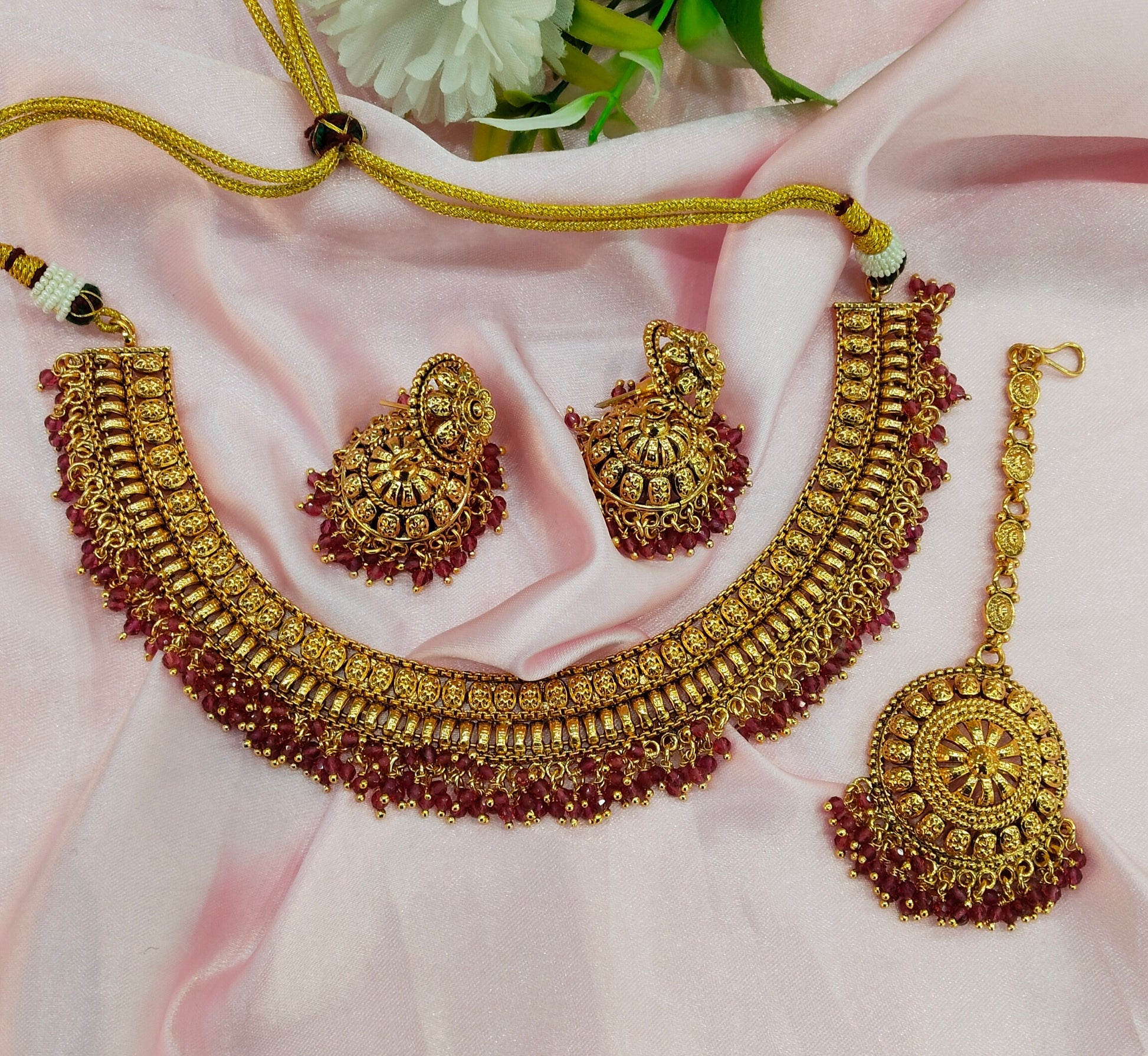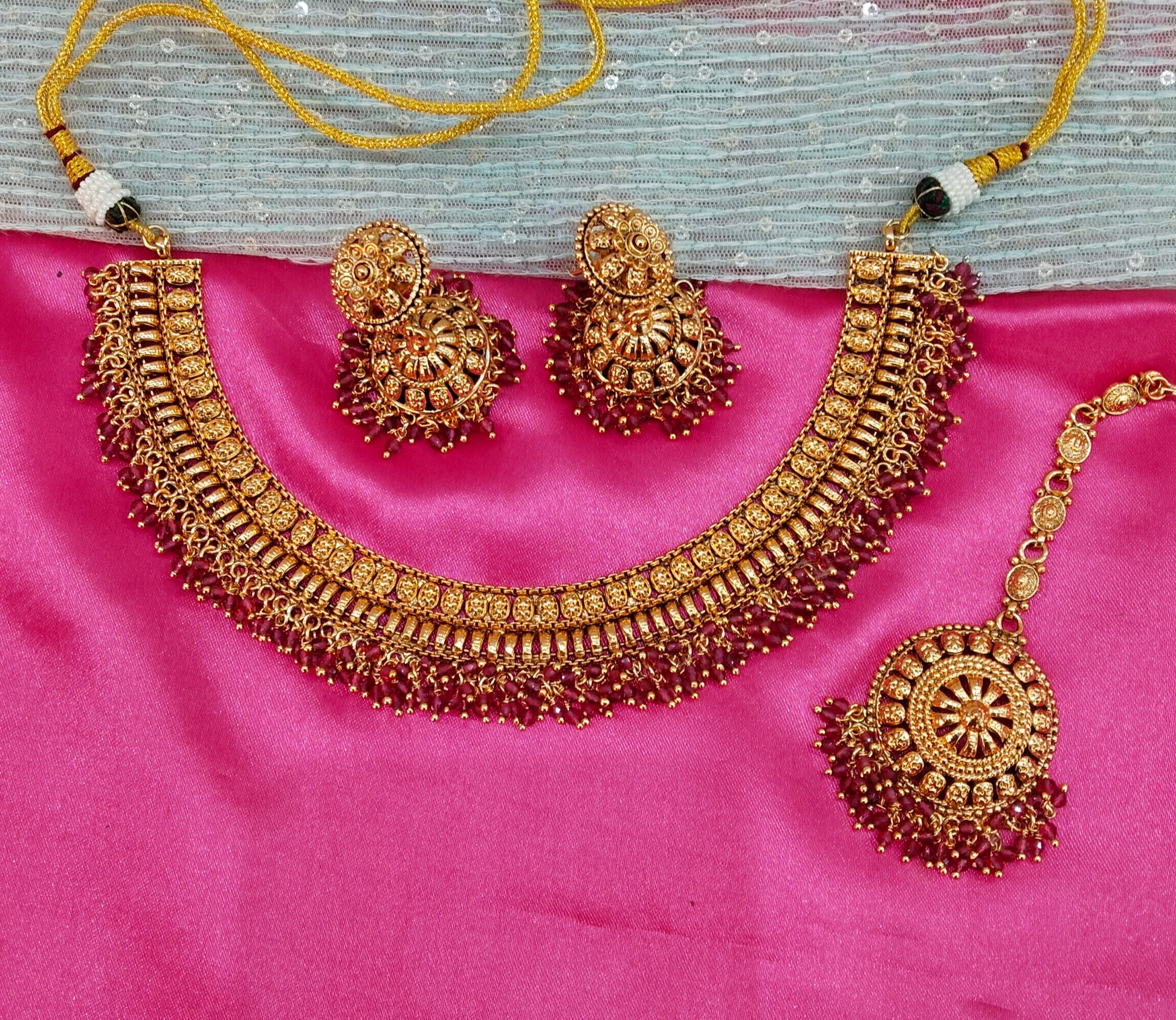 Ruby Gold Polki Necklace Jhumka Jewellery Studio Set