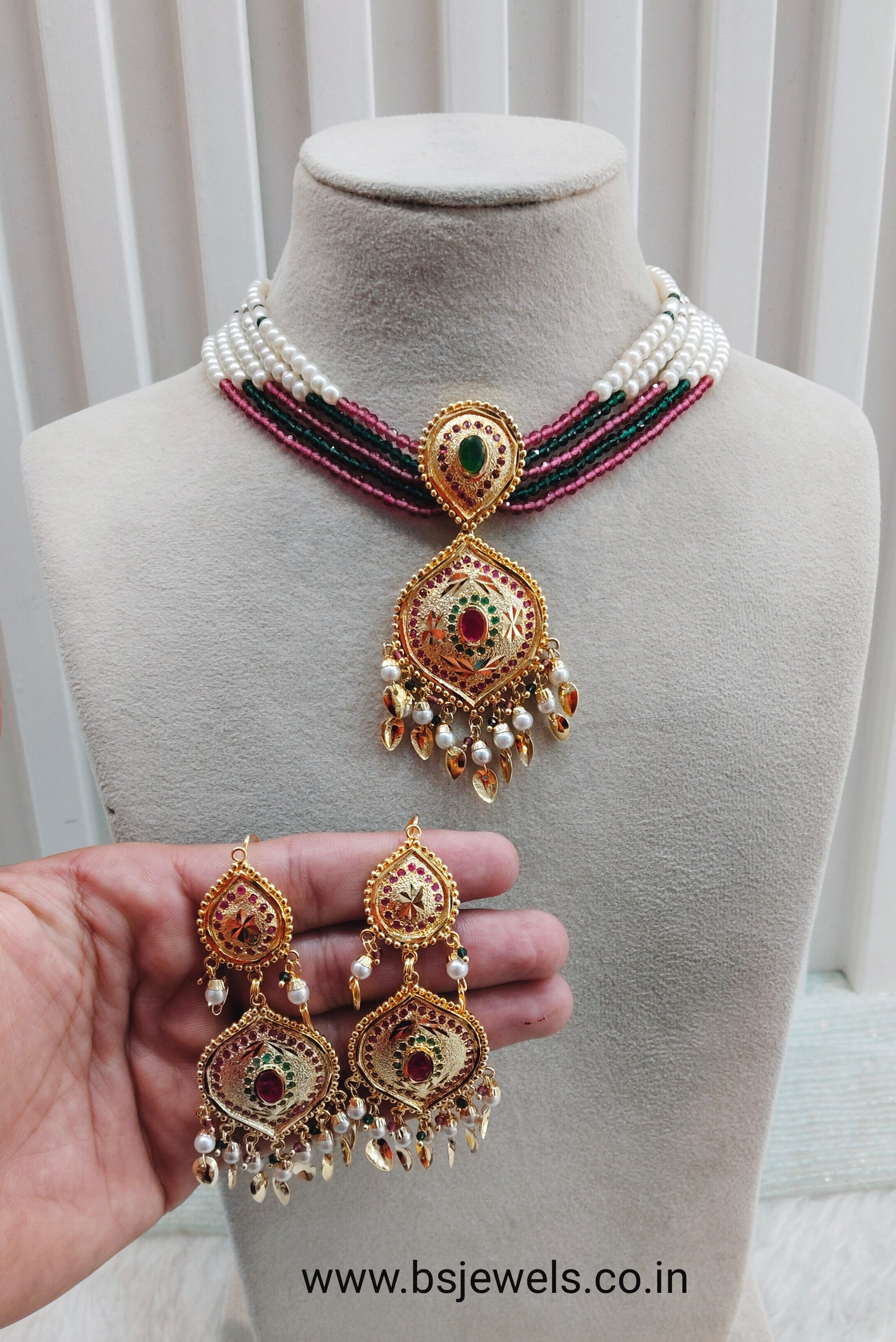 Ruby Green Gold Jadau Punjabi Style Necklace Jewellery Smith Set