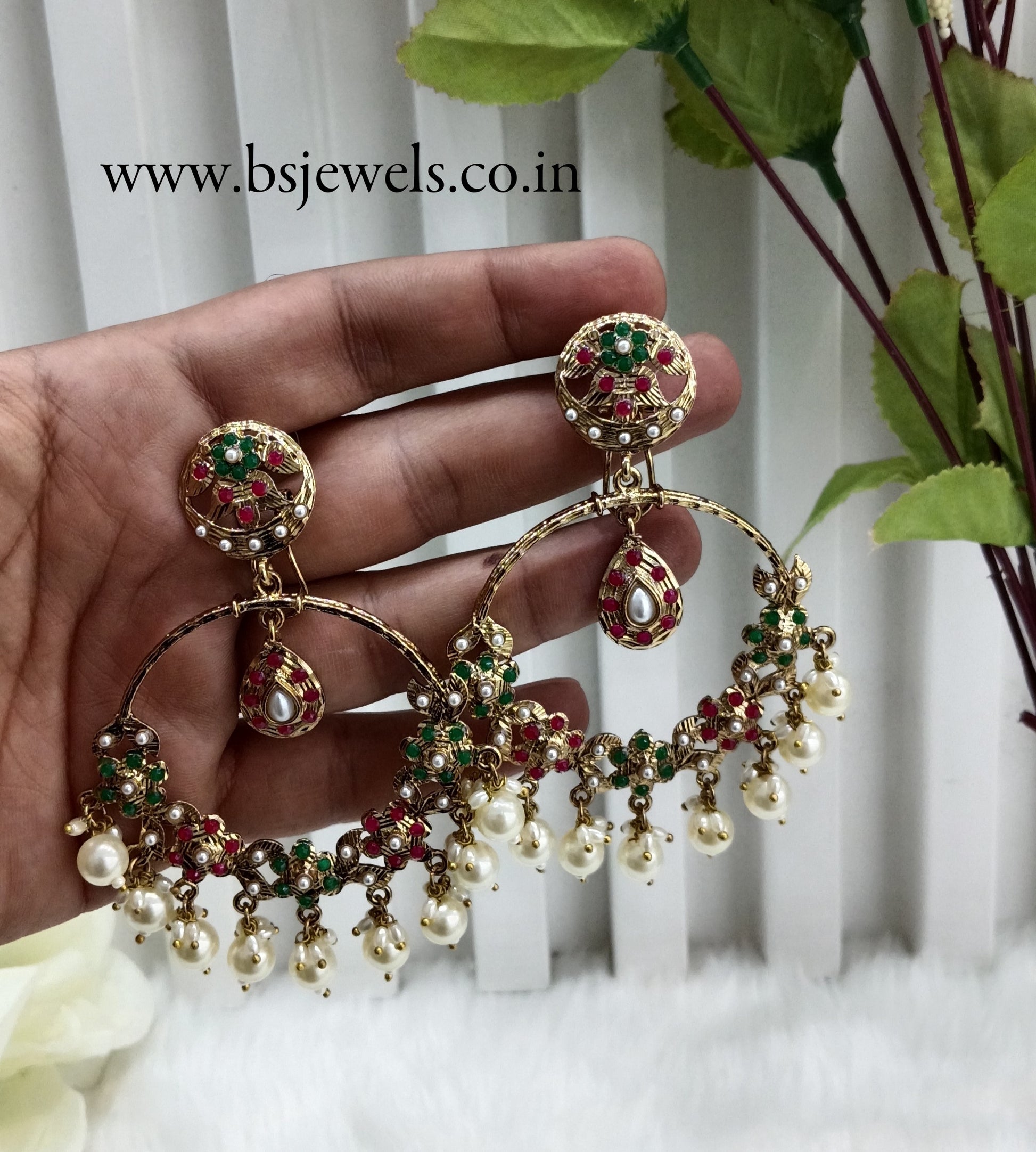 Ruby Green Gold Kundan Bollywood Pargat Earrings