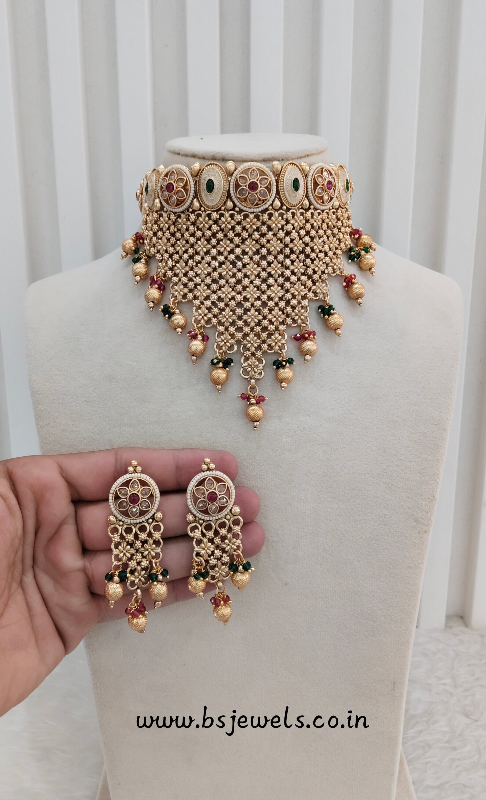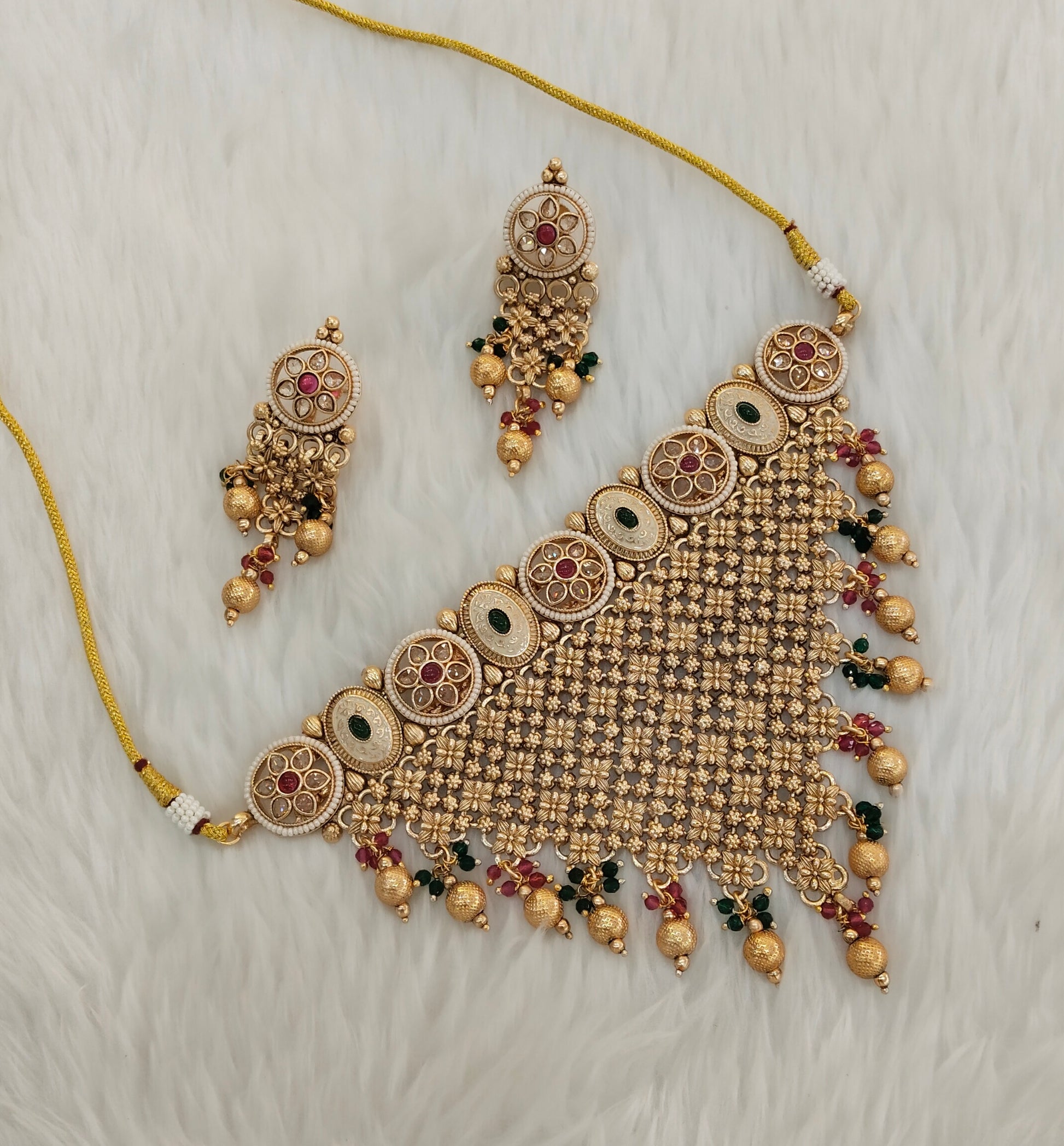 * Gold Finish Polki Choker Set with earrings as shown in the pic.