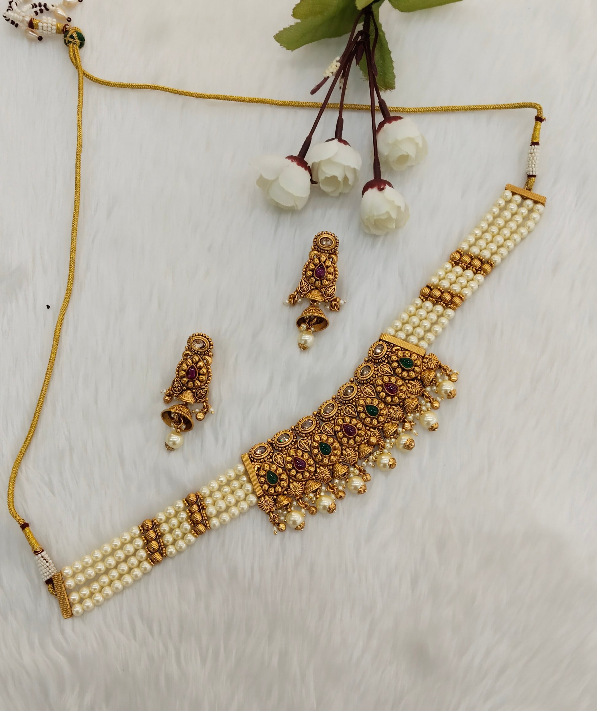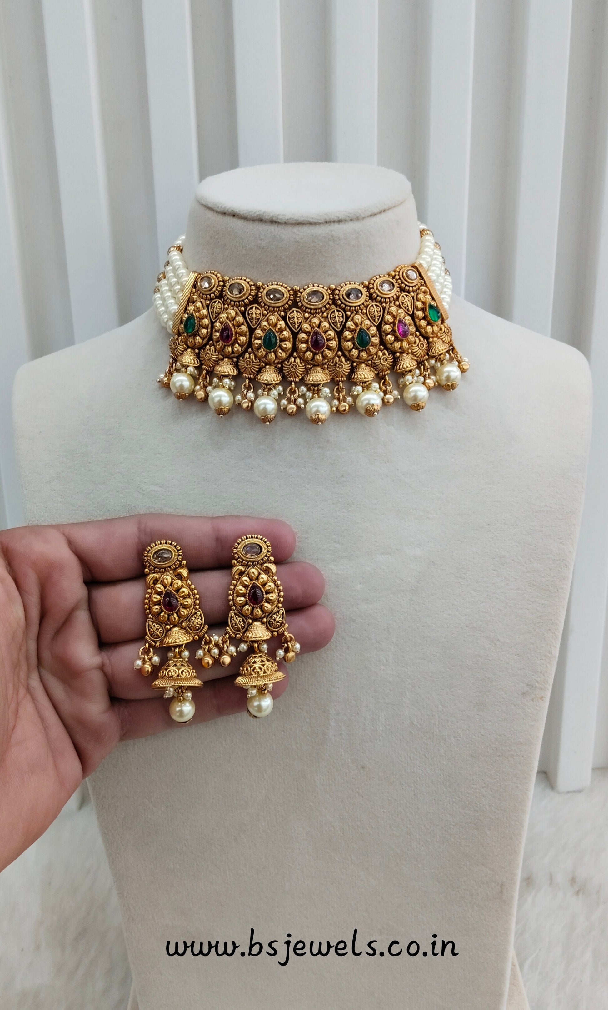 * Gold Finish Polki Choker Set with earrings as shown in the pic.