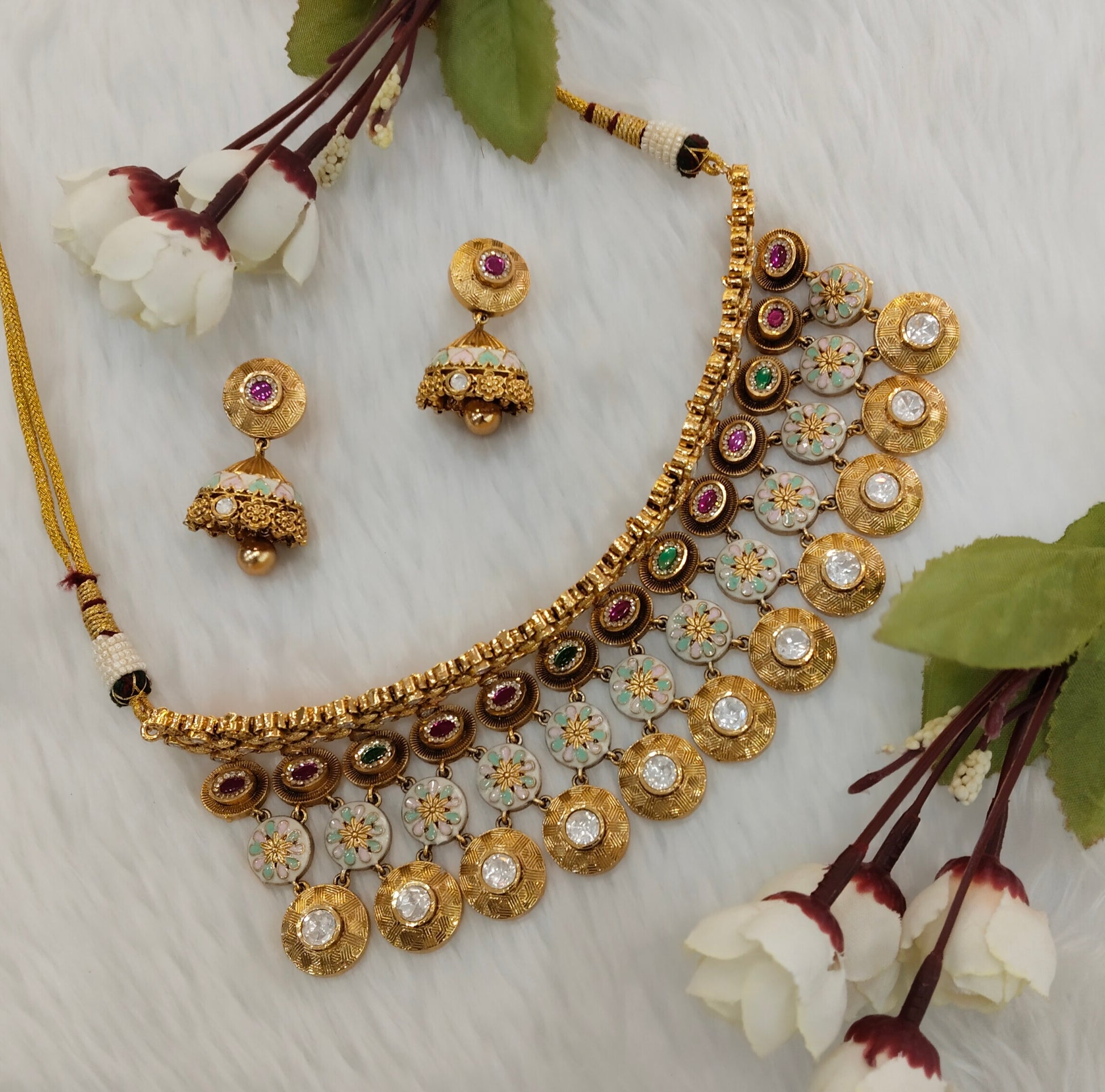 Ruby Green Gold Polki Choker Jewellery Kishu Set
