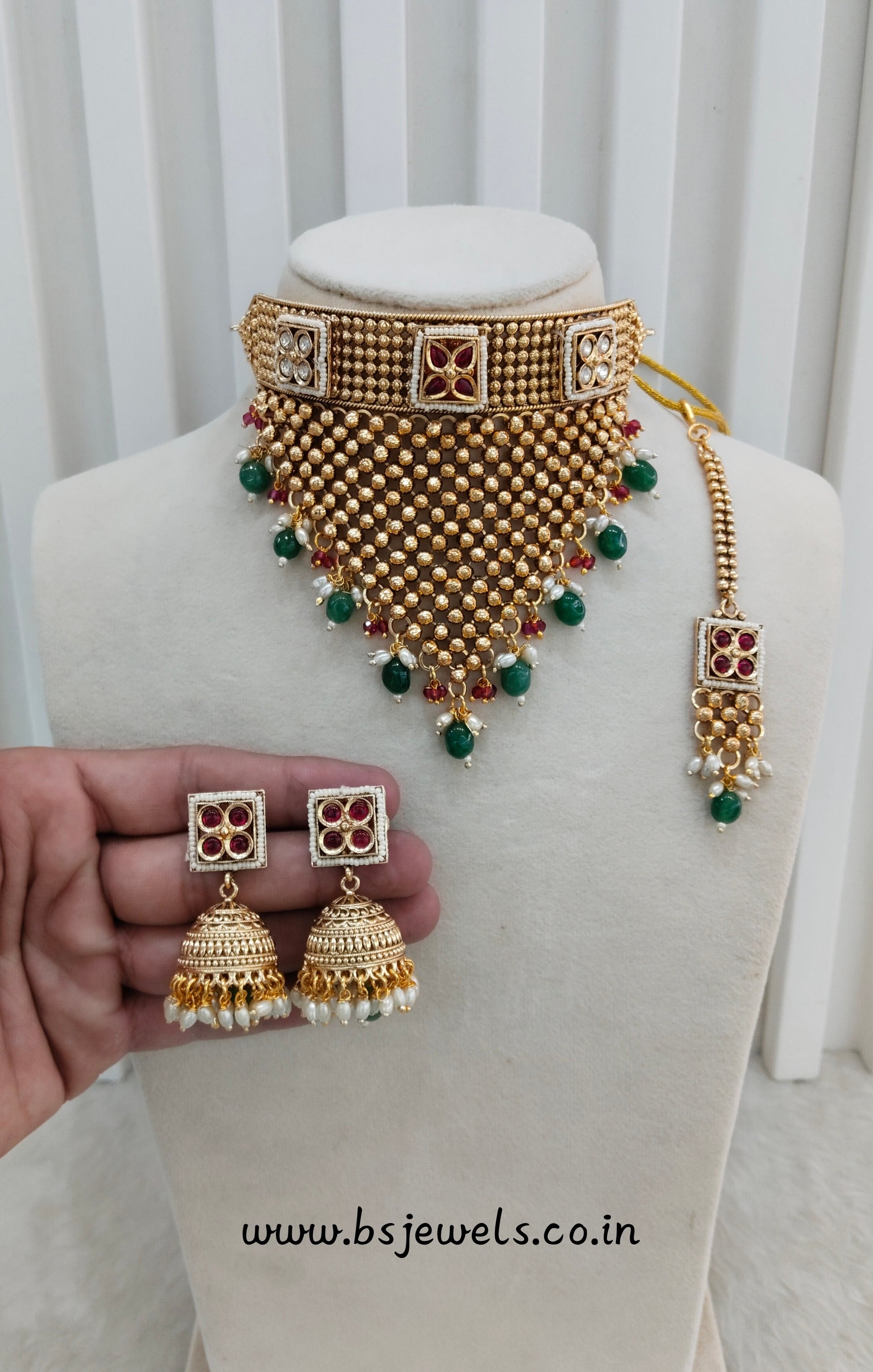 * Gold Finish Polki Choker Set with earrings as shown in the pic.