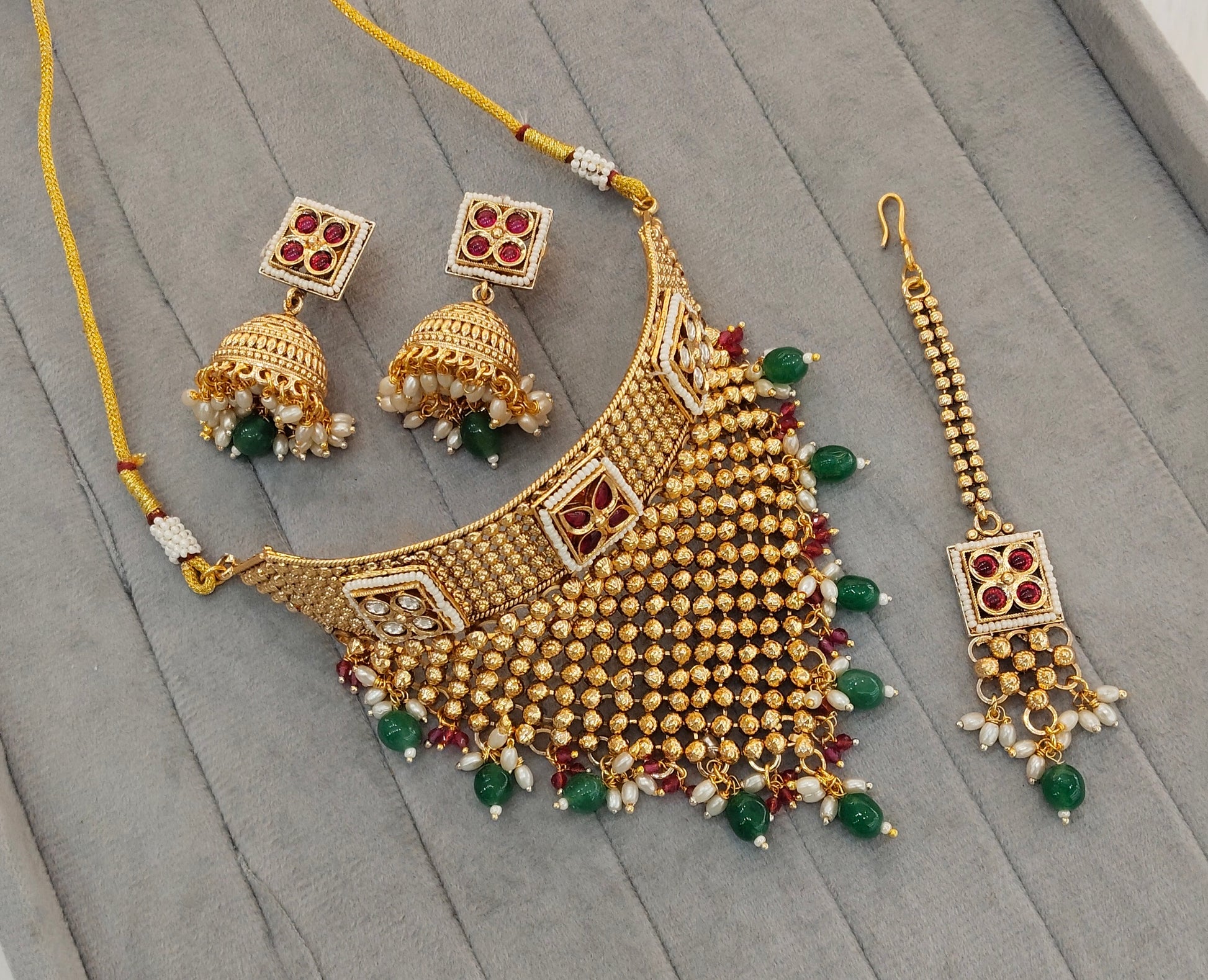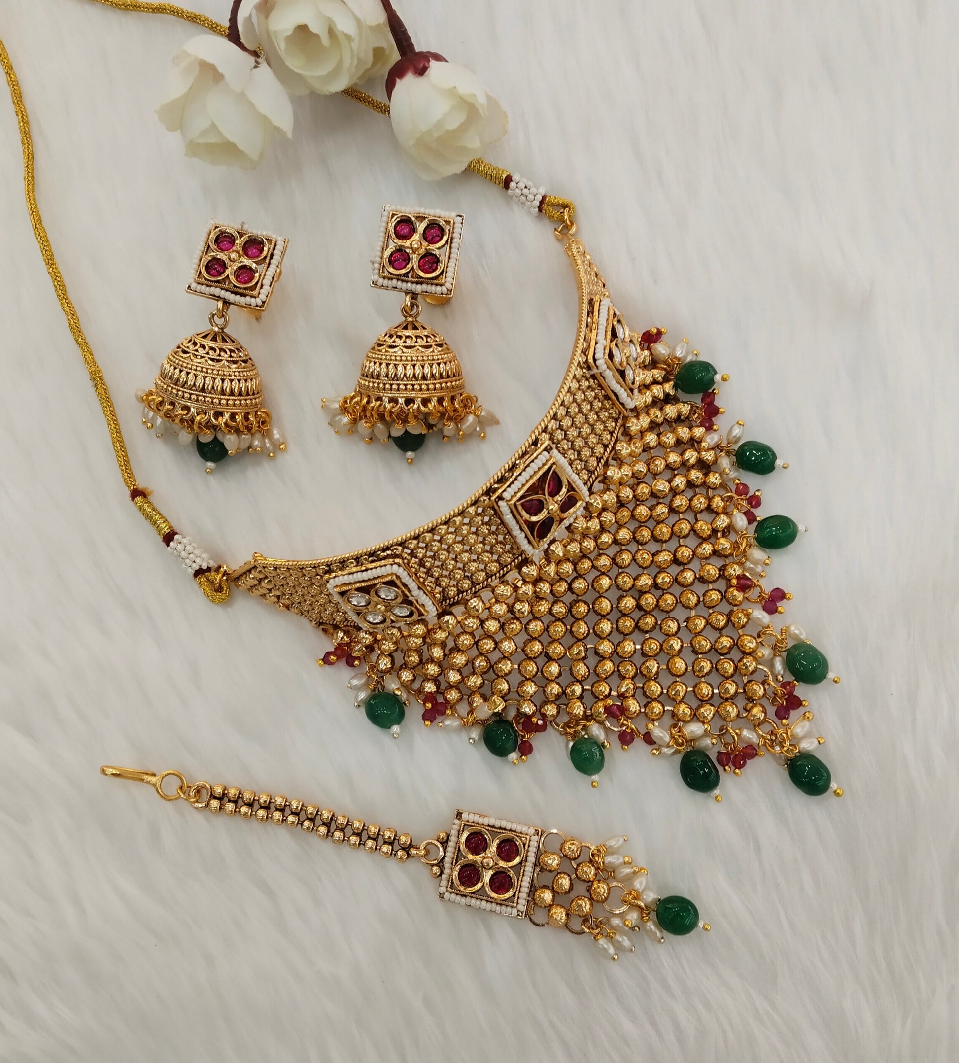 Ruby Green Gold Polki Choker Jewellery Kishu Set