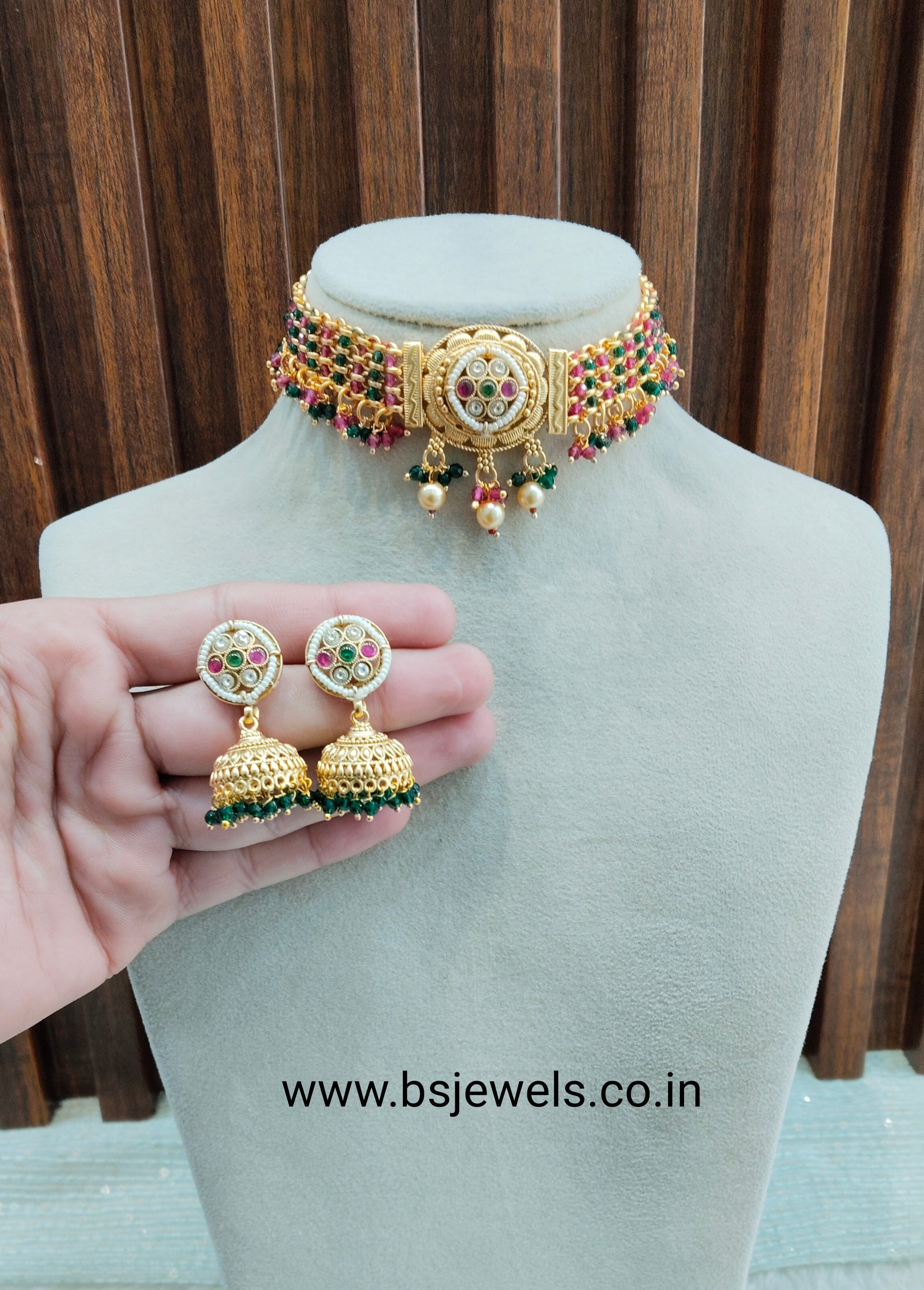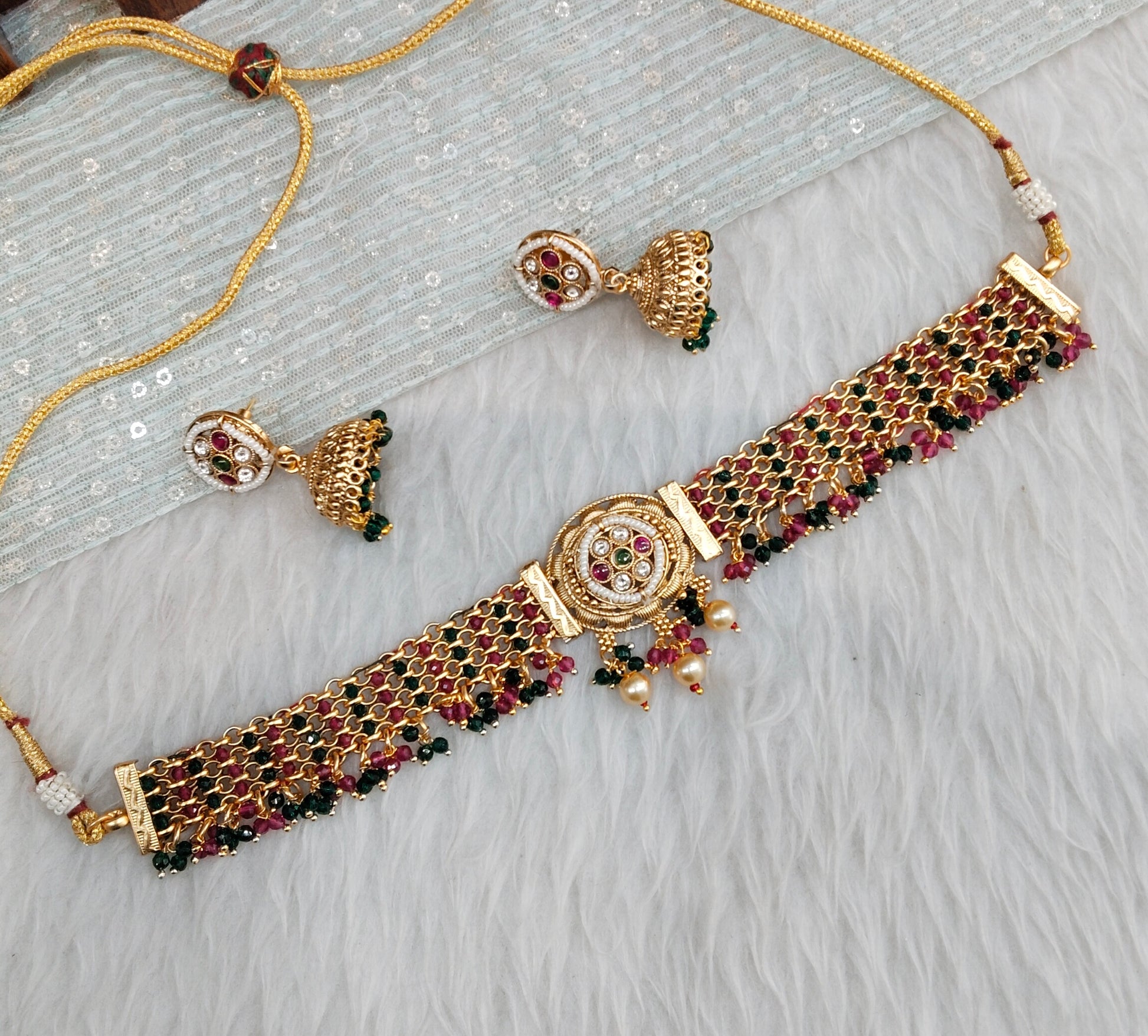 Ruby Green Gold Polki Choker Jewellery Smile Set