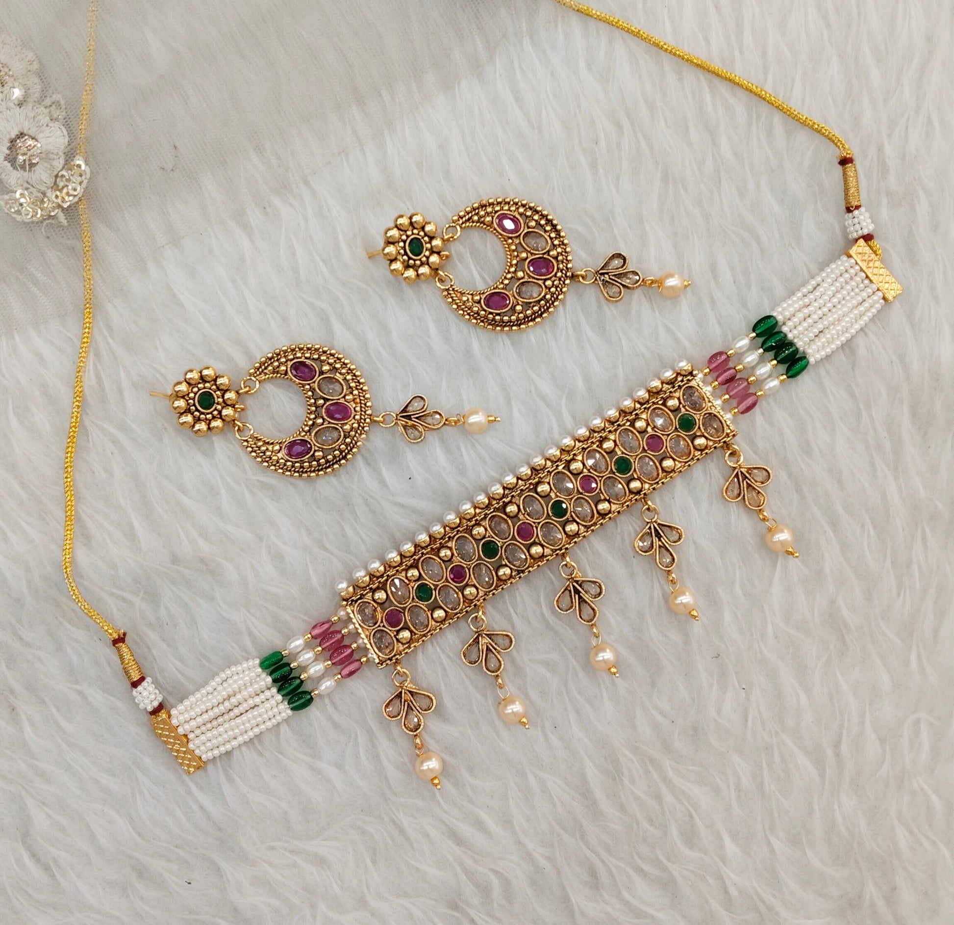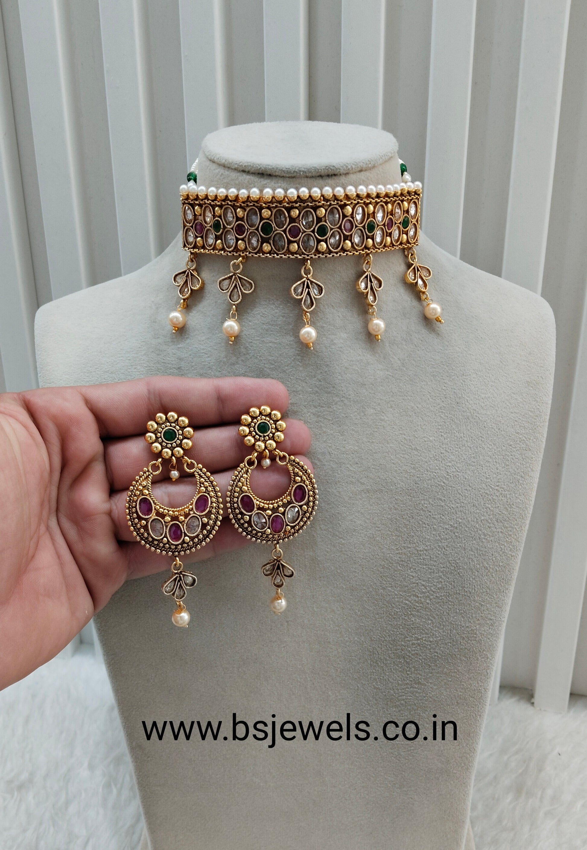 * Gold Finish Polki Choker Set with earrings as shown in the pic.