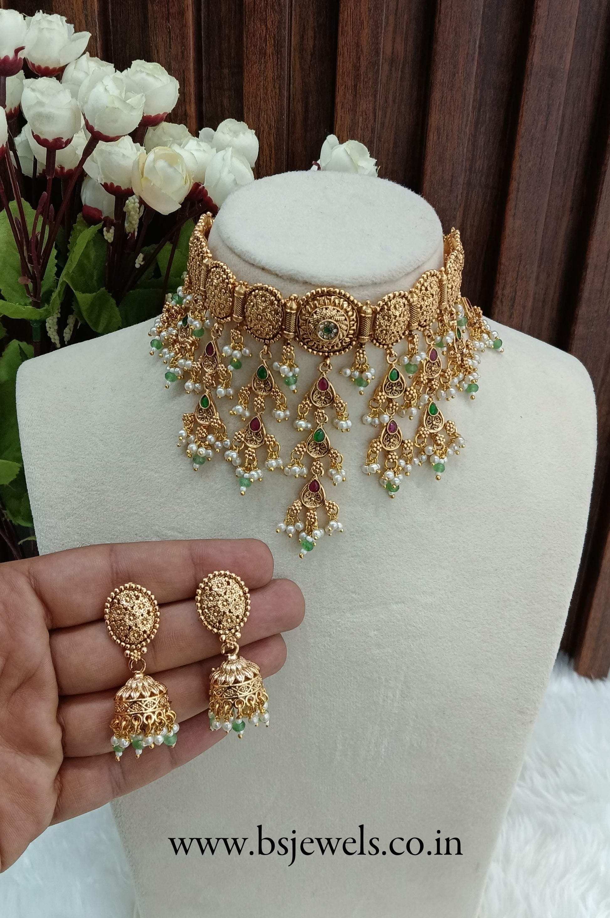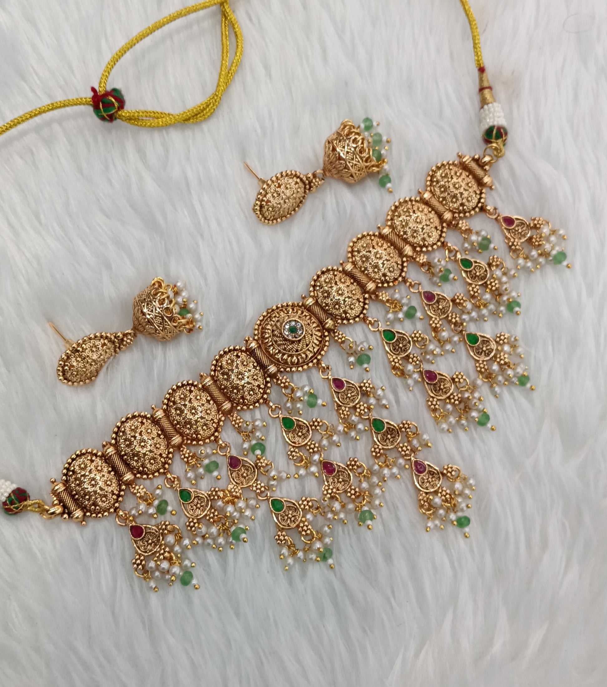 * Gold Finish Polki Choker Set with earrings as shown in the pic.