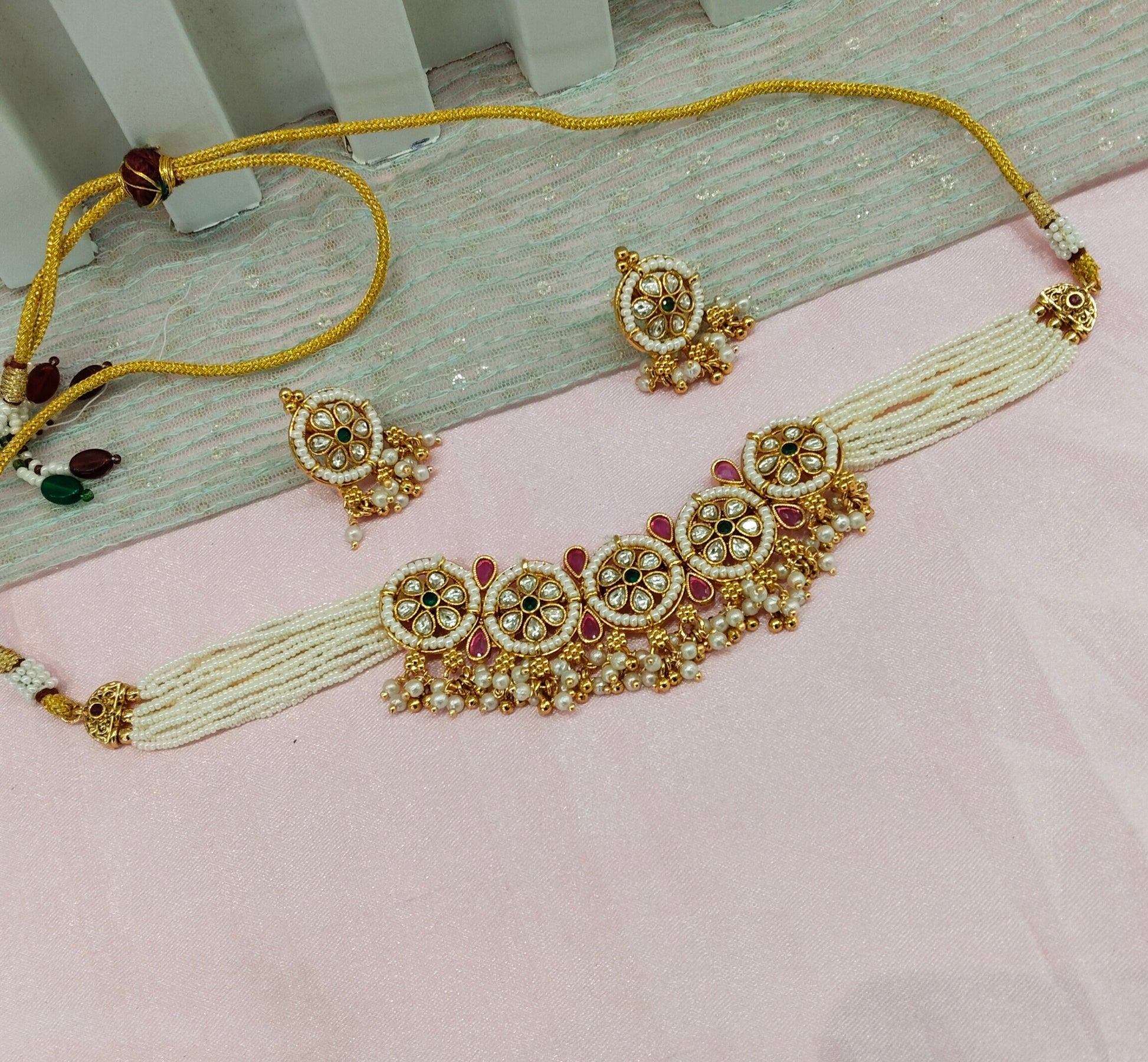* Gold Finish Polki Choker Necklace Set with earrings as shown in the pic.