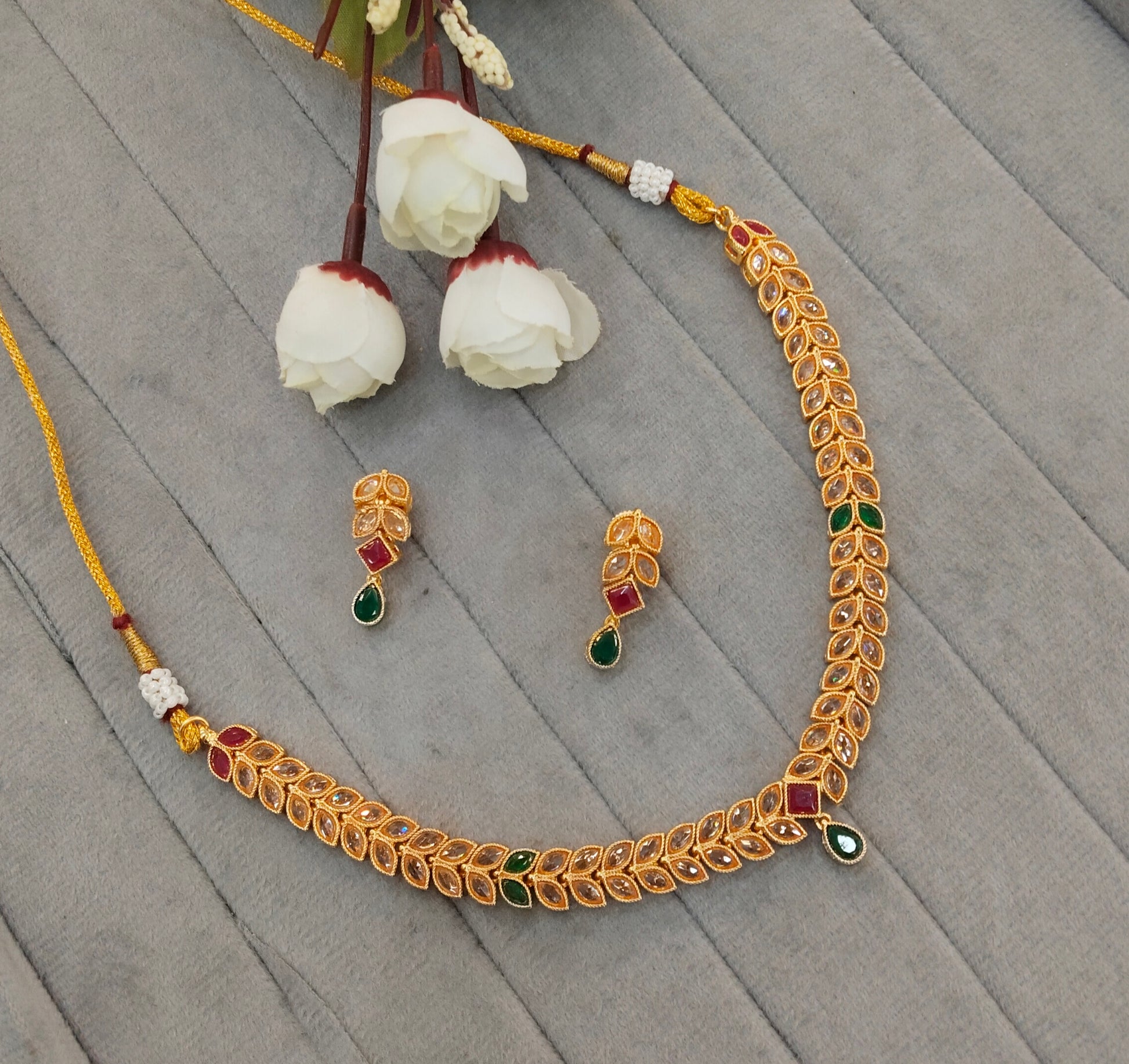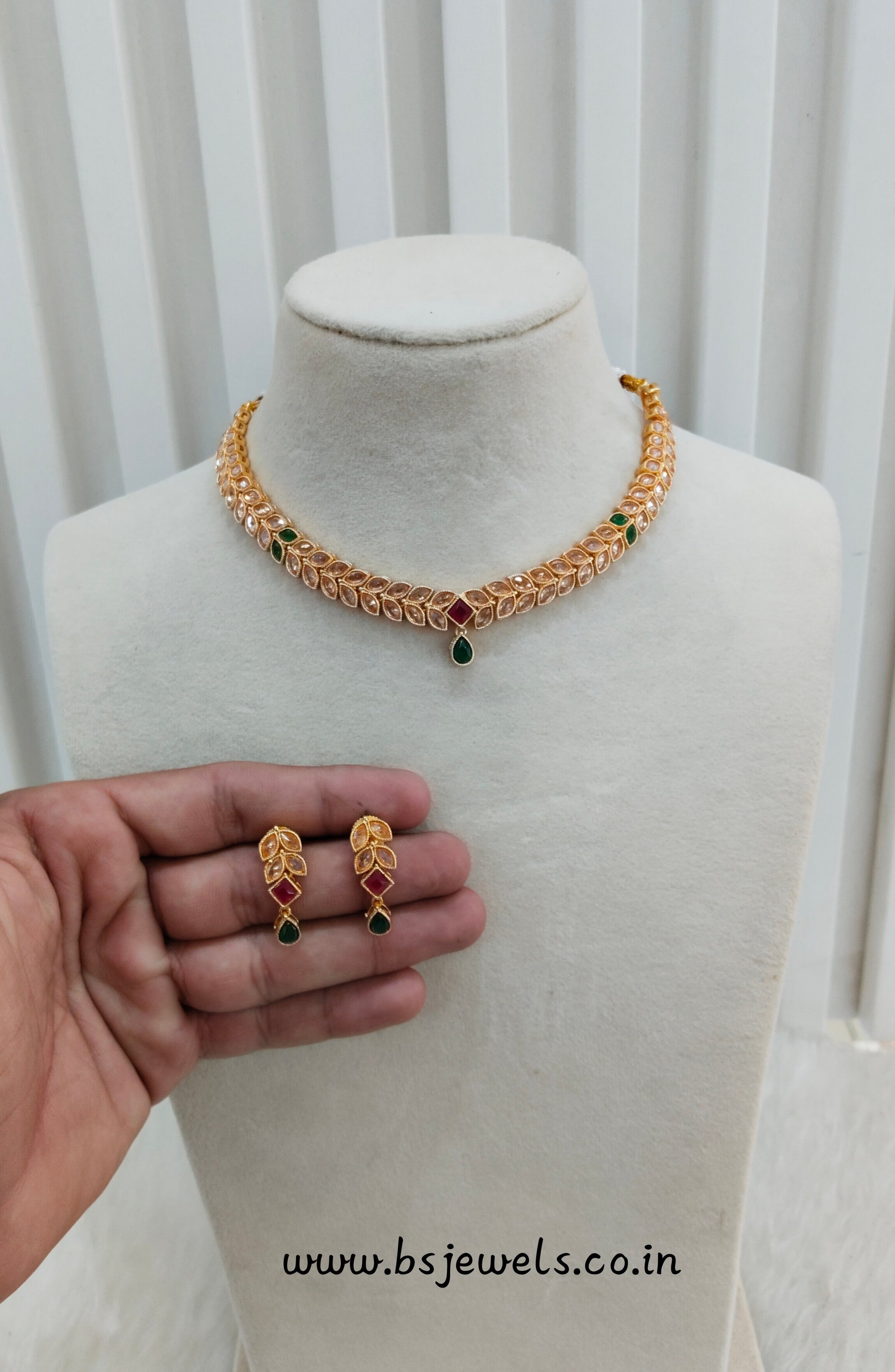 * Gold Finish Polki Necklace Set with earrings as shown in the pic.