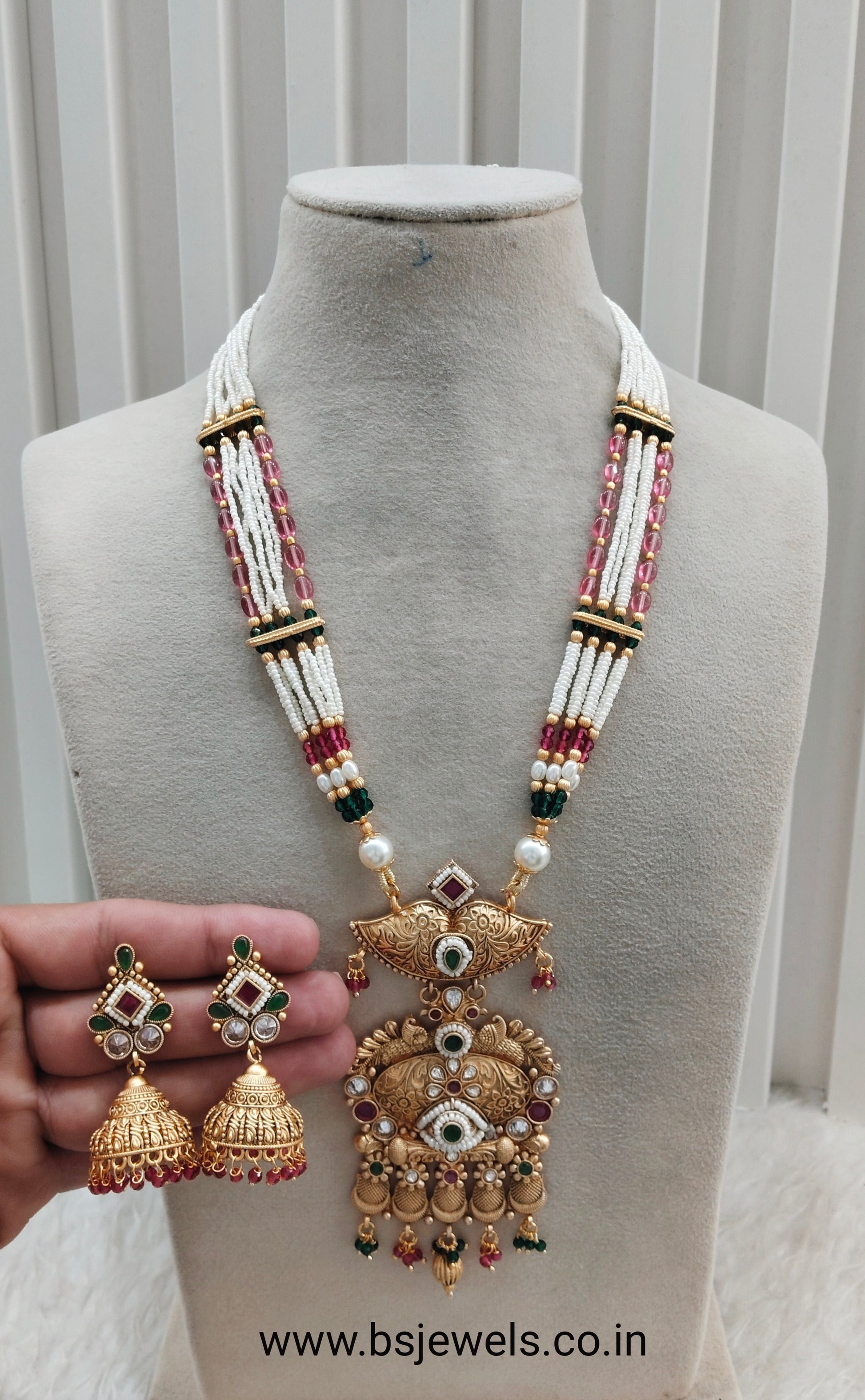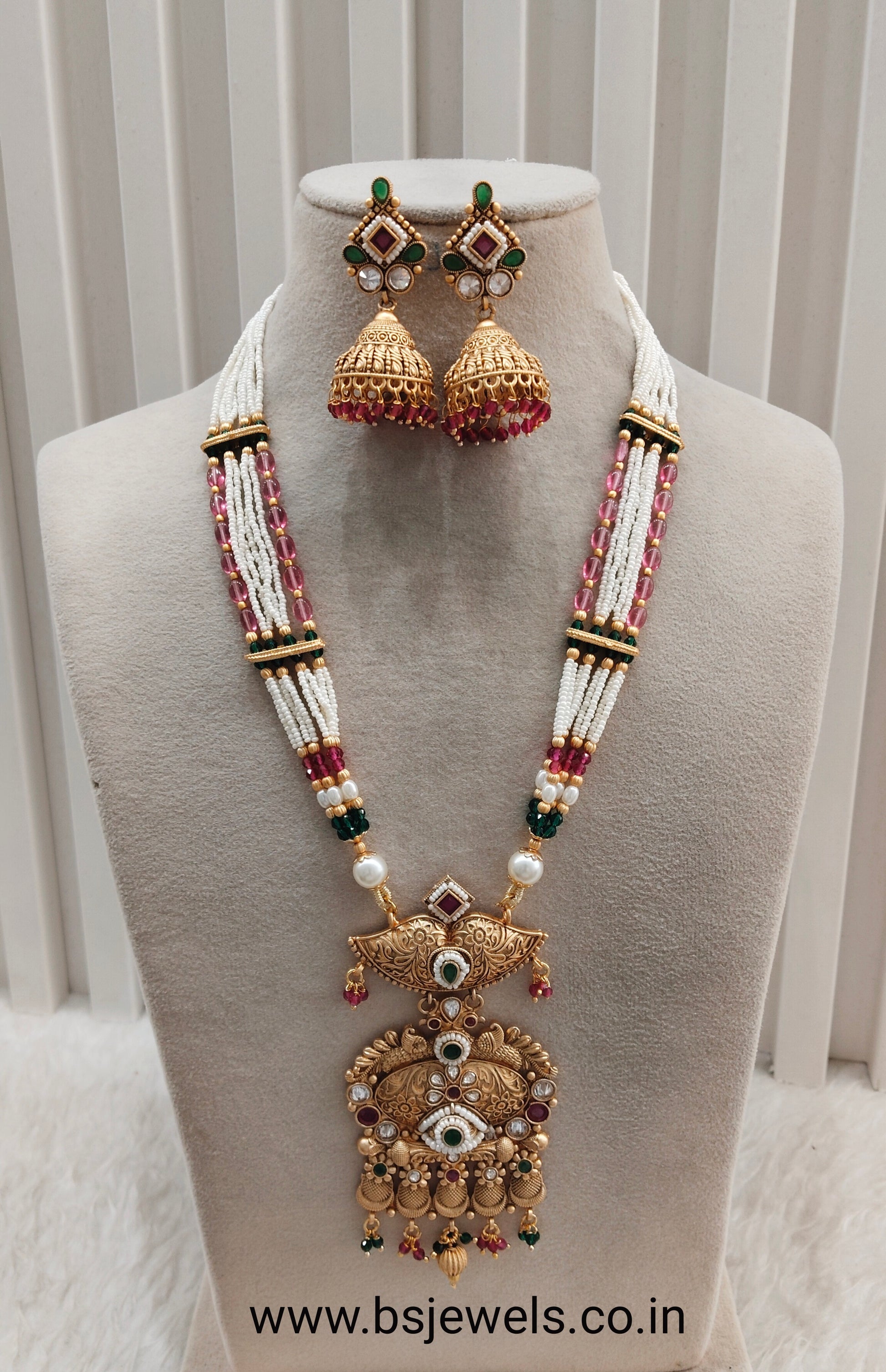 Ruby Green Gold Polki Long Rani Haar Necklace Jewellery Inder Set