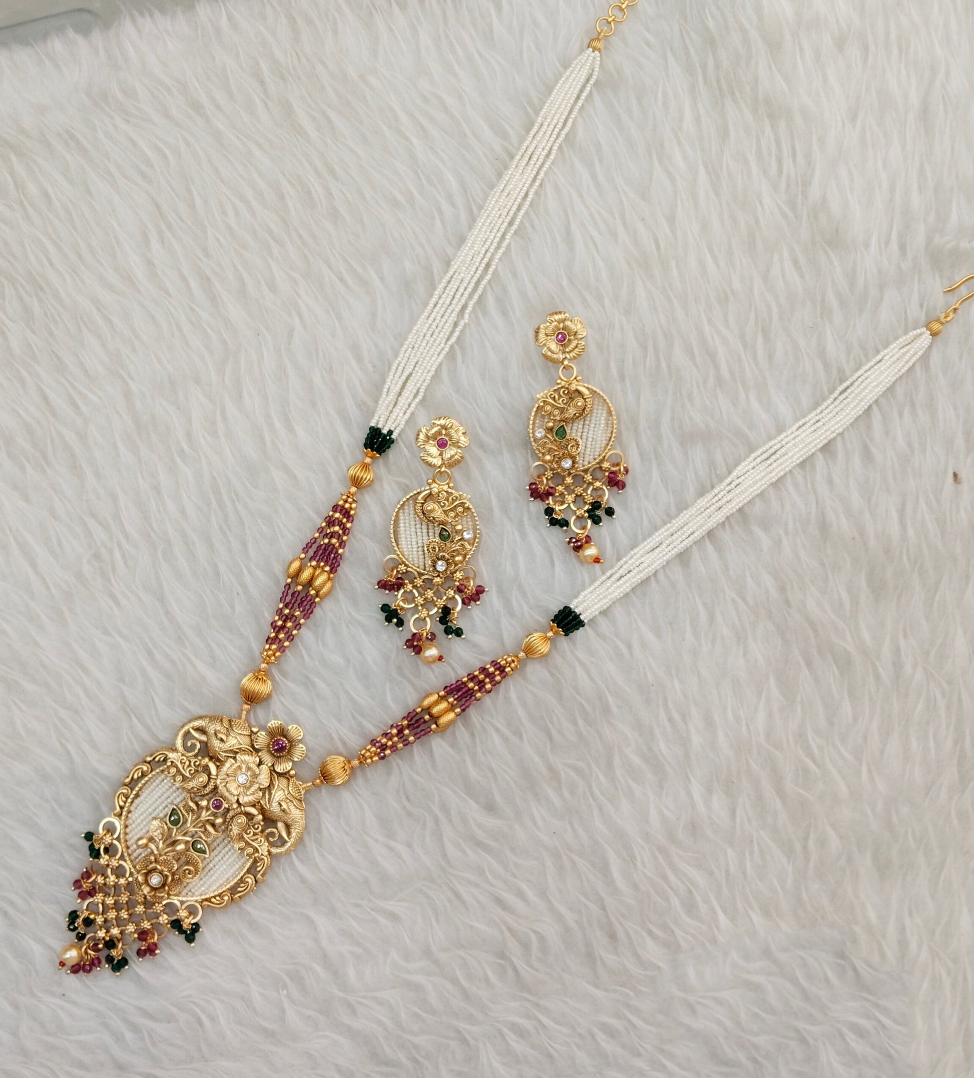 Ruby Green Gold Polki Long Rani Haar Necklace Jewellery Inder Set