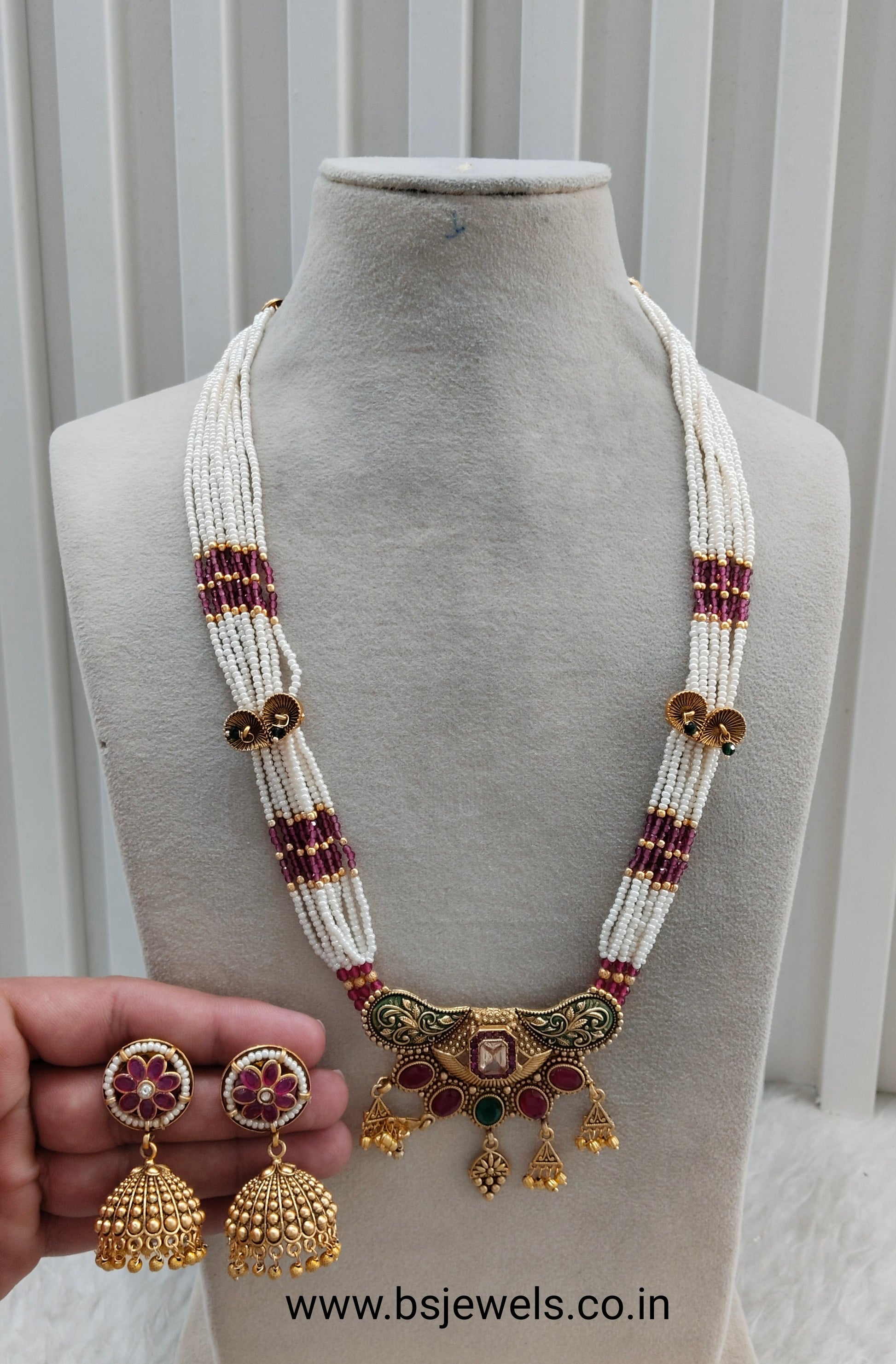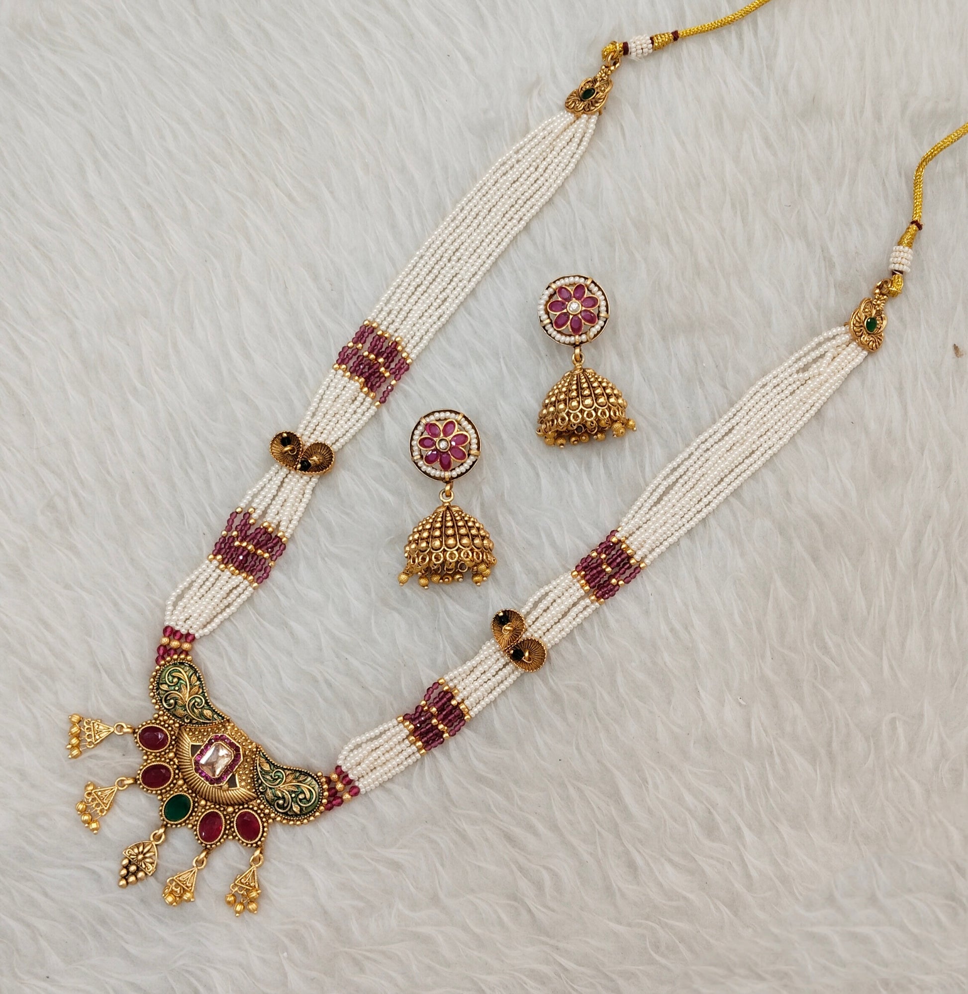 Ruby Green Gold Polki Long Rani Haar Necklace Jewellery Inder Set