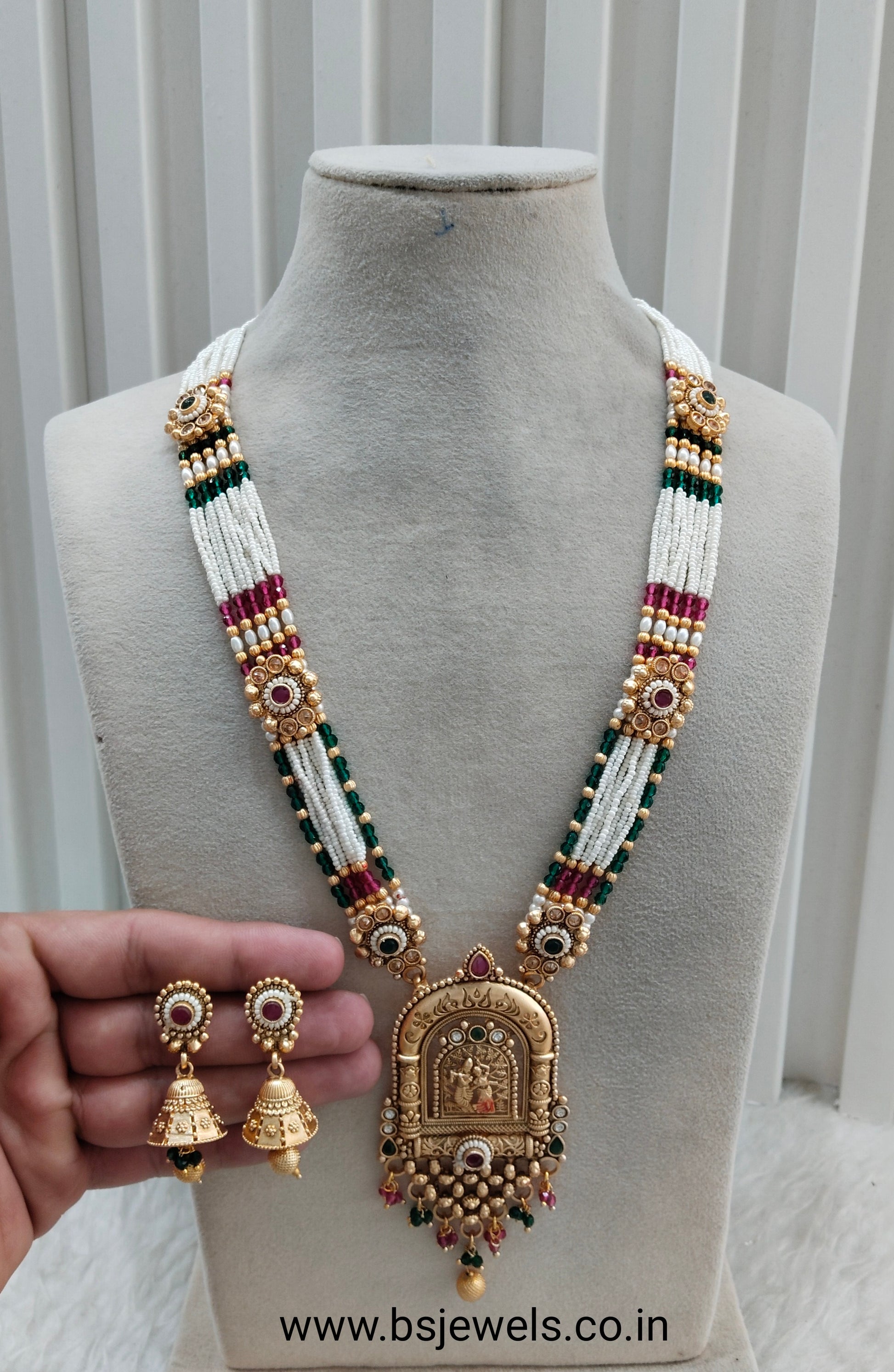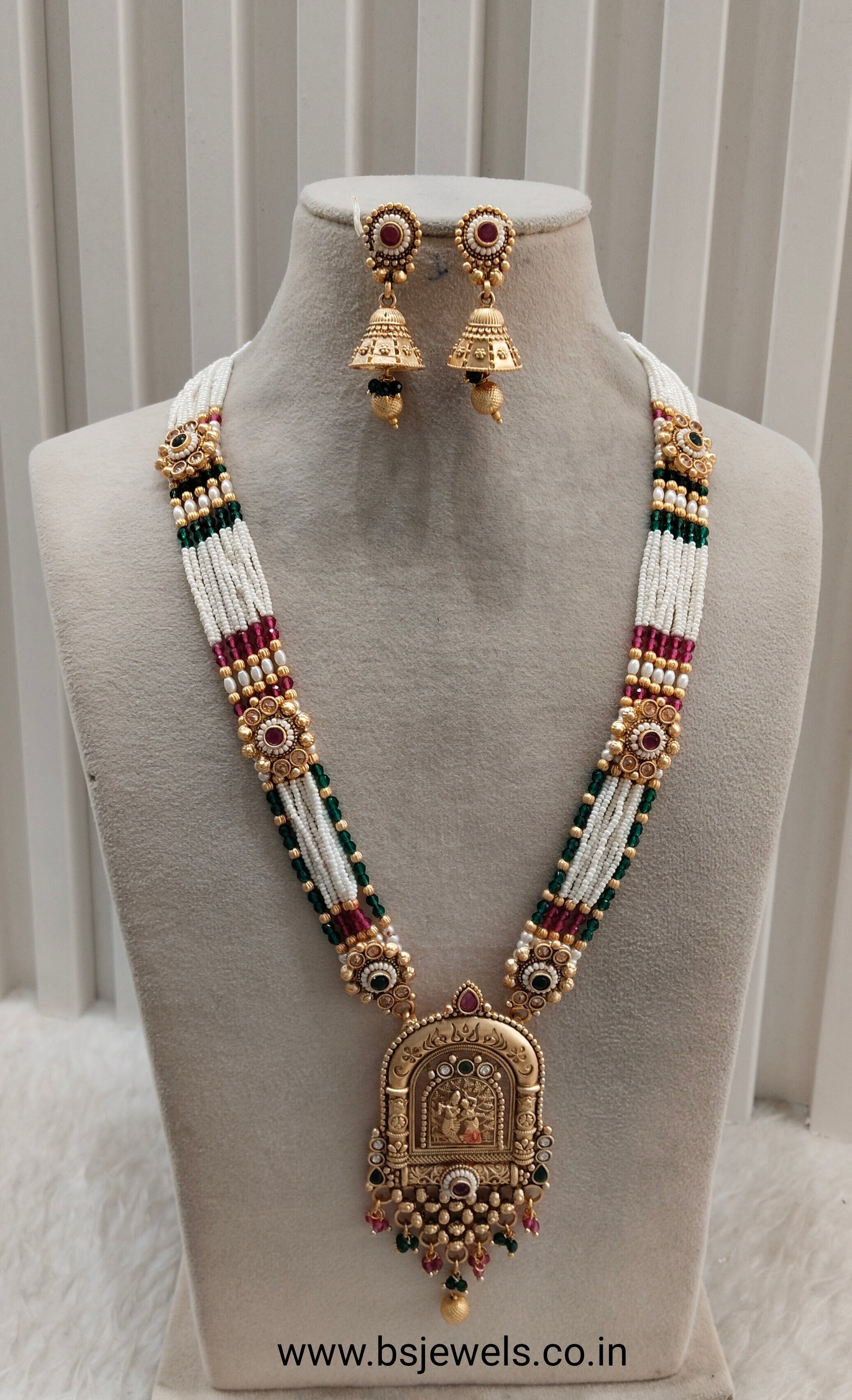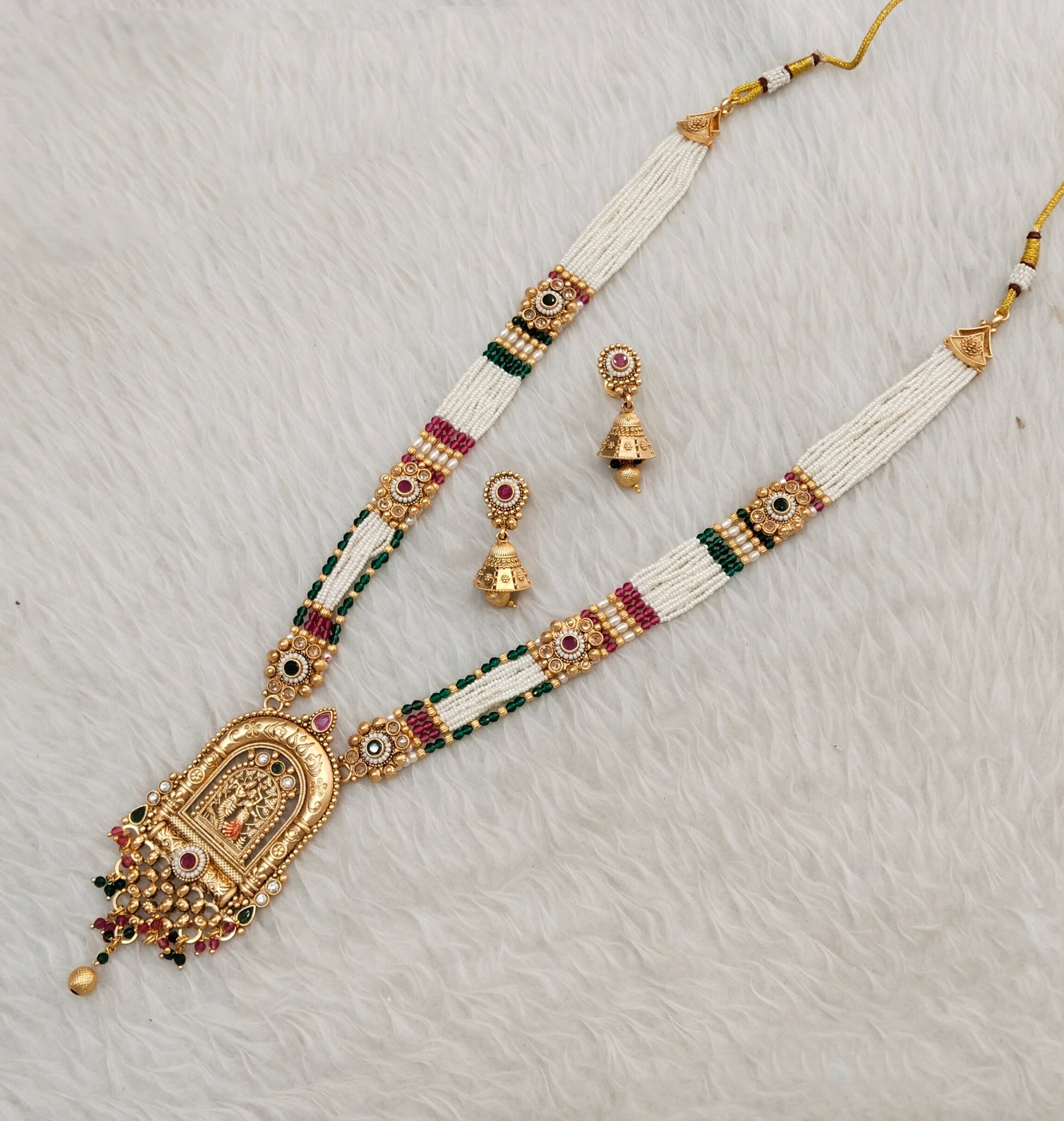 Ruby Green Gold Polki Long Rani Haar Necklace Jewellery Inder Set