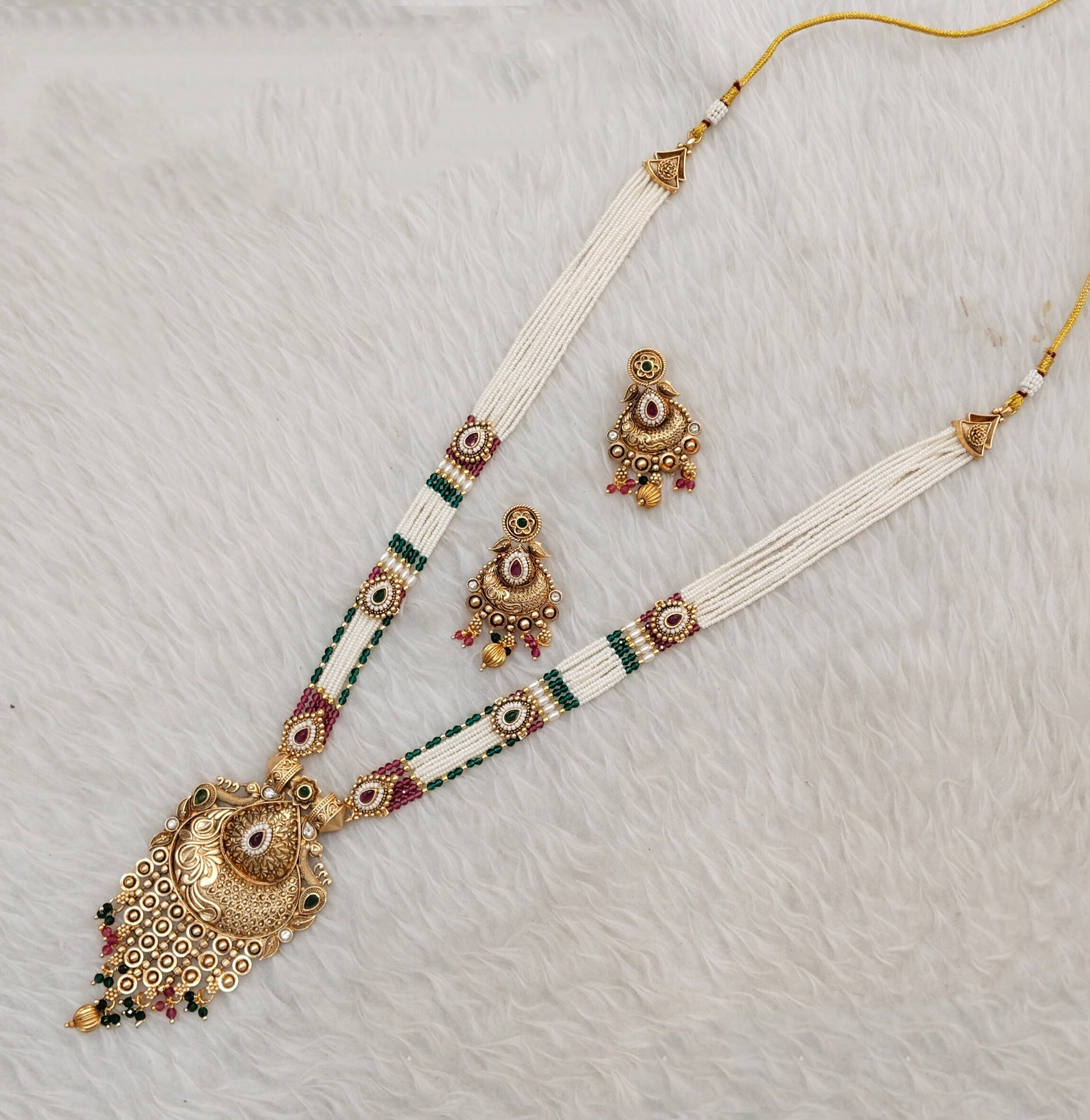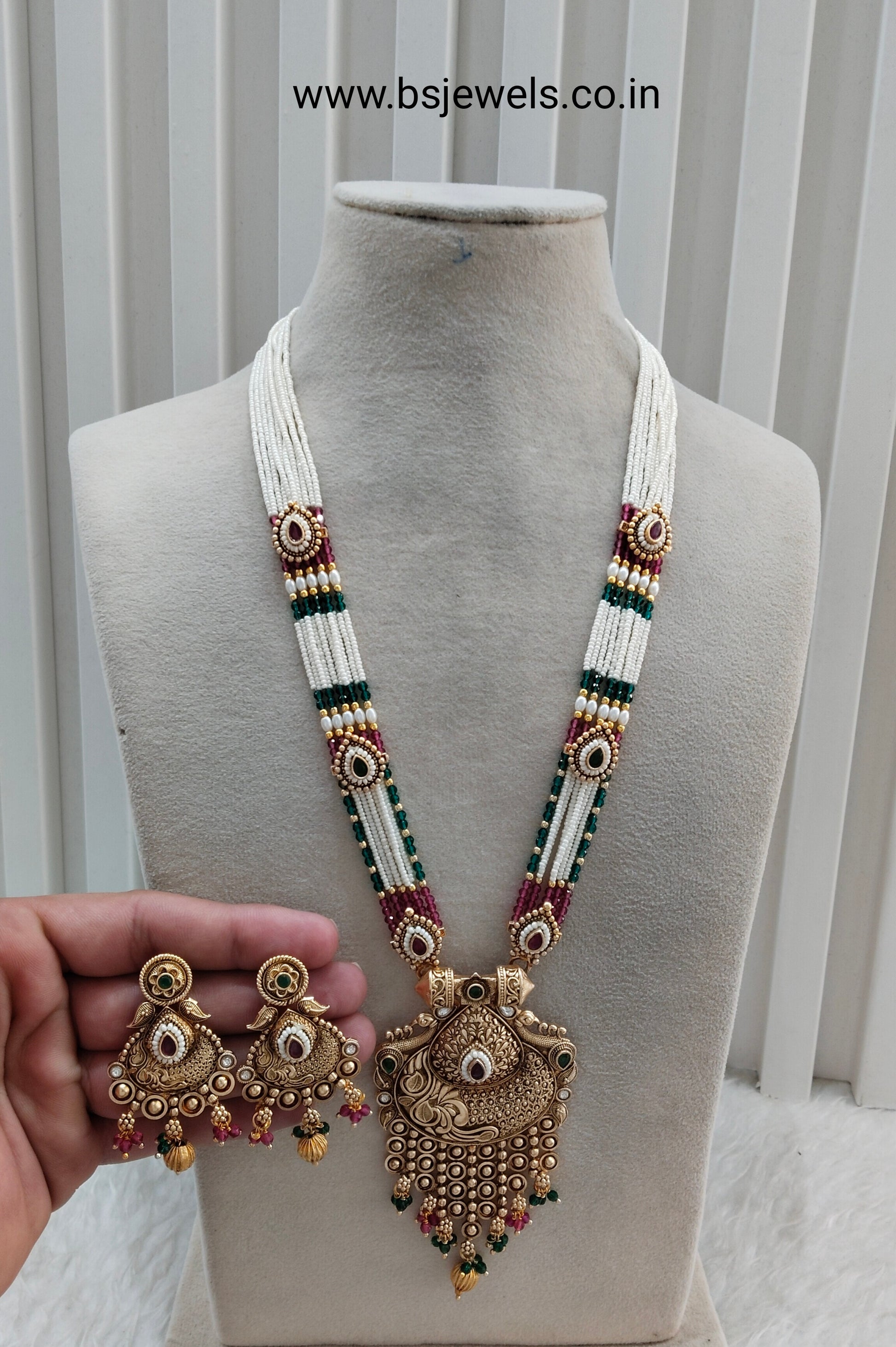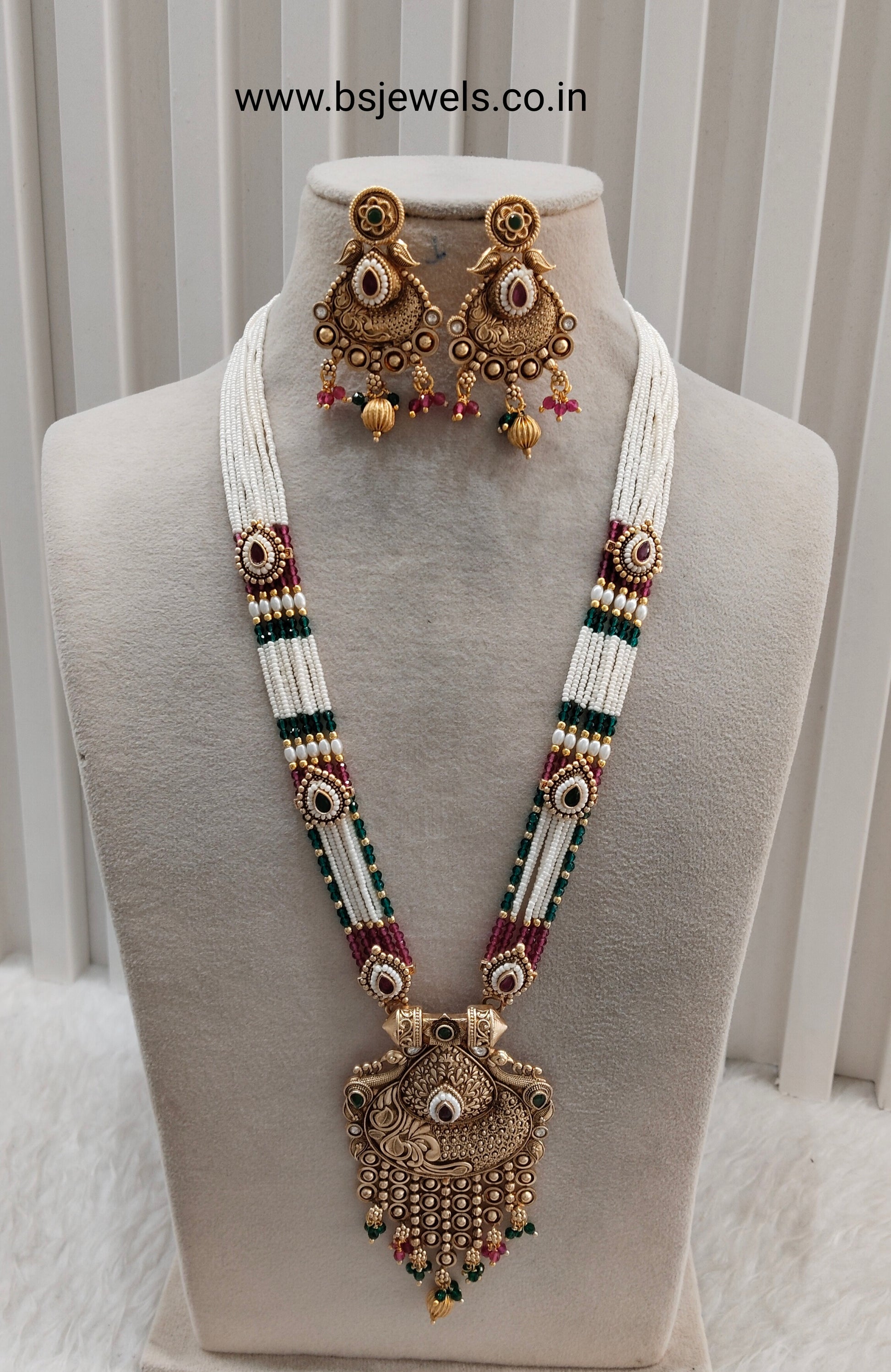 Ruby Green Gold Polki Long Rani Haar Necklace Jewellery Inder Set