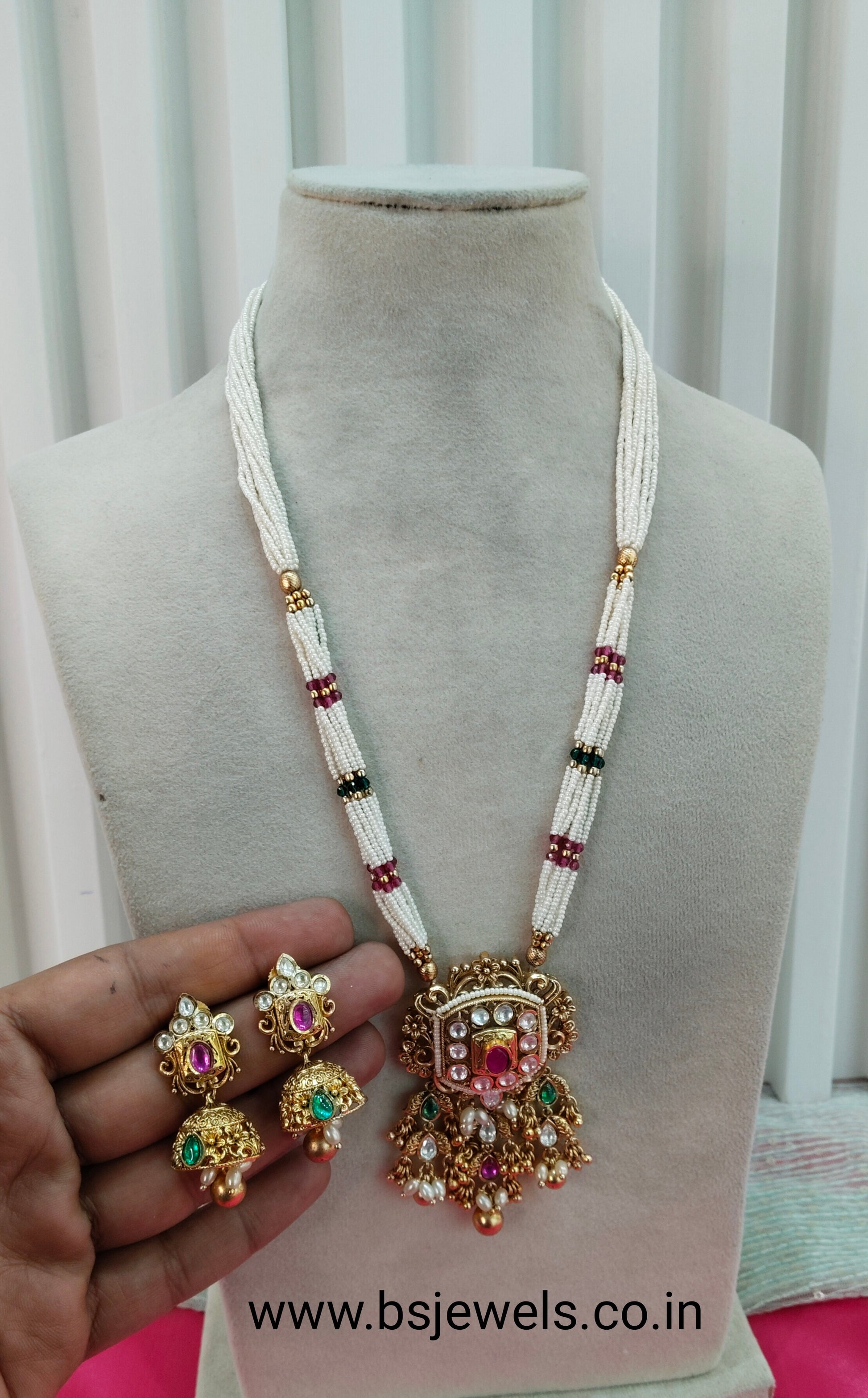 Ruby Green Gold Polki Long Rani Haar Jhumka Necklace Jewellery Set