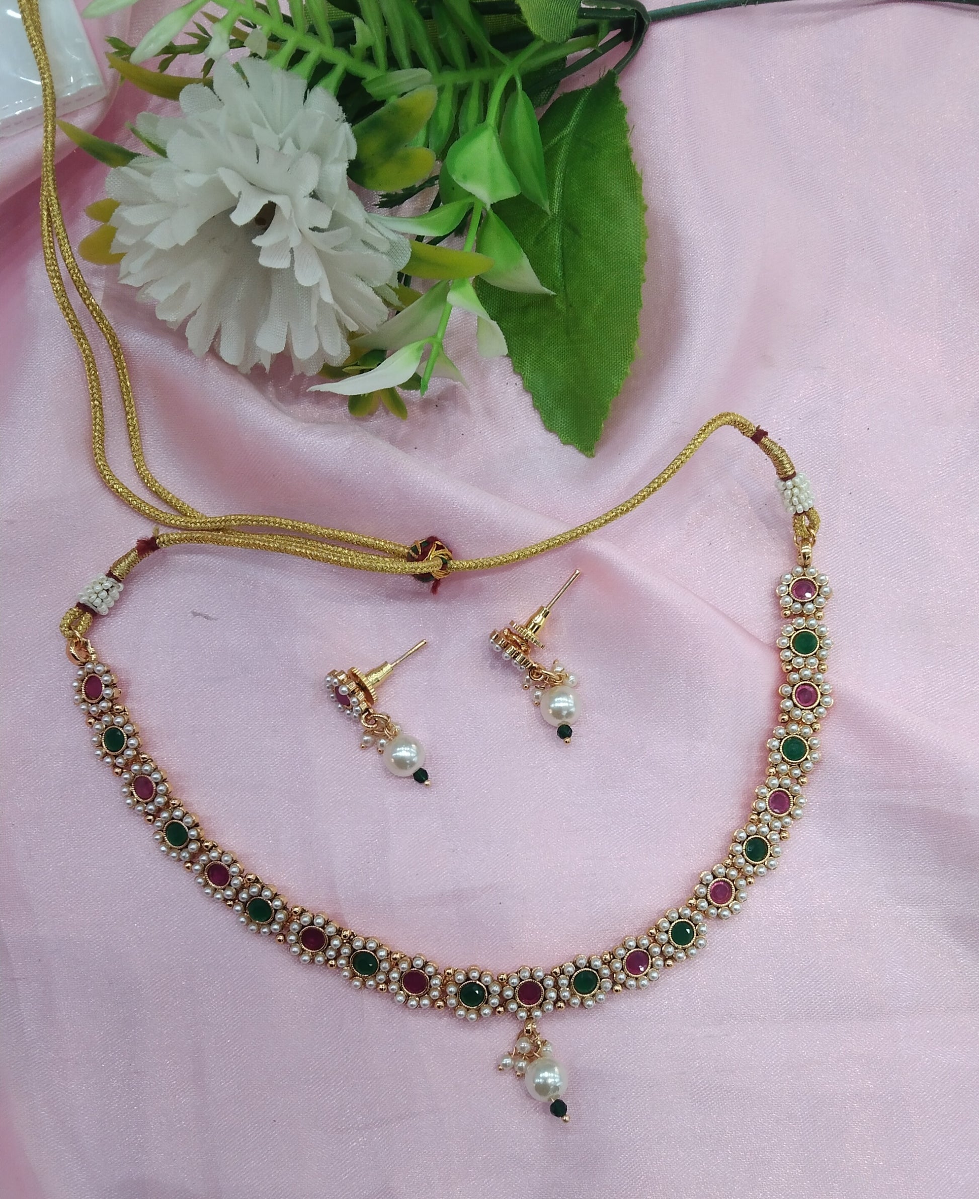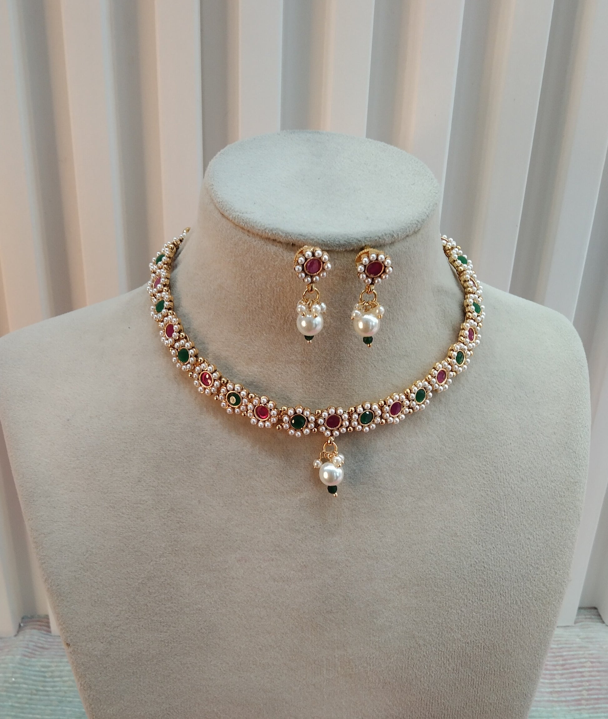 Ruby Green Gold Polki Necklace Jewellery Delta Set