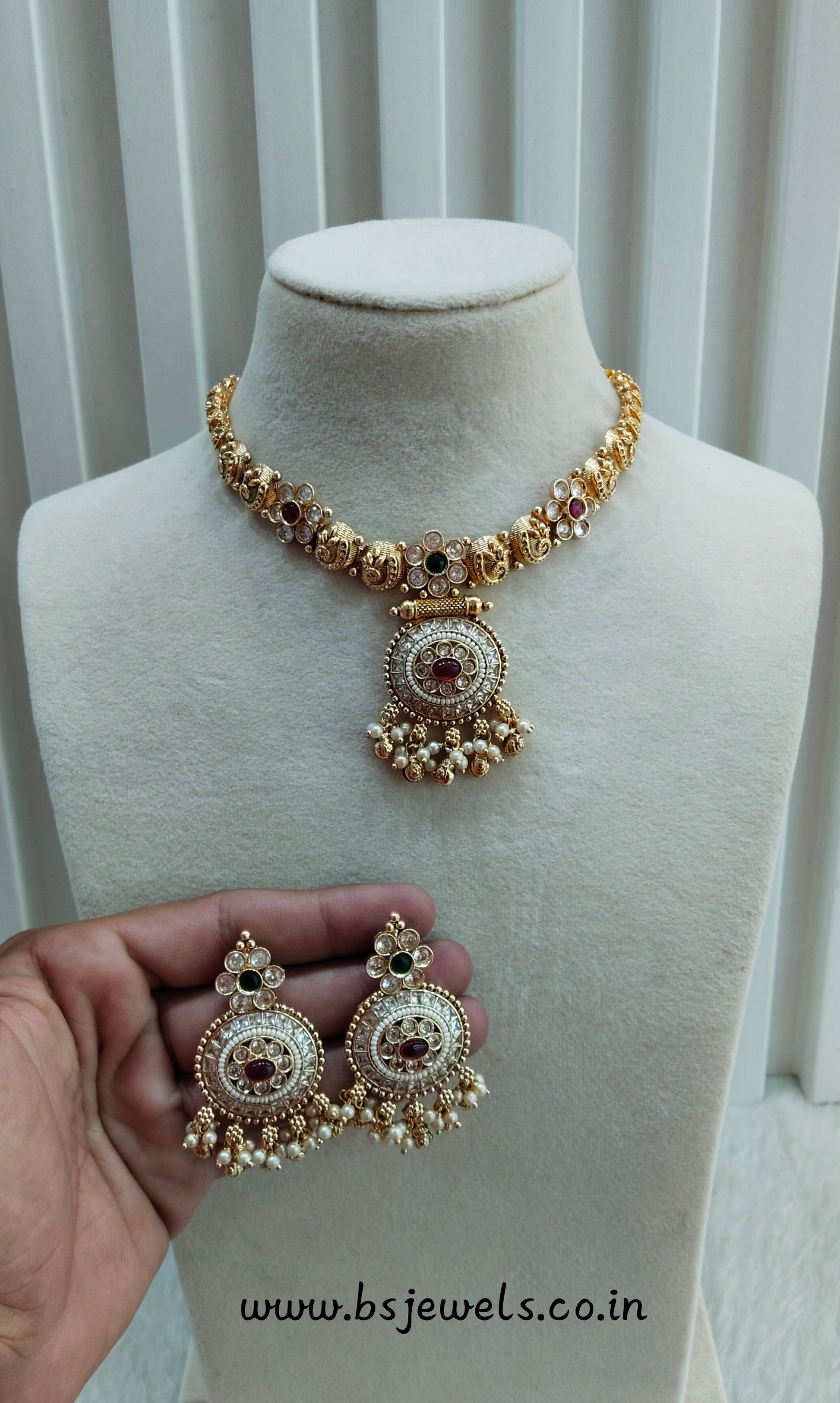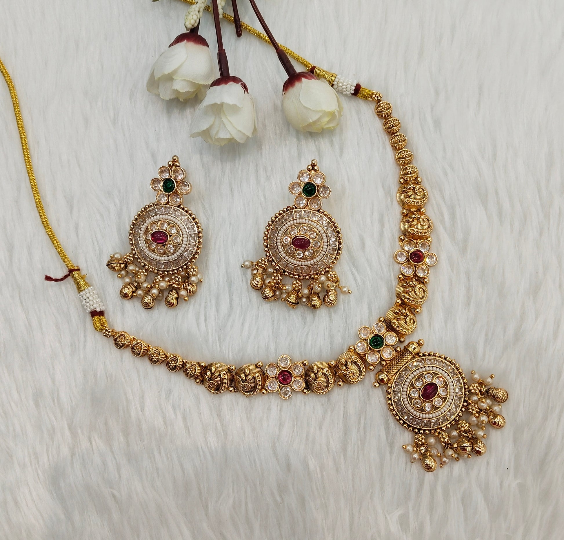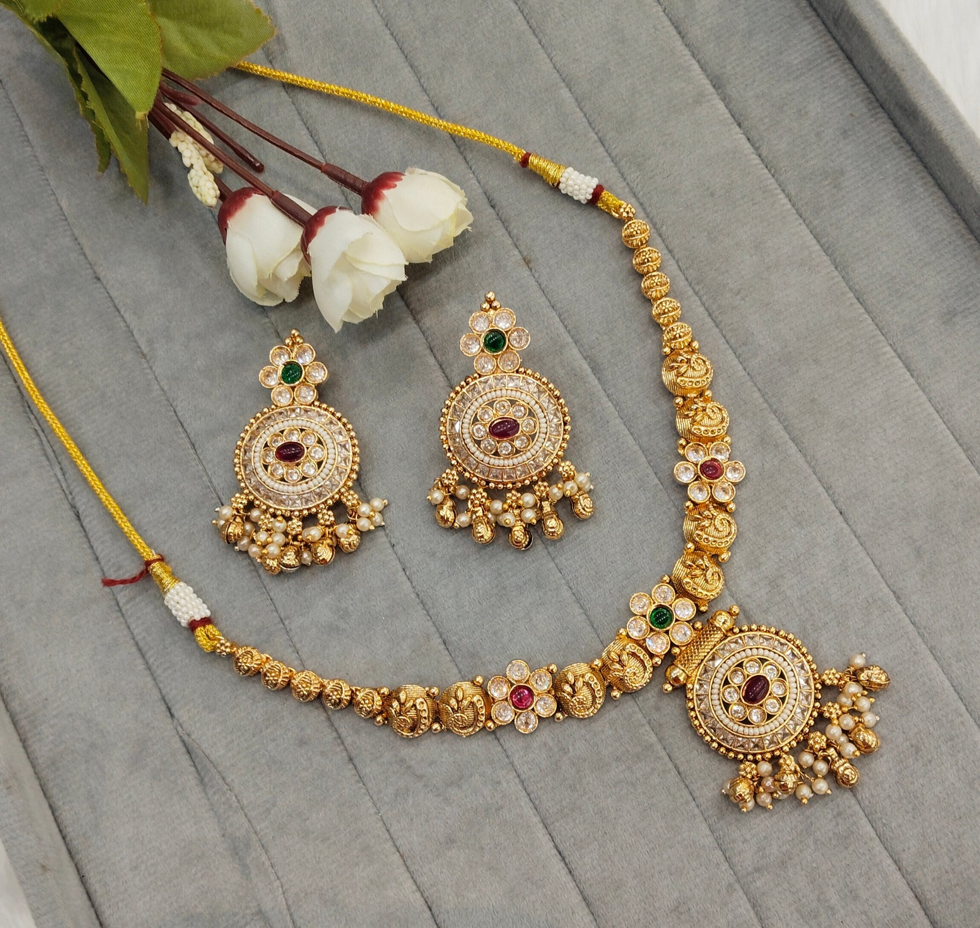 * Gold Finish Polki Necklace Set with earrings as shown in the pic.
