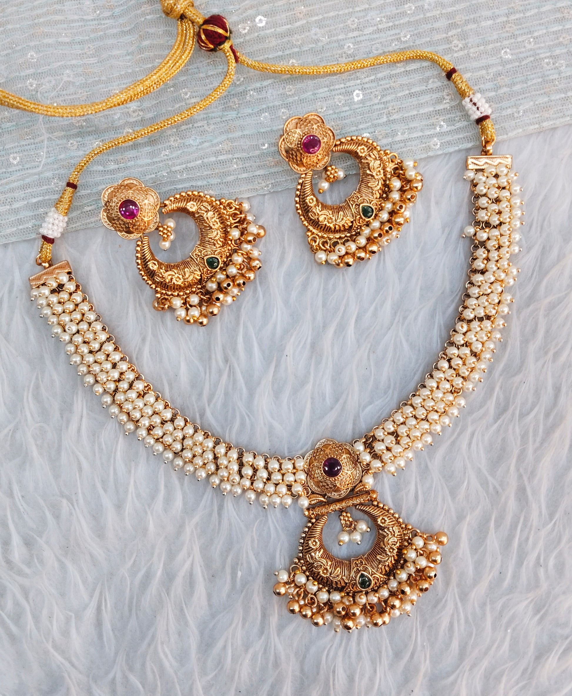 *Gold Polki Necklace set with earrings