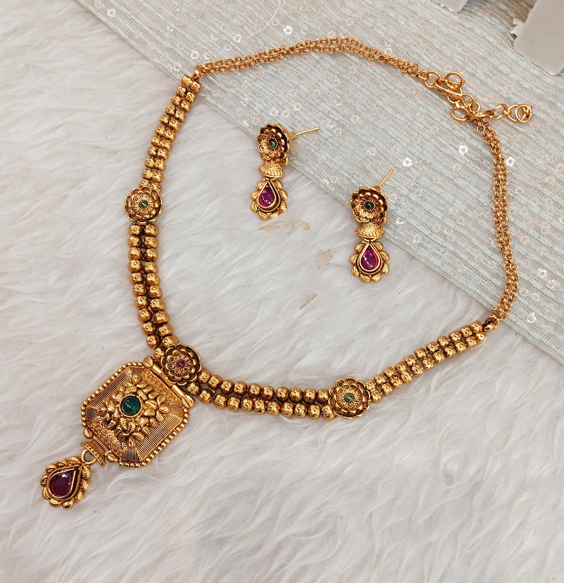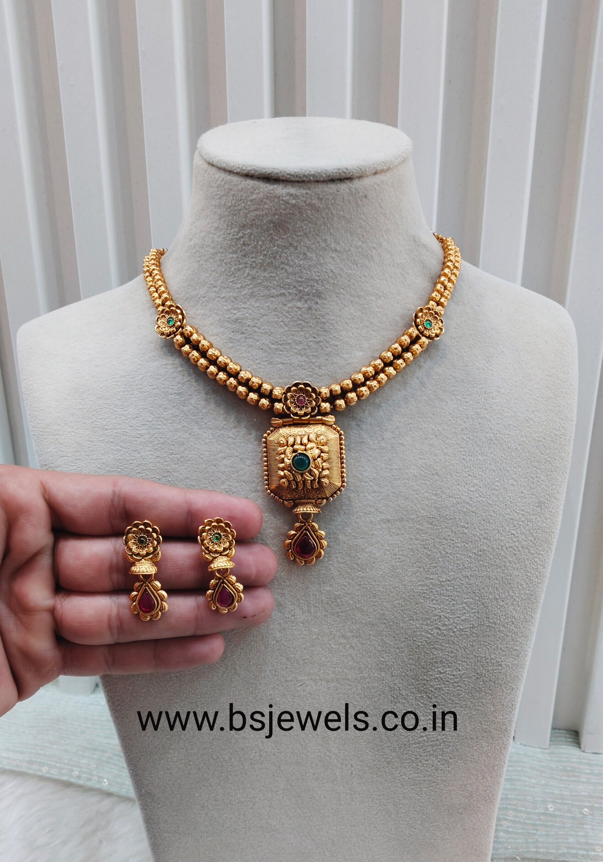 Ruby Green Gold Polki Necklace Jewellery Harf Set