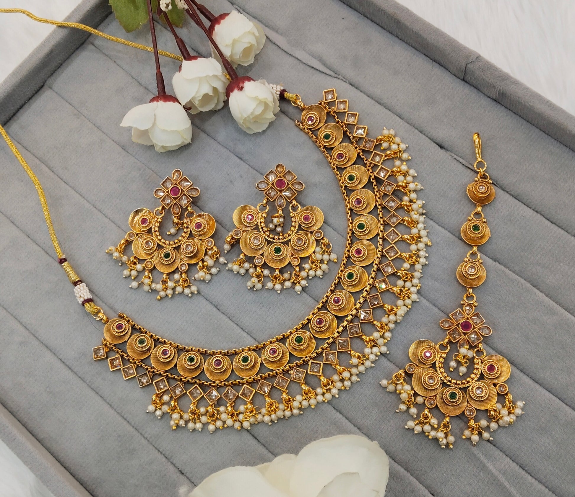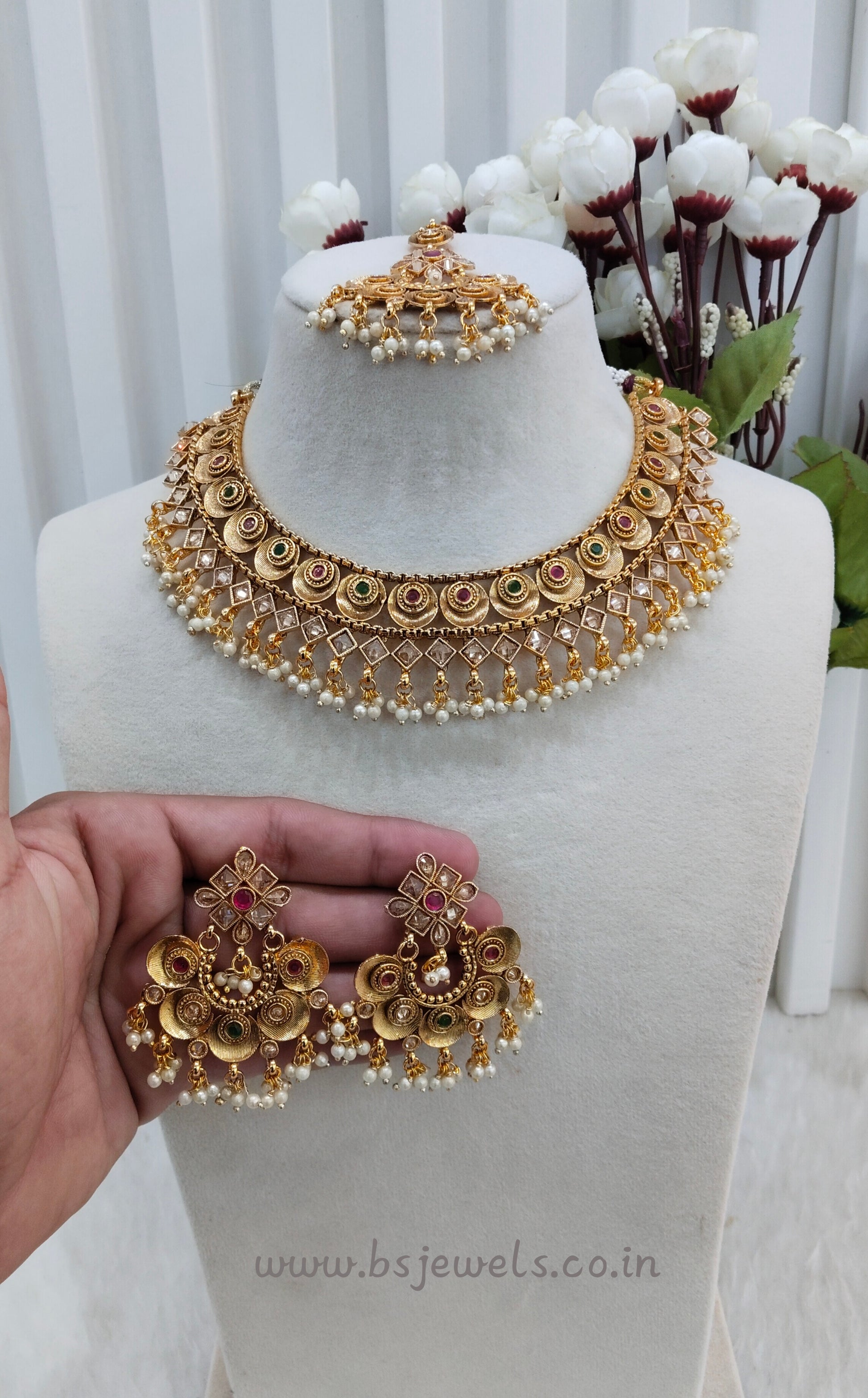 * Gold Finish Polki Necklace Set with earrings as shown in the pic.