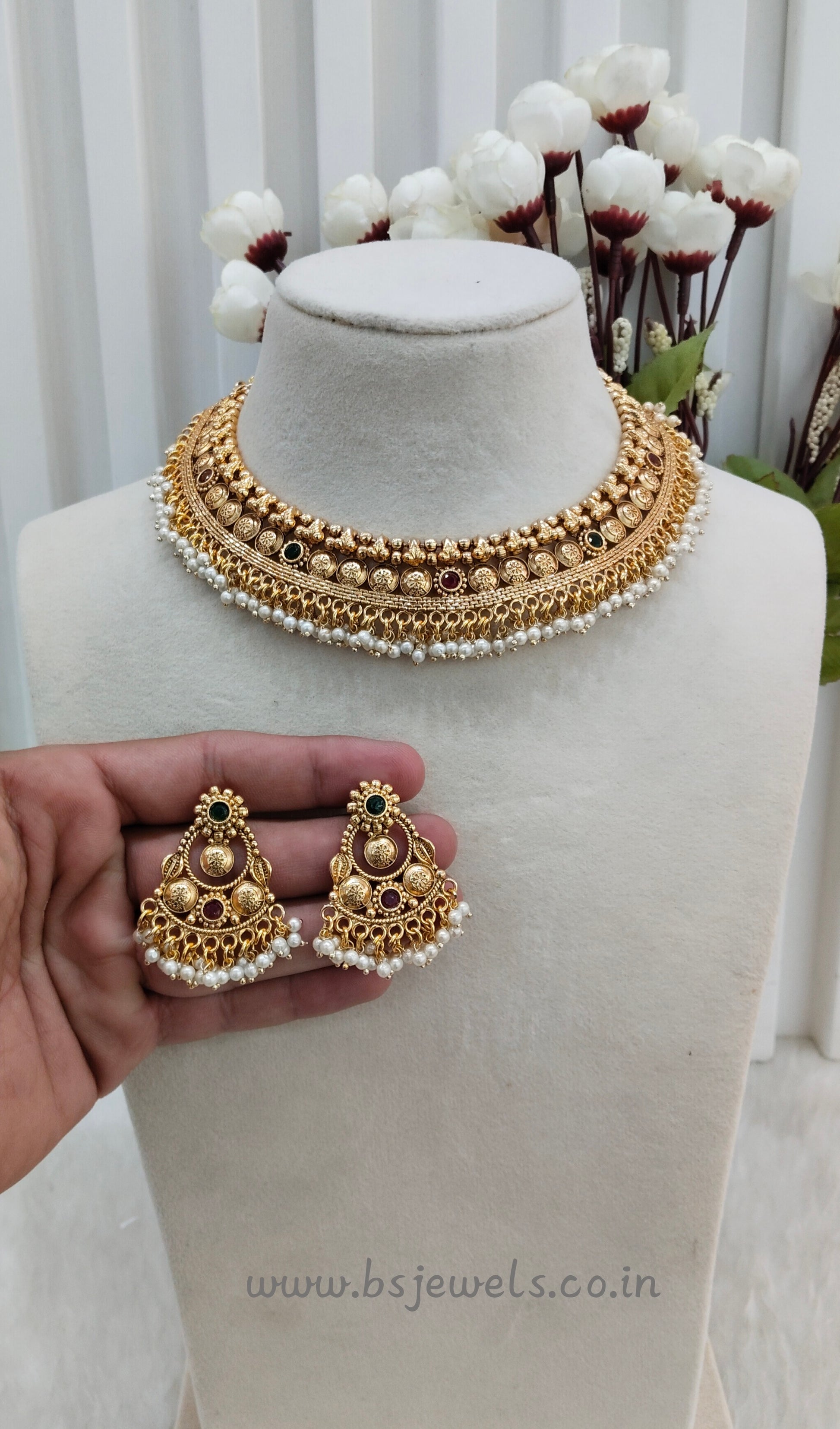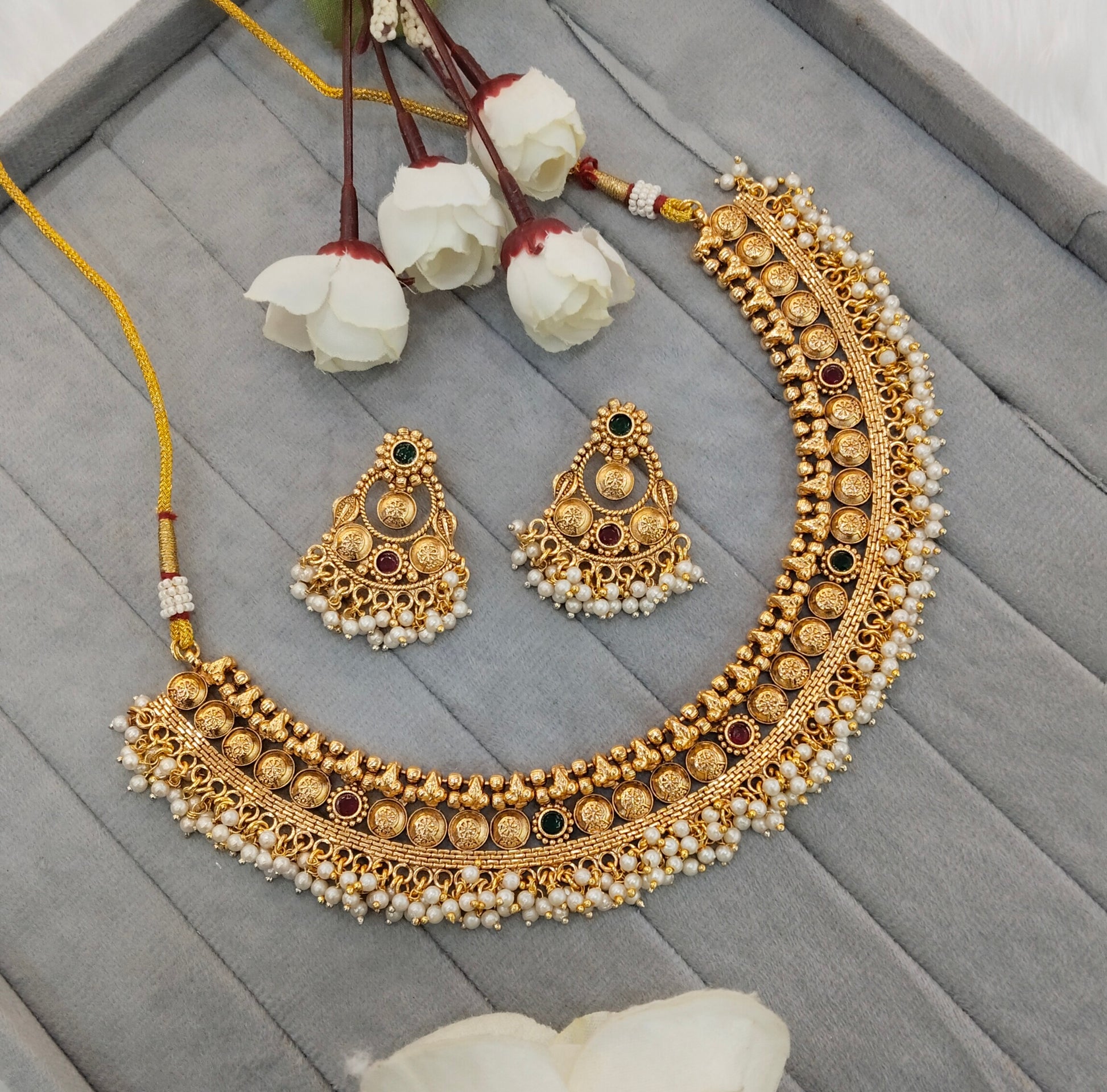 * Gold Finish Polki Necklace Set with earrings as shown in the pic.