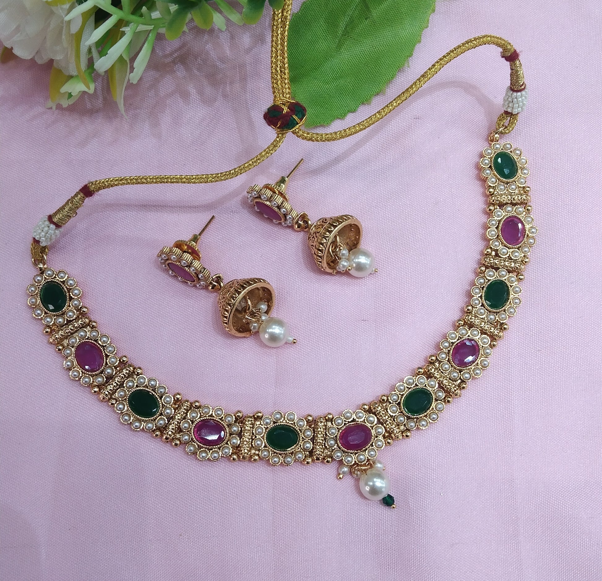 Ruby Green Gold Polki Necklace Jewellery Monika Set
