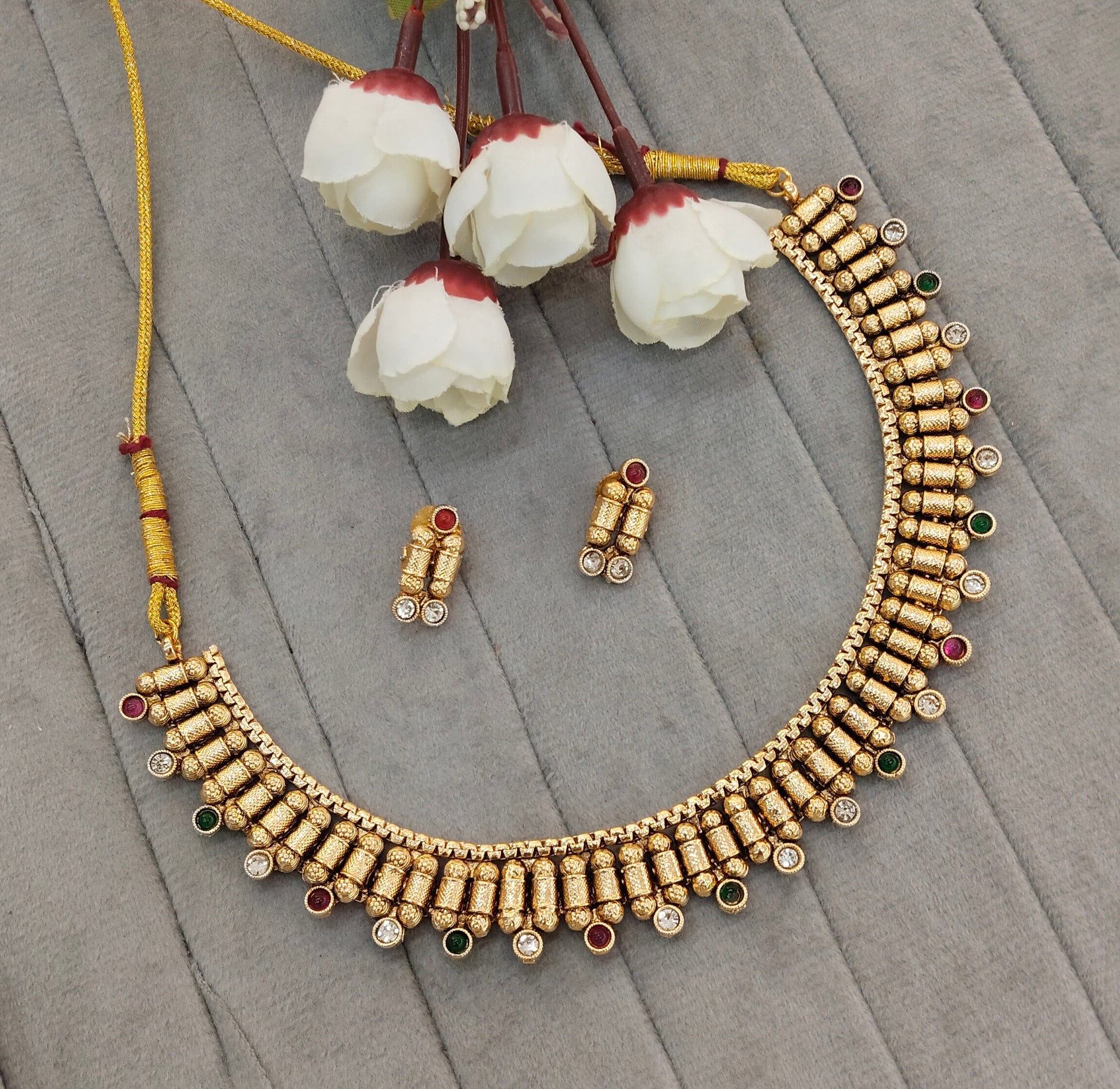 * Gold Finish Polki Necklace Set with earrings as shown in the pic.